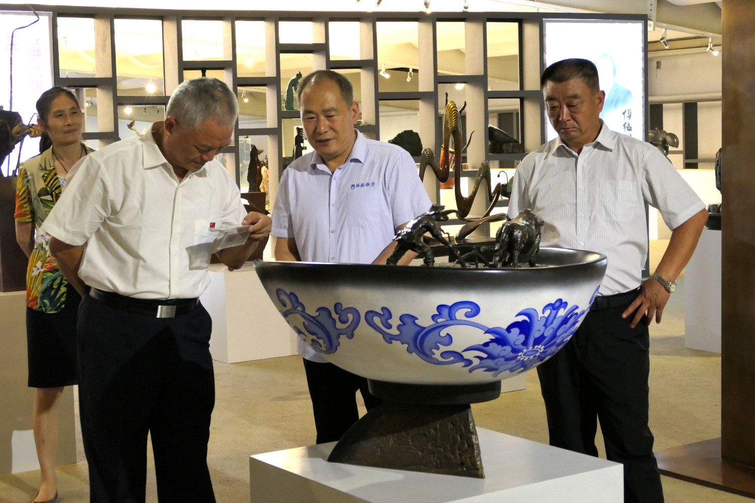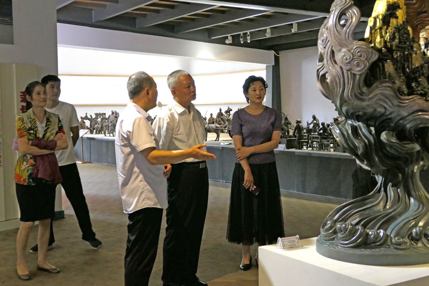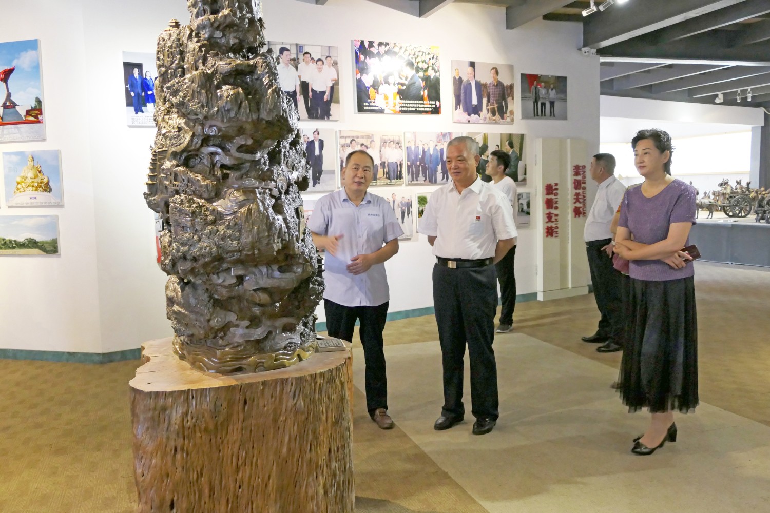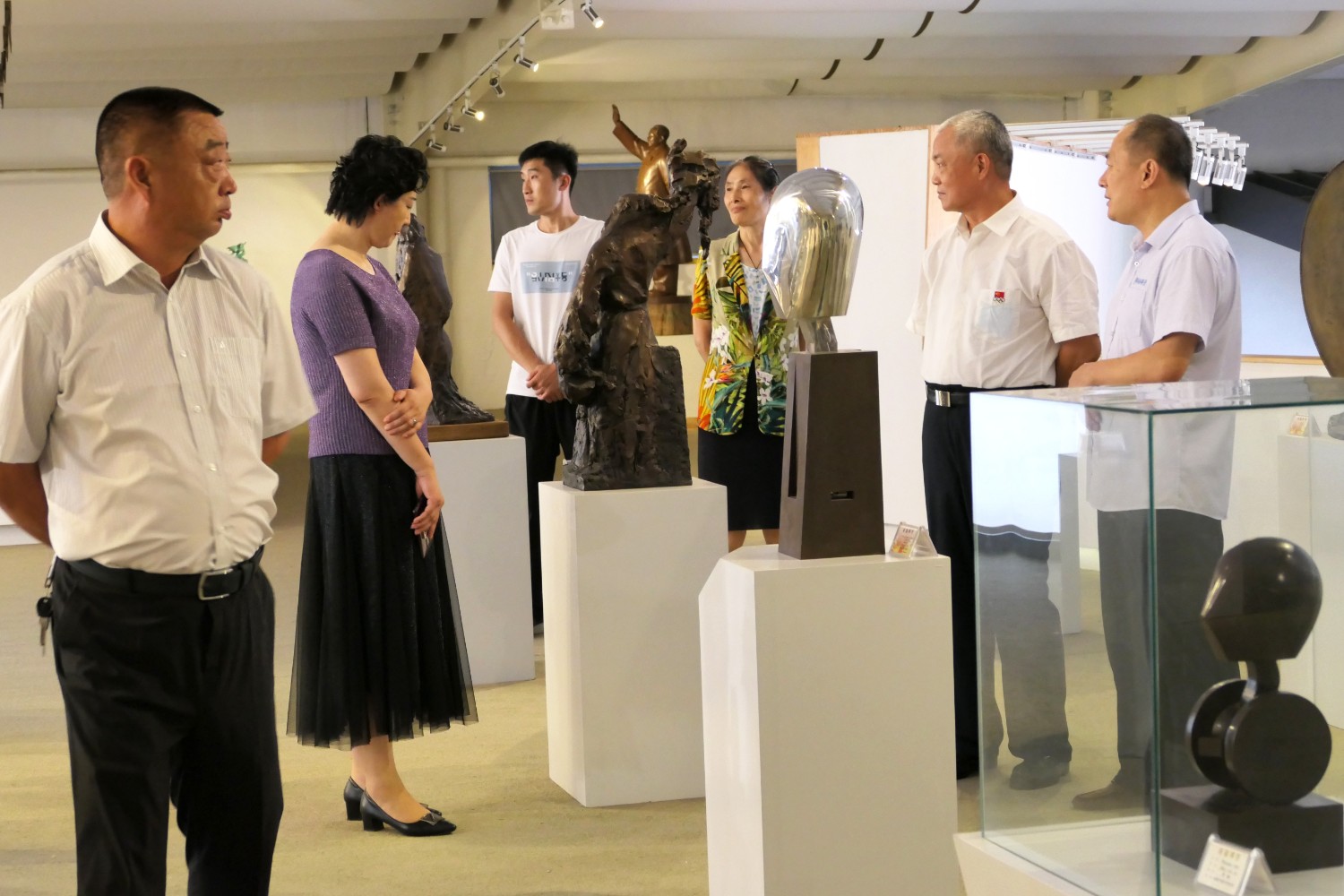2020年8月1日临朐县文联主席李咏梅陪同山东省军分区政委南兵军来华艺参观指导。
