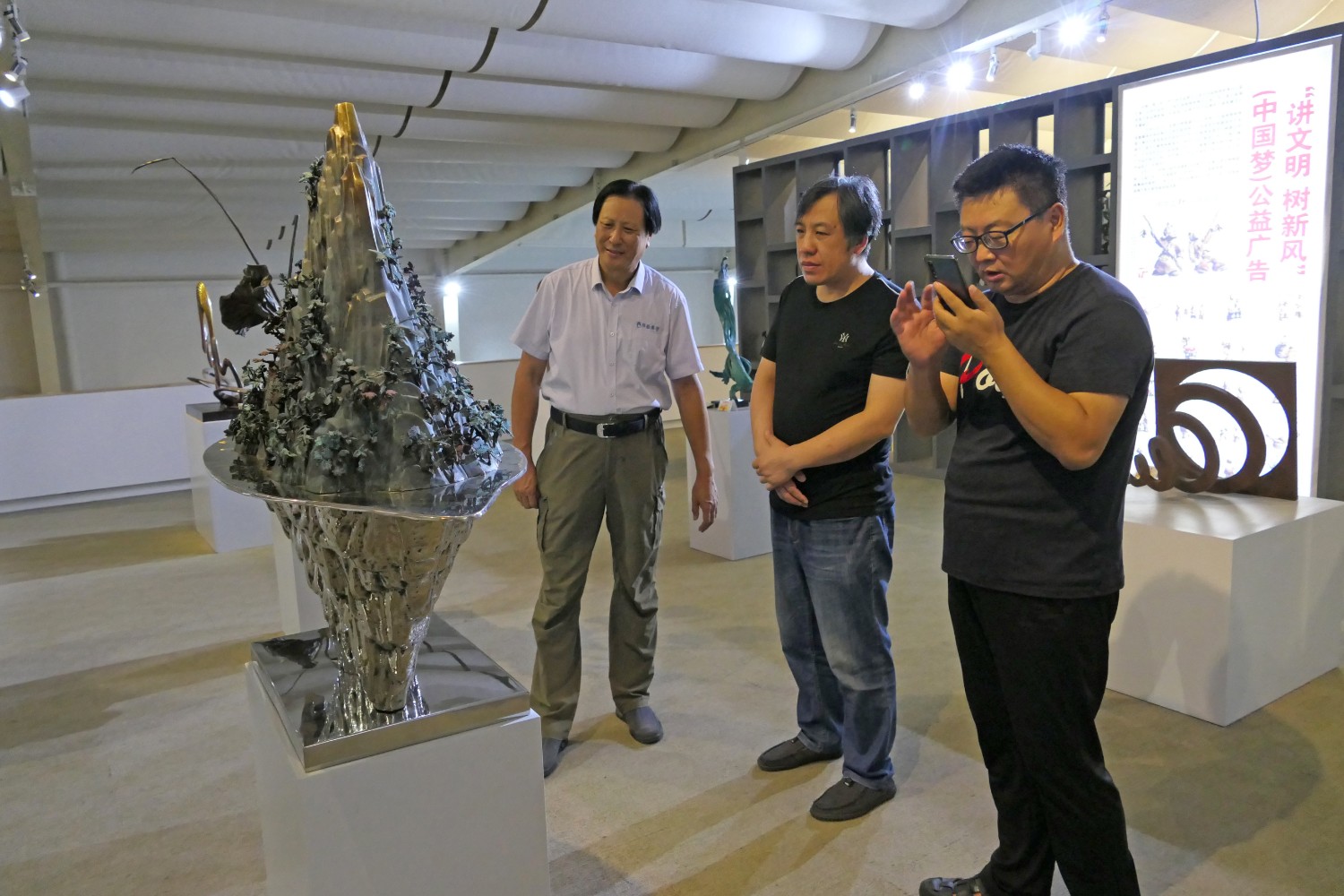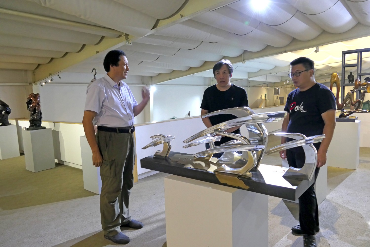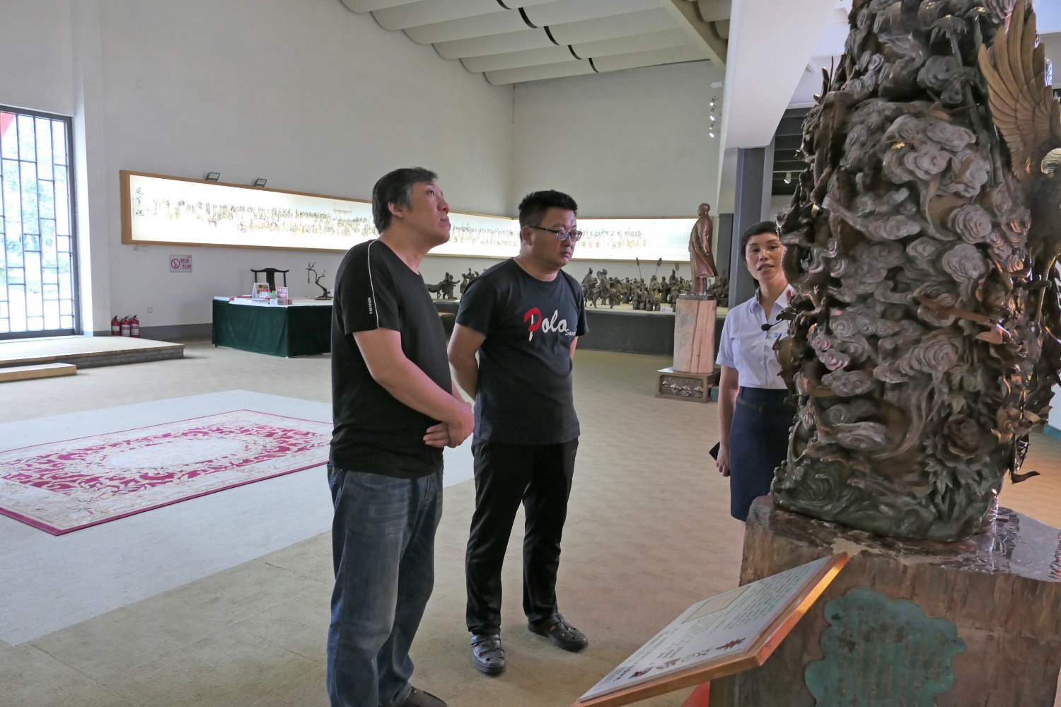 2020年8月31日,书法家胡宗江、陈希军莅临华艺雕塑参观指导。傅绍相介绍雕塑艺术。