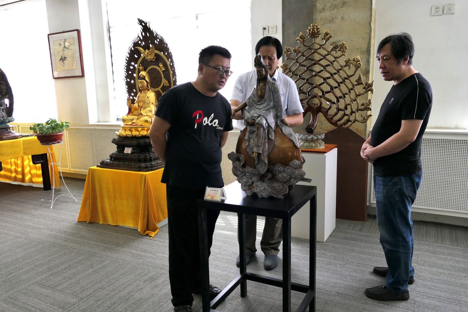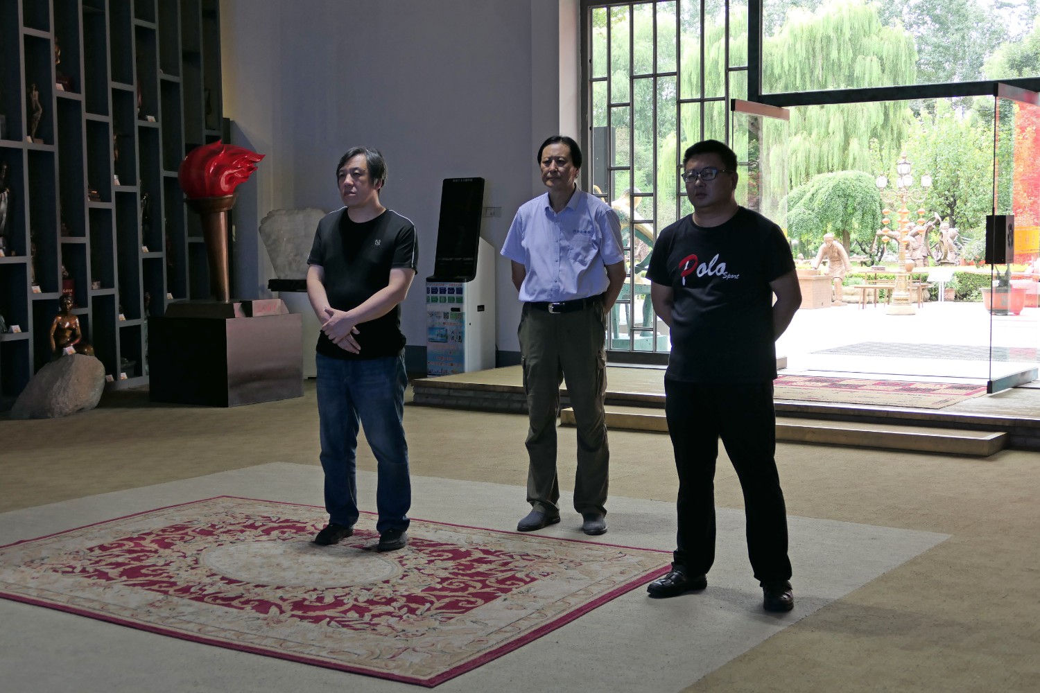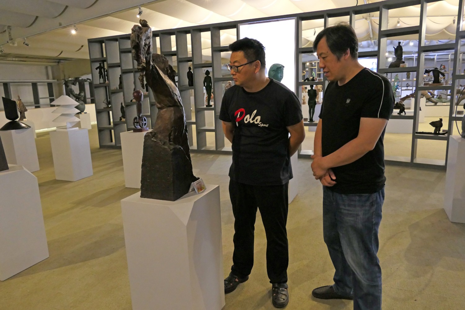 2020年8月31日,书法家胡宗江、陈希军莅临华艺雕塑参观指导。傅绍相介绍雕塑艺术。