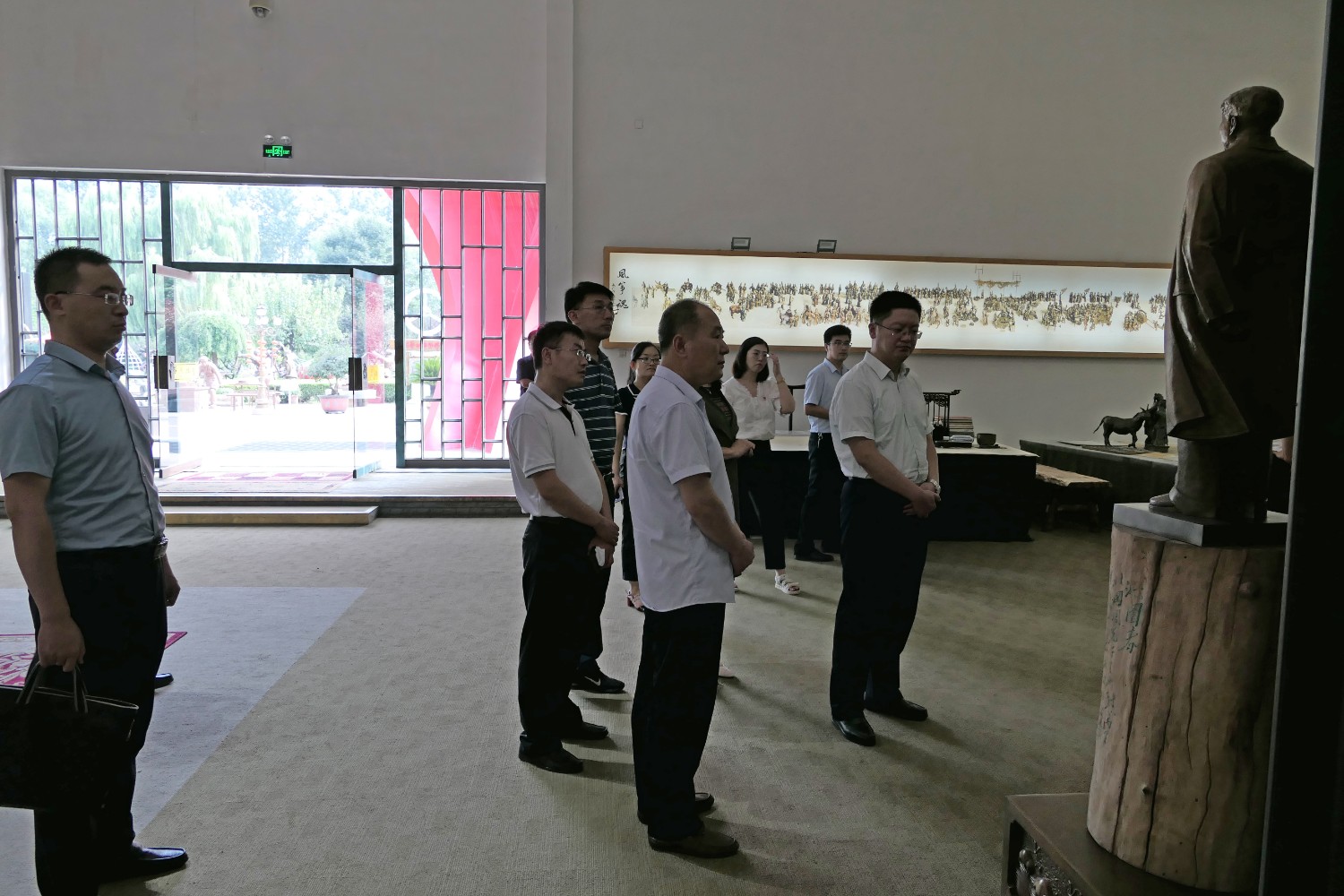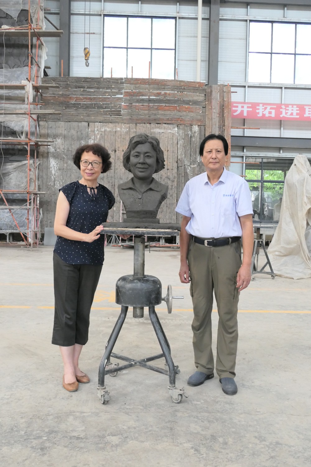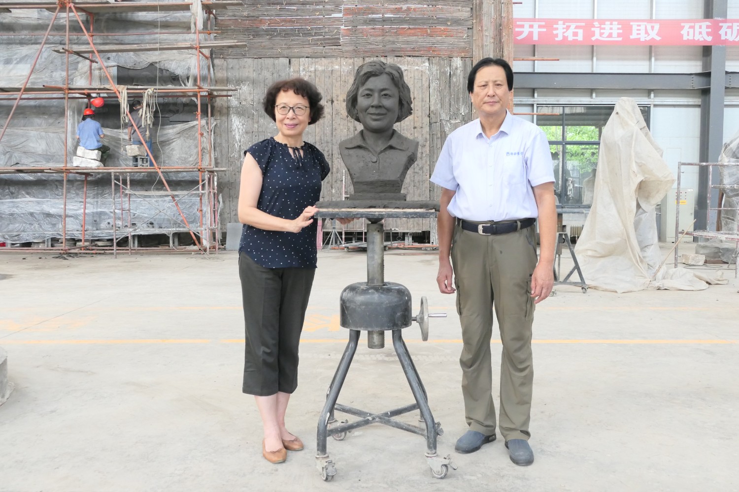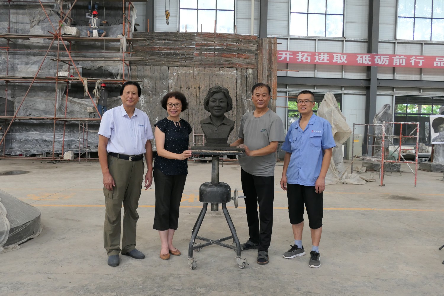 2020年8月31日,上海大学吴悦教授来华艺审稿符莉教授头像雕塑,左耀国、傅绍相、王福杰等一同与吴悦教授合影留念。
