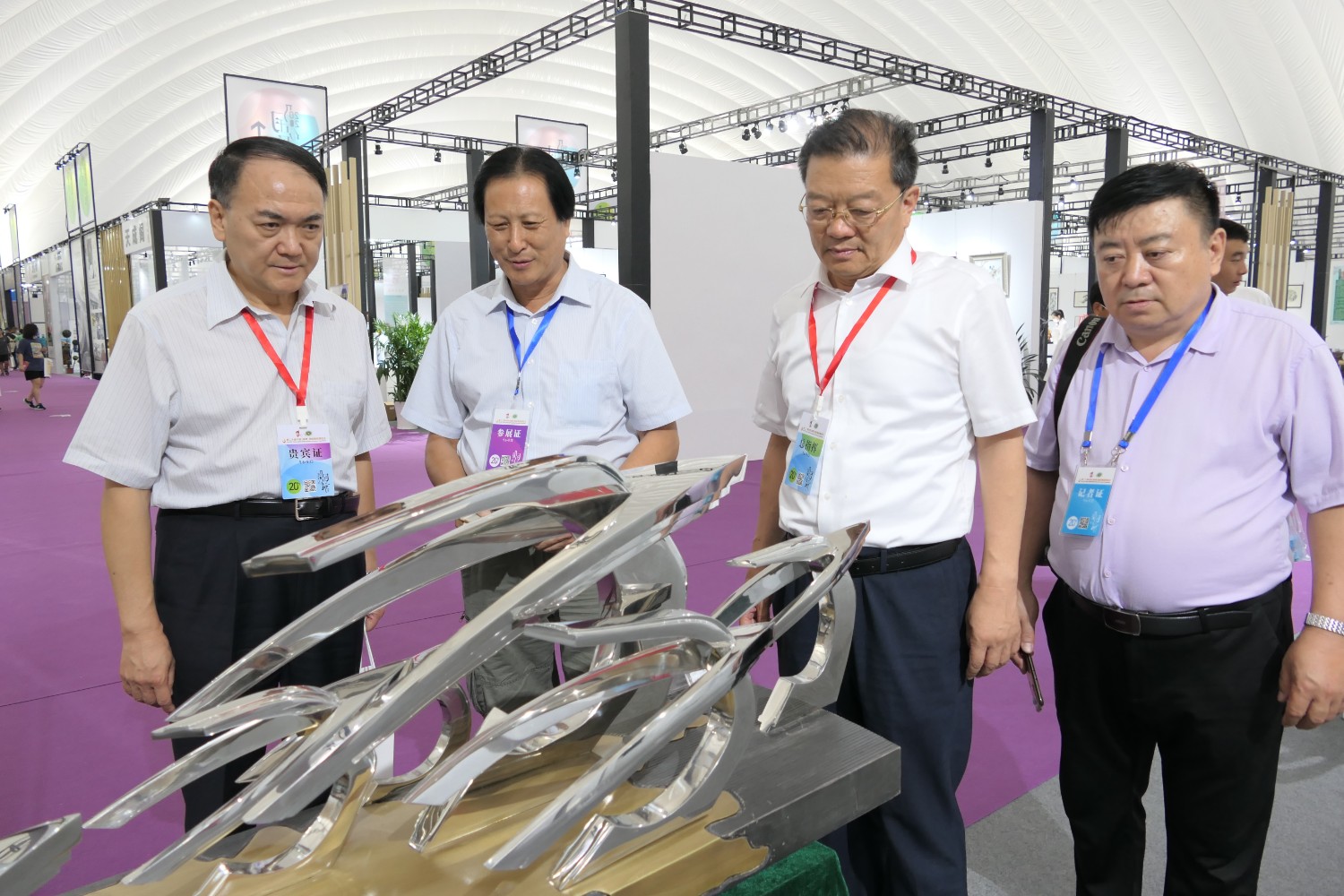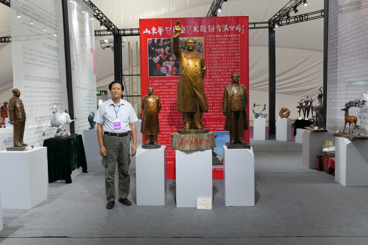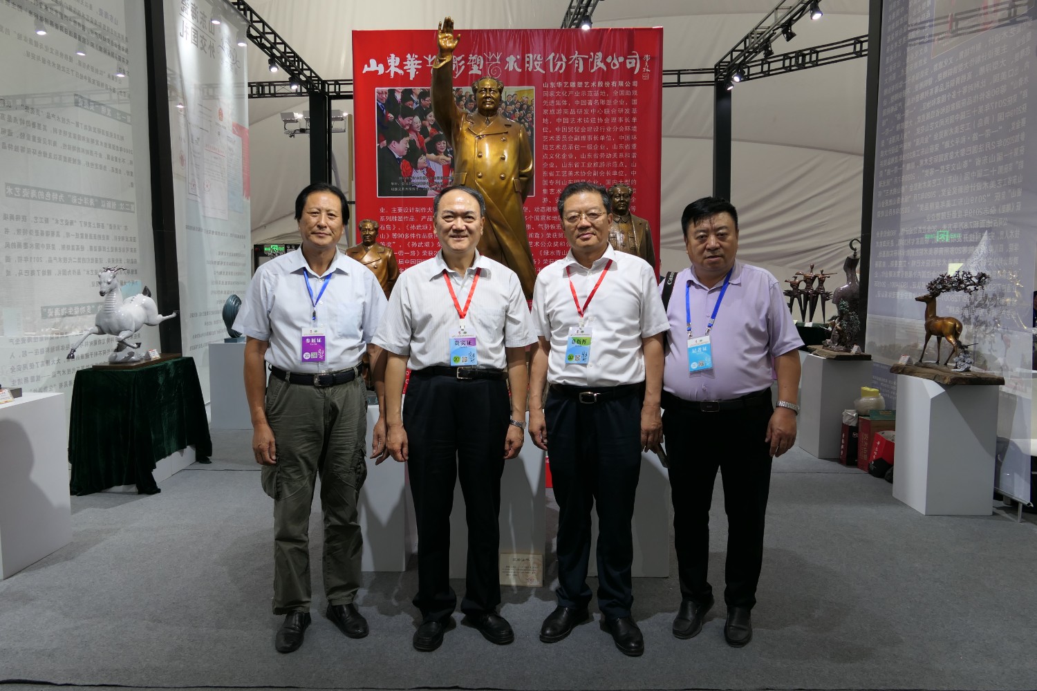 2020年9月6日,第二十届中国(淄博)国际陶瓷博览会、第二届“印象茅台”中国(淄博)陶琉创意设计大赛获奖作品展。在淄博市国际会展中心隆重举行,华艺雕塑精选60余件作品参展,期间中国工艺美术协会原会长周郑生,淄博市陶琉轻纺中心主任赵鹏,山东省轻工联社副主任柴本成、李修德,省工艺美术协会袁敏会长及淄博市道教协会尹清钧会长莅临华艺展区参观。傅绍相作品《琉光璃韵》荣获第二届中国(淄博)陶琉创意大赛银奖。