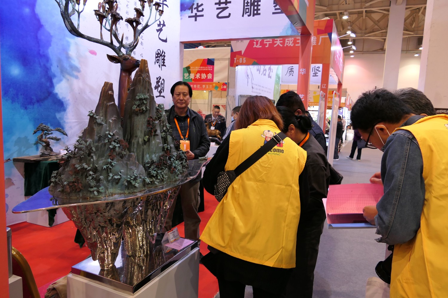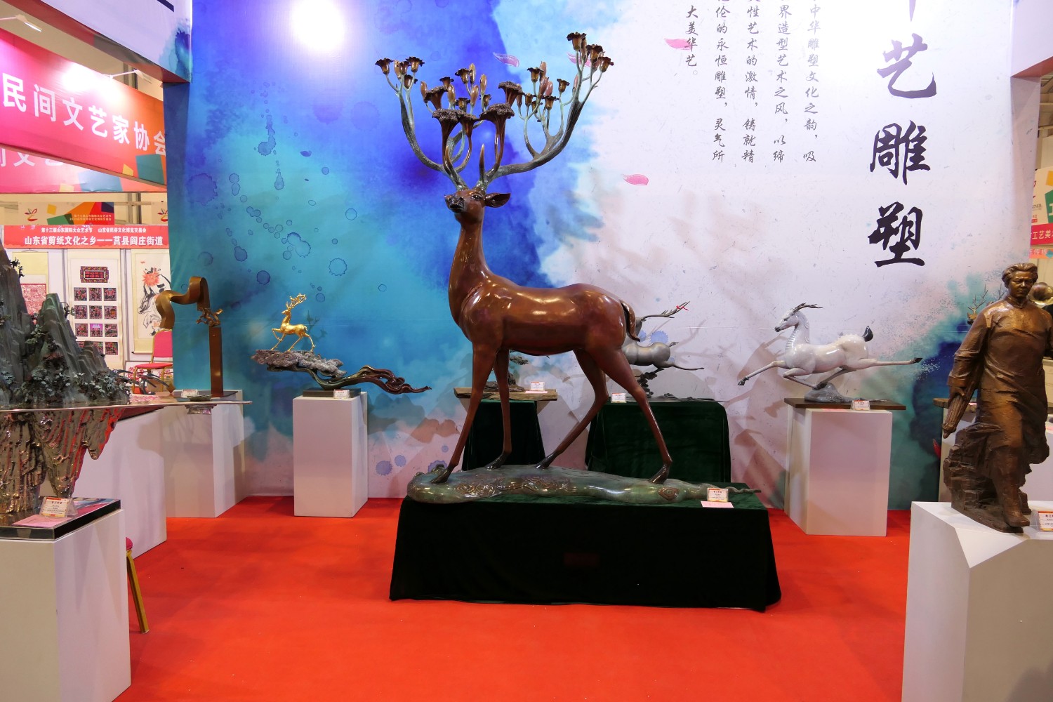 2020年10月5日,第十三届山东国际大众艺术节“2020山东省民俗文化博览交易会”在潍坊鲁台会展中心隆重举行,傅绍相应邀出席开幕仪式。华艺雕塑精选50余件雕塑作品参展,其中作品《绿水青山》荣获金奖,精湛的技艺,精美的雕塑,赢得了嘉宾观众的高度赞扬。