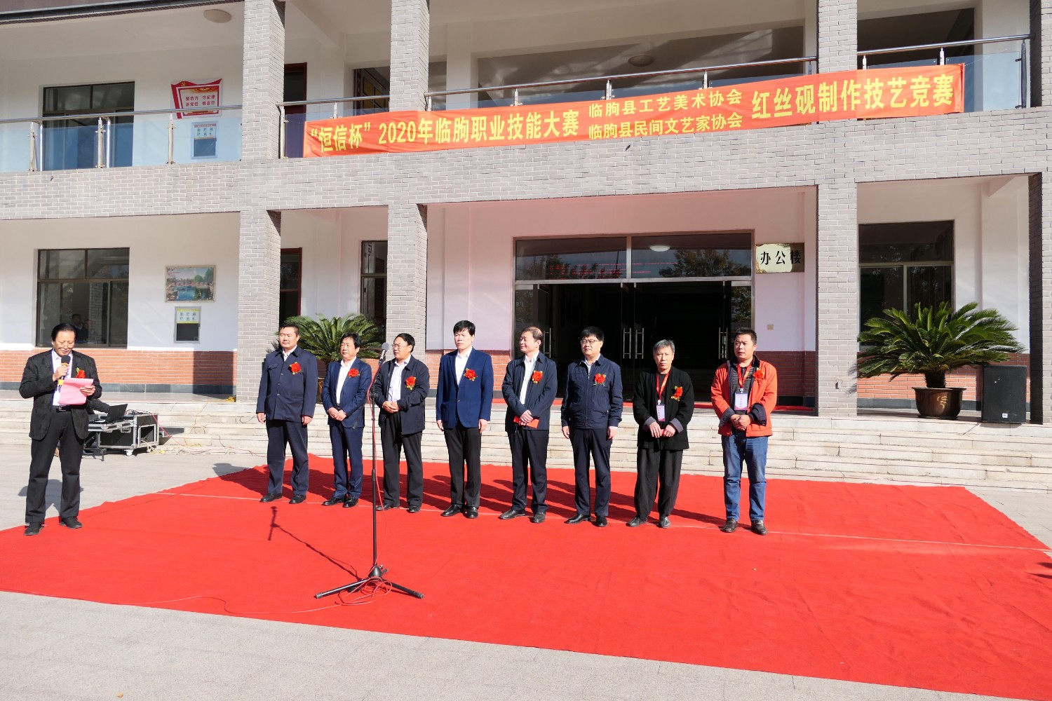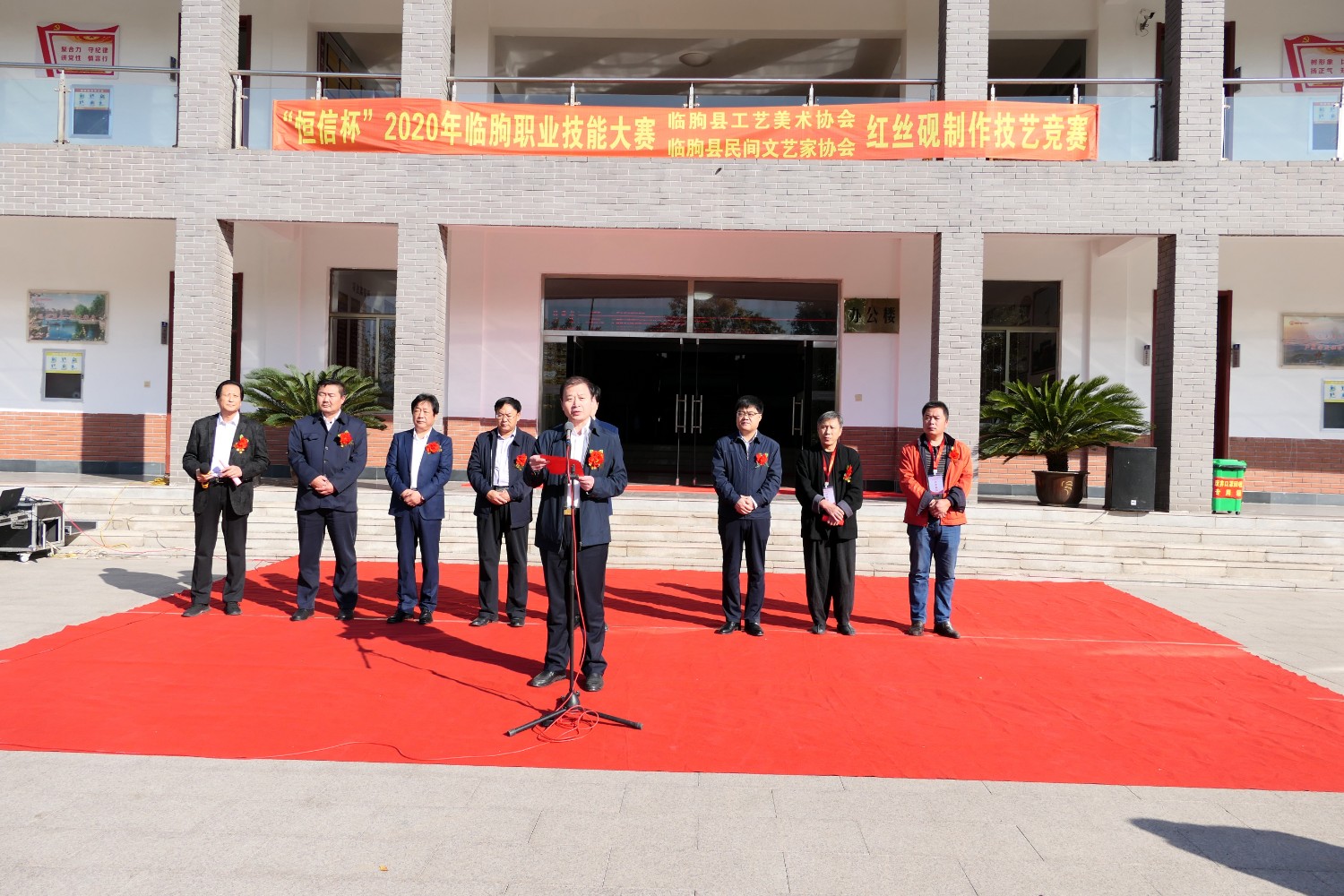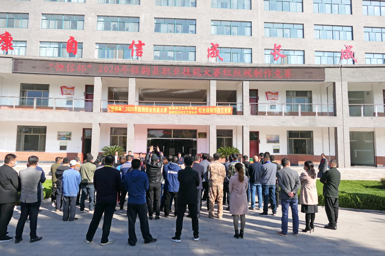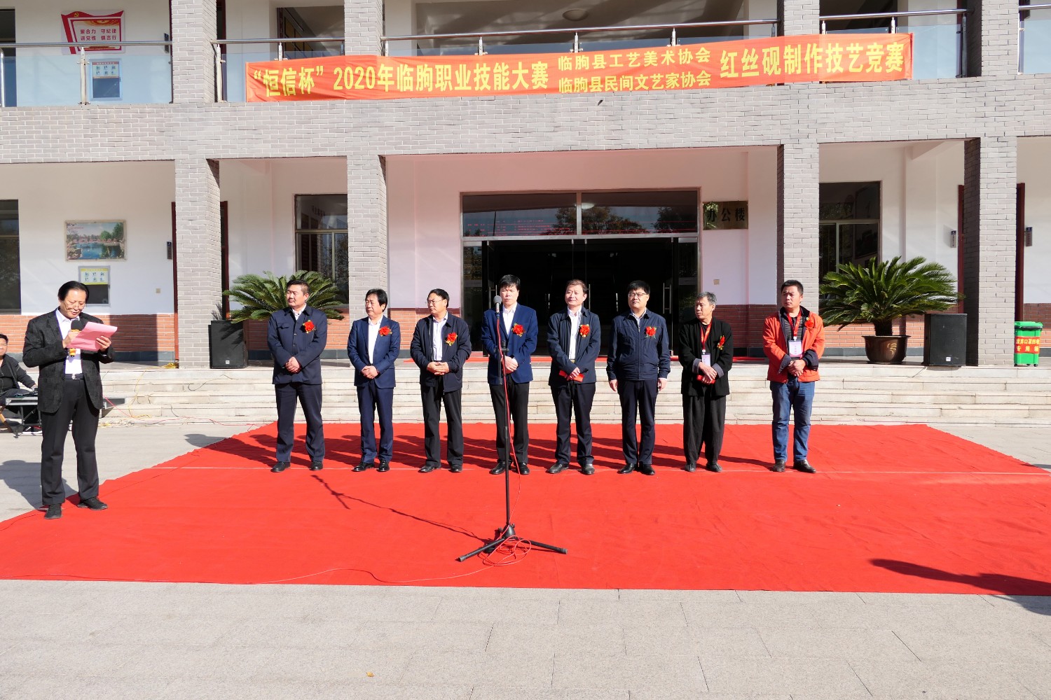 2020年10月17 日,“恒信杯”2020年临朐职业技能大赛,临朐县工艺美术协会,临朐县民间文艺家协会,红丝砚制作技艺竞赛在临朐职业学校隆重举办。傅绍相出席活动并主持开幕仪式,县直有关单位领导分别进行了讲话,参赛选手制作参赛作品。