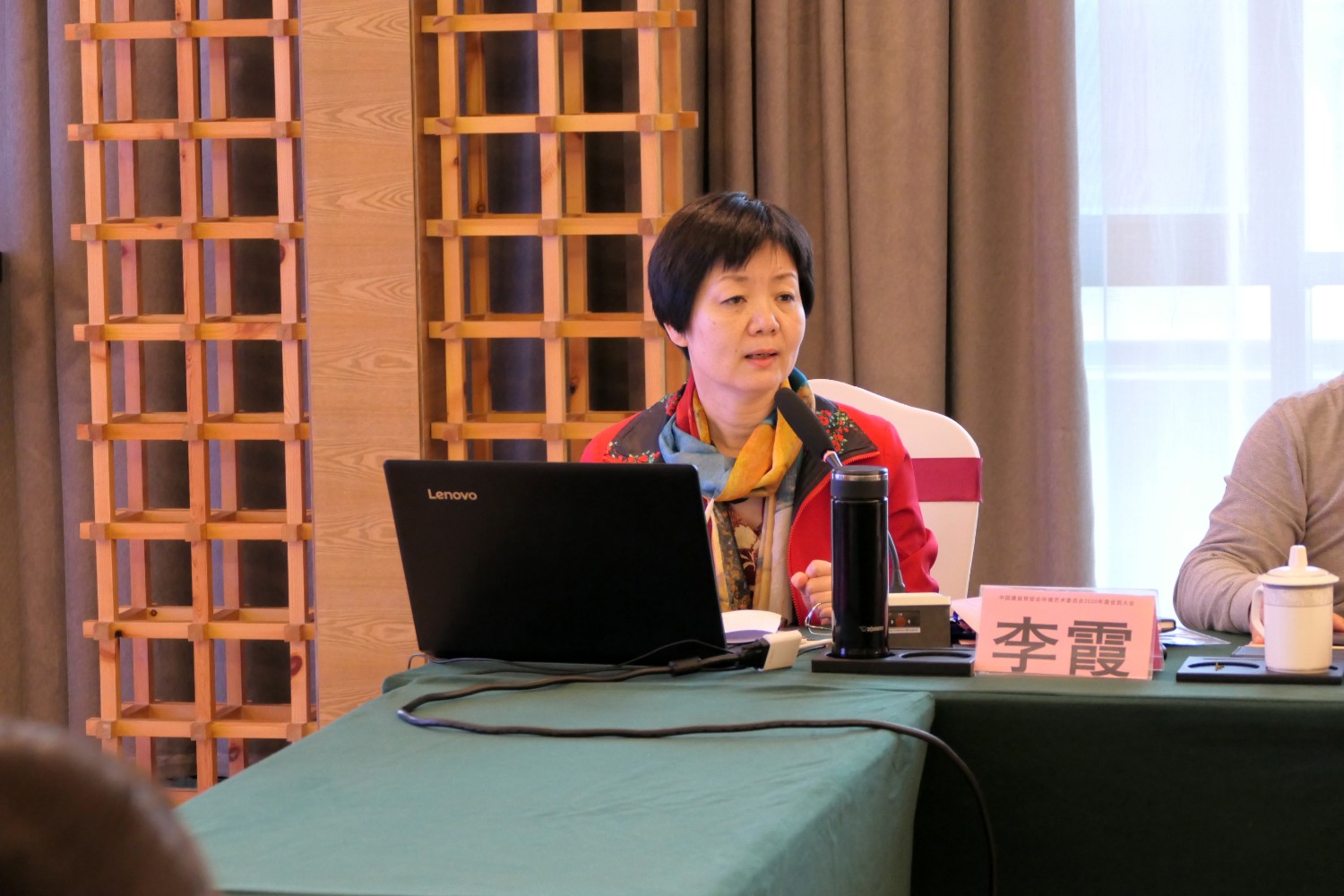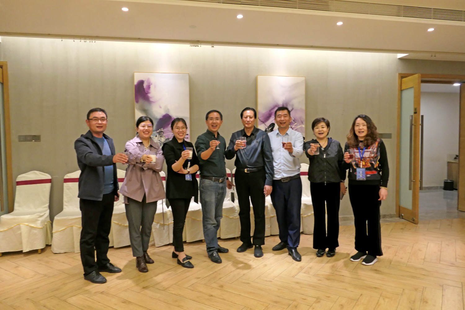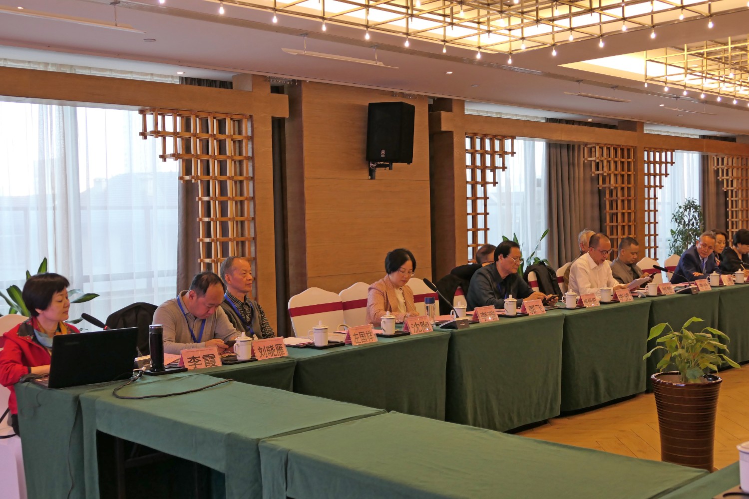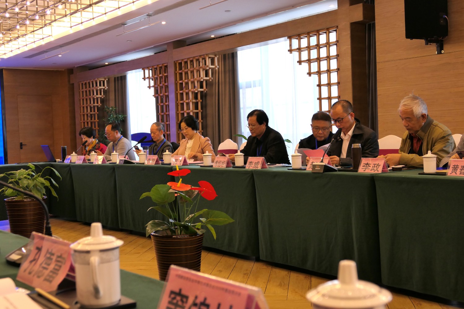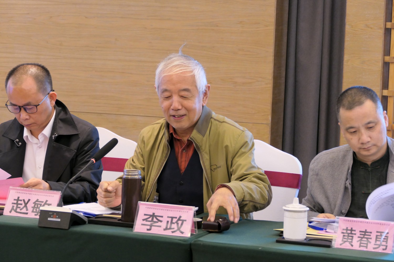 2020年10月22日,中国建设贸促会环境艺术委员会2020年度会员大会在铜陵天玑酒店隆重召开,李霞主任主持会议,各会员代表踊跃发言,会议气氛热烈,晚宴傅绍相展示了书法作品《聚艺铜陵》,谭海先生即兴演唱歌曲,黄春勇先生演奏了管乐“尺八”,会议在团结祥和的氛围中圆满结束。
