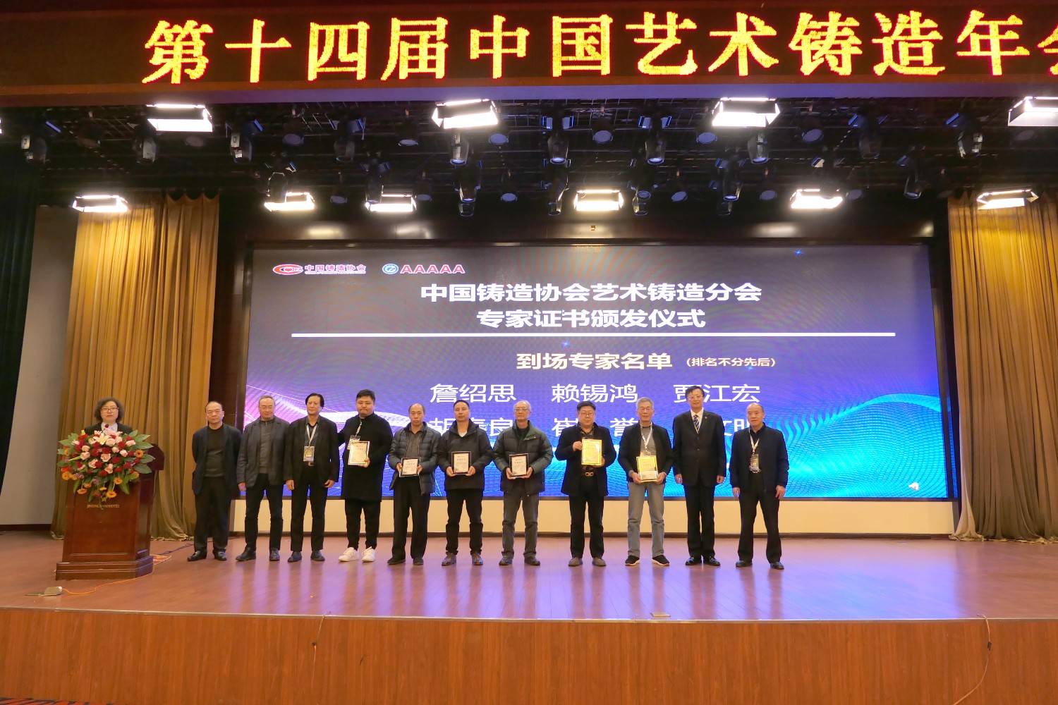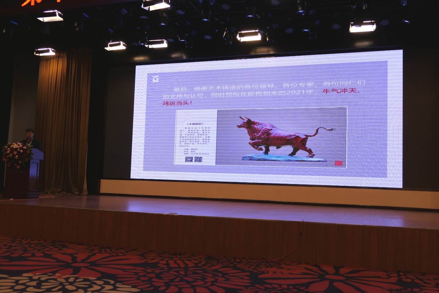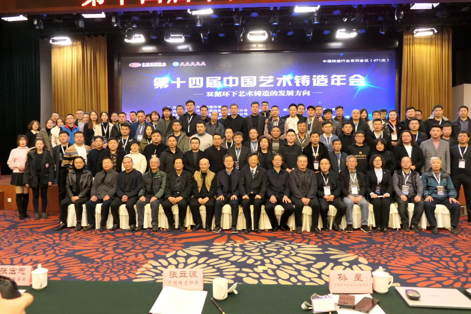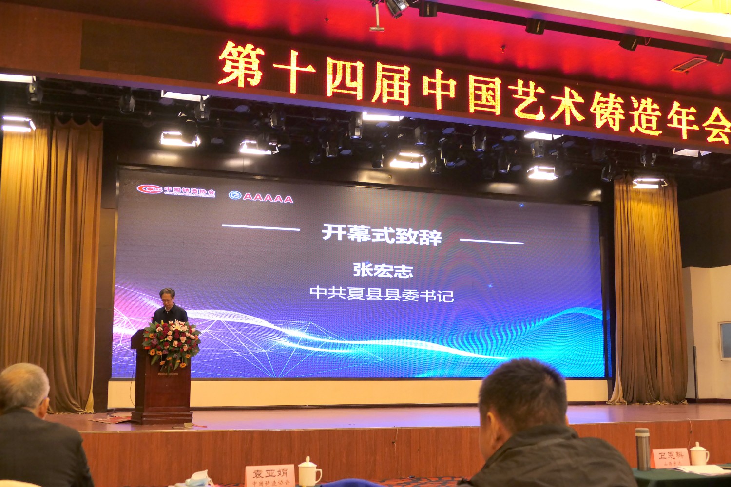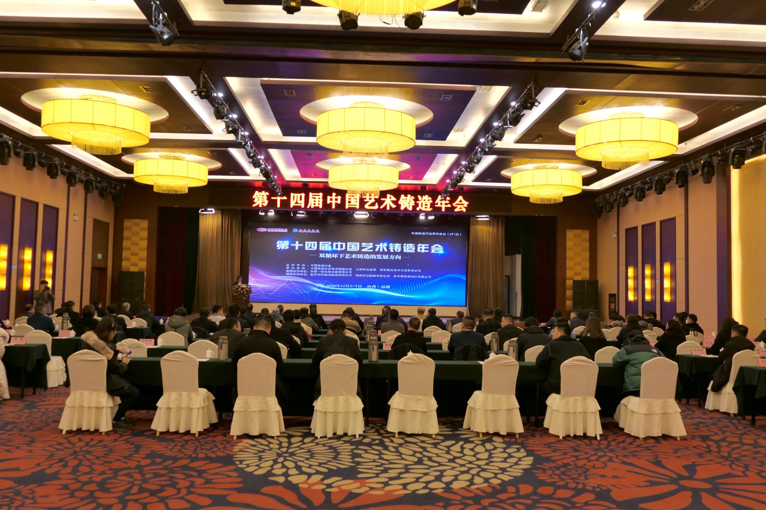 2021-2-62020年12月6日,第十四届中国艺术铸造年会在山西省运城金鑫大酒店隆重召开,中国铸造协会会长张立波,国家工业和信息部工业文化发展中心孙星副主任,中共夏县县委书记张宏志,中国铸造协会专务、艺铸分会秘书长袁亚娟,中国铸造协会副会长、艺铸分会轮值理事长、江西桐青金属工艺品有限公司董事长陈镇波,中国铸造协会理事、艺铸分会当值理事长、南京晨光艺术工程有限公司董事长徐士高,中国铸造协会理事、艺铸分会轮值理事长、山西宇达青铜文化艺术股份有限公司董事长卫恩科,中国铸造协会理事、艺铸分会轮值理事长、山东华艺雕塑艺术股份有限公司董事长傅绍相,以及各会员代表、材料供应商100余人参加了会议。华艺雕塑作为轮值理事长单位,傅绍相、傅东、谭海、傅思涵、窦锦坤参加本次会议,期间,华艺雕塑总经理傅东在大会中作了《在危机中育先机,于变局中开新局》典型发言,而后参观宇达集团雕塑园。