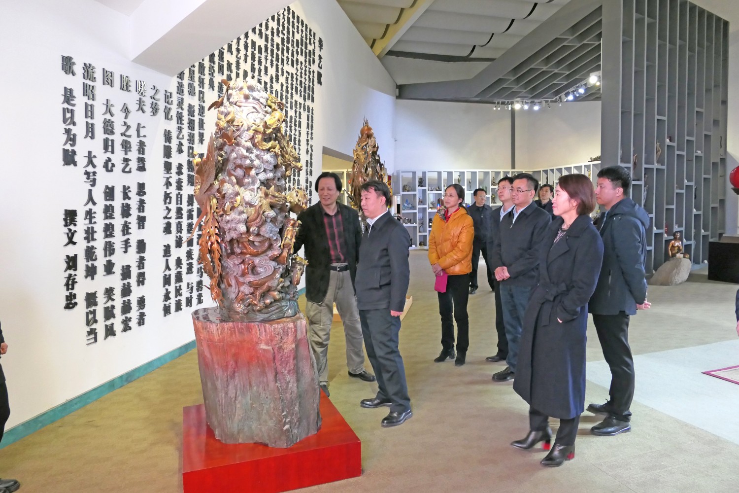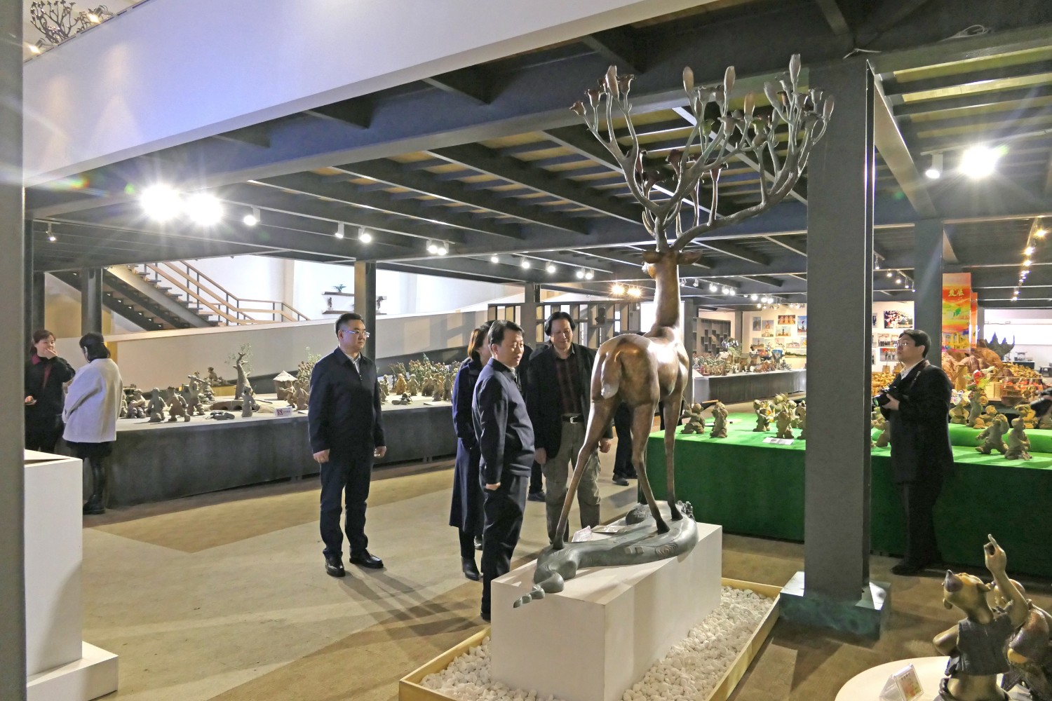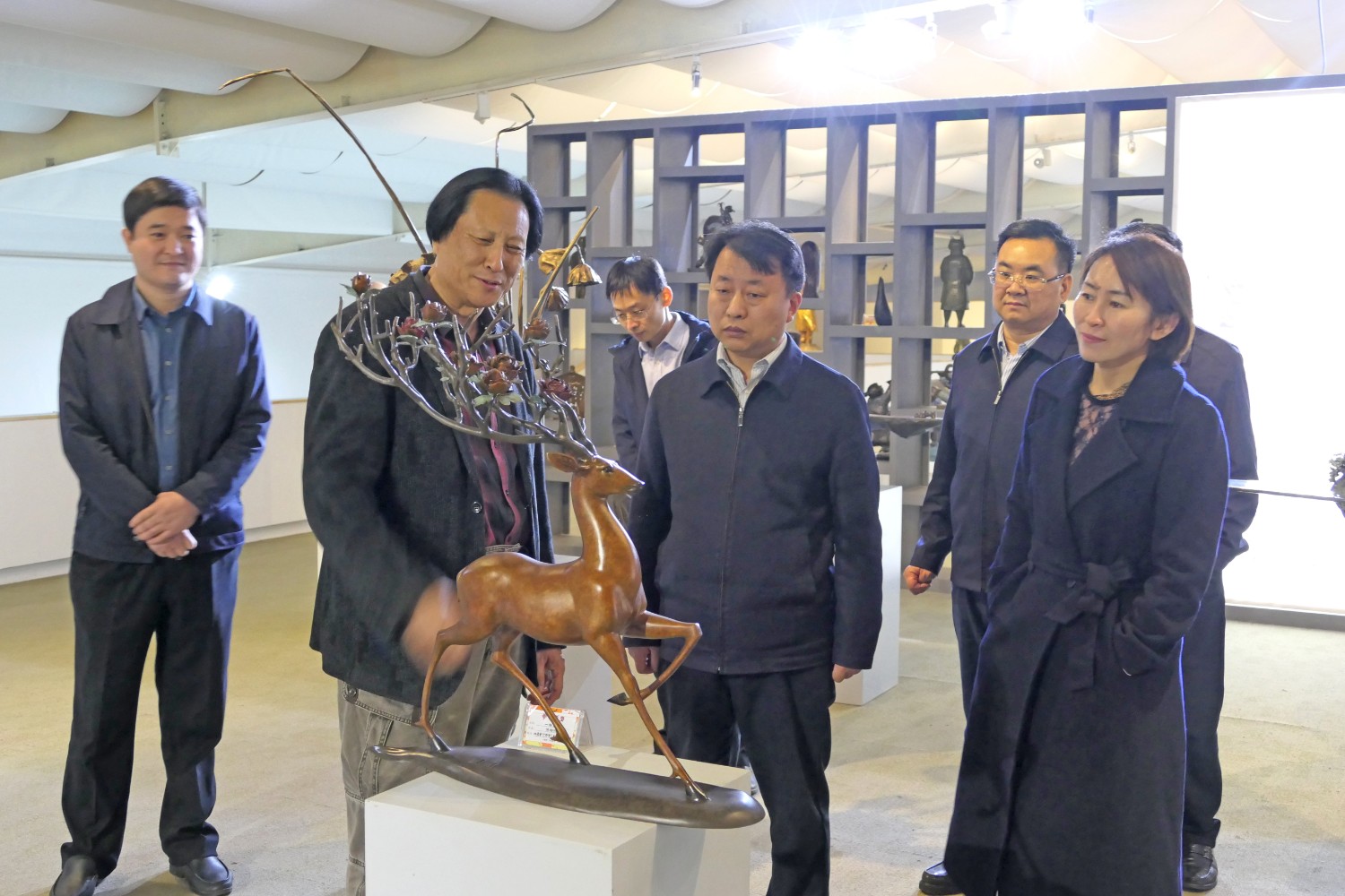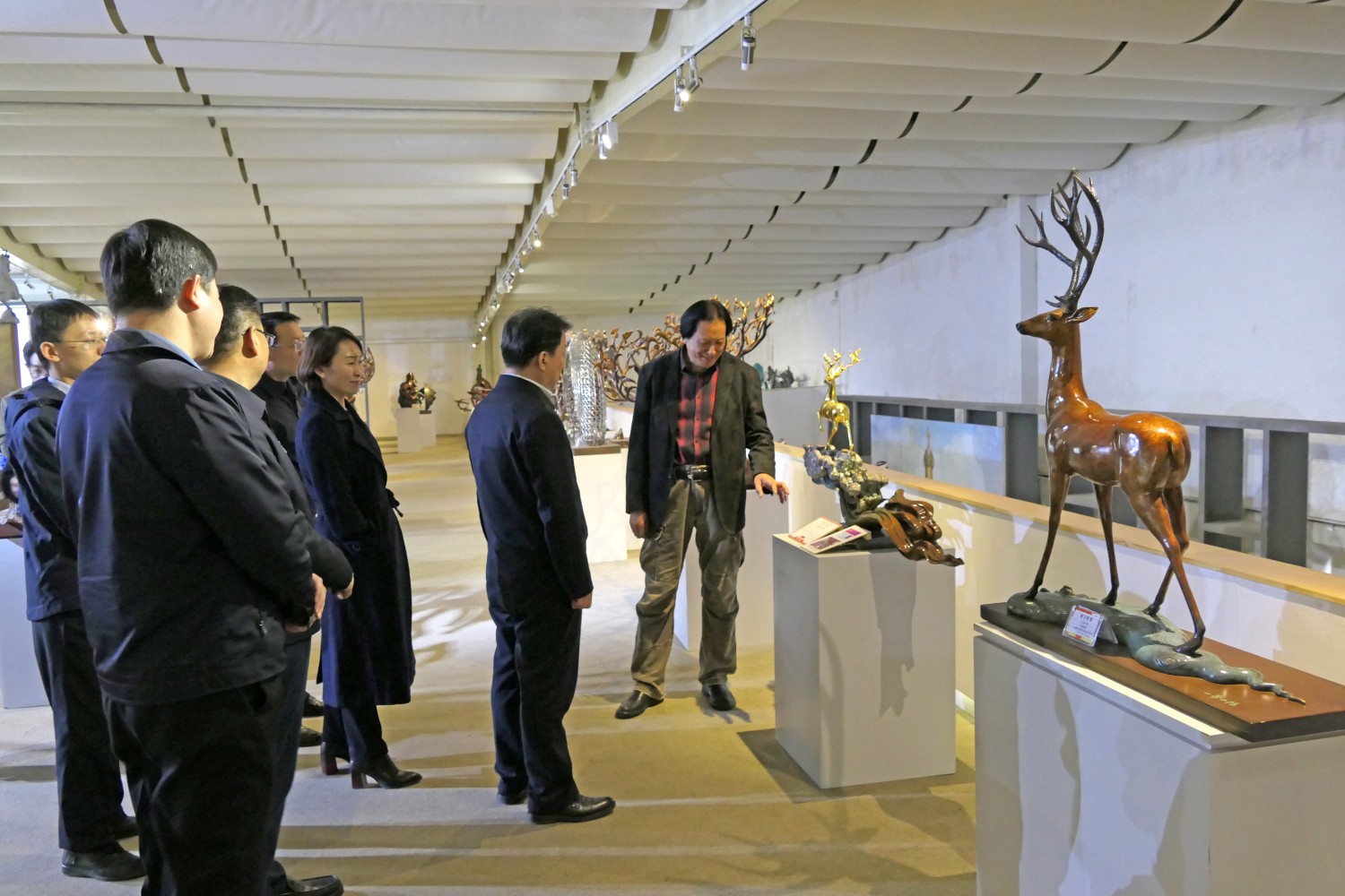 2021年3月11日,临朐县人民政府刘艳芳县长、城关街道办事处主任赵兴勇陪同山东省商务厅副厅长张义英等领导一行莅临华艺雕塑视察指导。傅绍相向客人介绍雕塑艺术及新创作的文创产品《山青水韵》、《一路富贵》等。精湛的雕塑作品得到了嘉宾的高度赞誉。