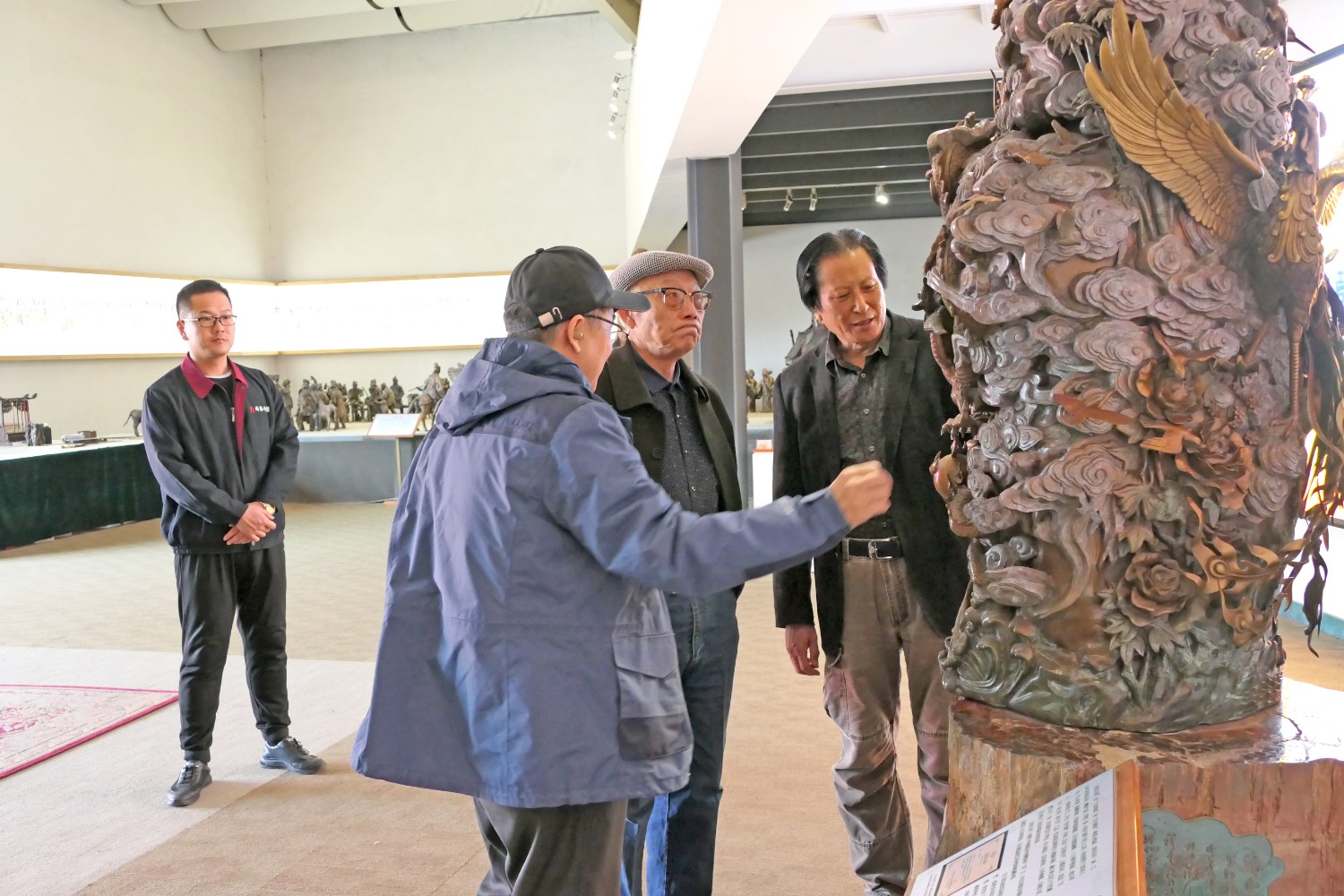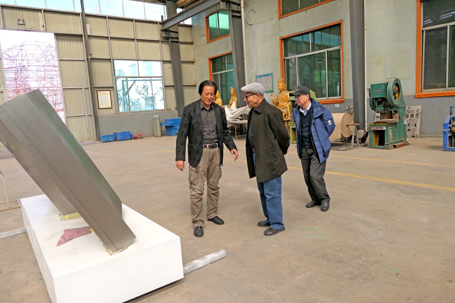 2021年4月4日,中国铸造协会常务副会长温平先生陪同天津铸造协会主席、天津玑衡科技有限公司罗宝琪先生来华艺视察指导并洽谈合作业务,董事长傅绍相陪同参观并介绍华艺雕塑发展情况。