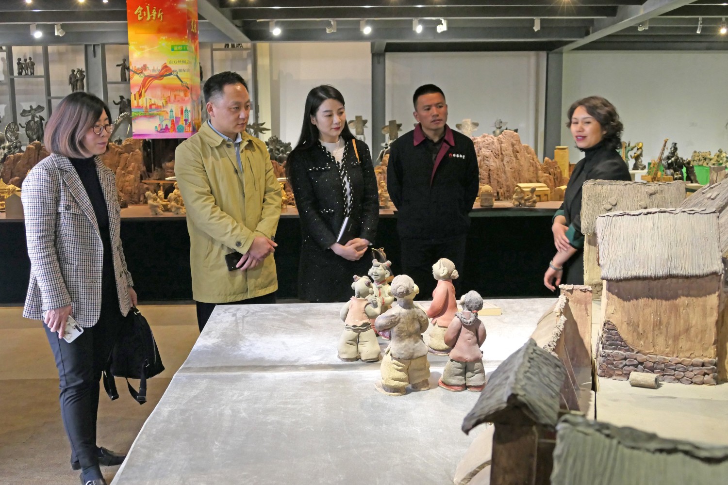 各位嘉宾观看华艺雕塑宣传片