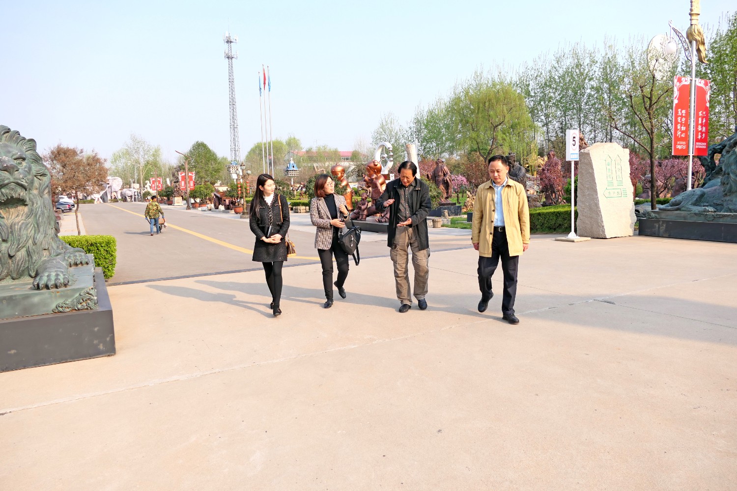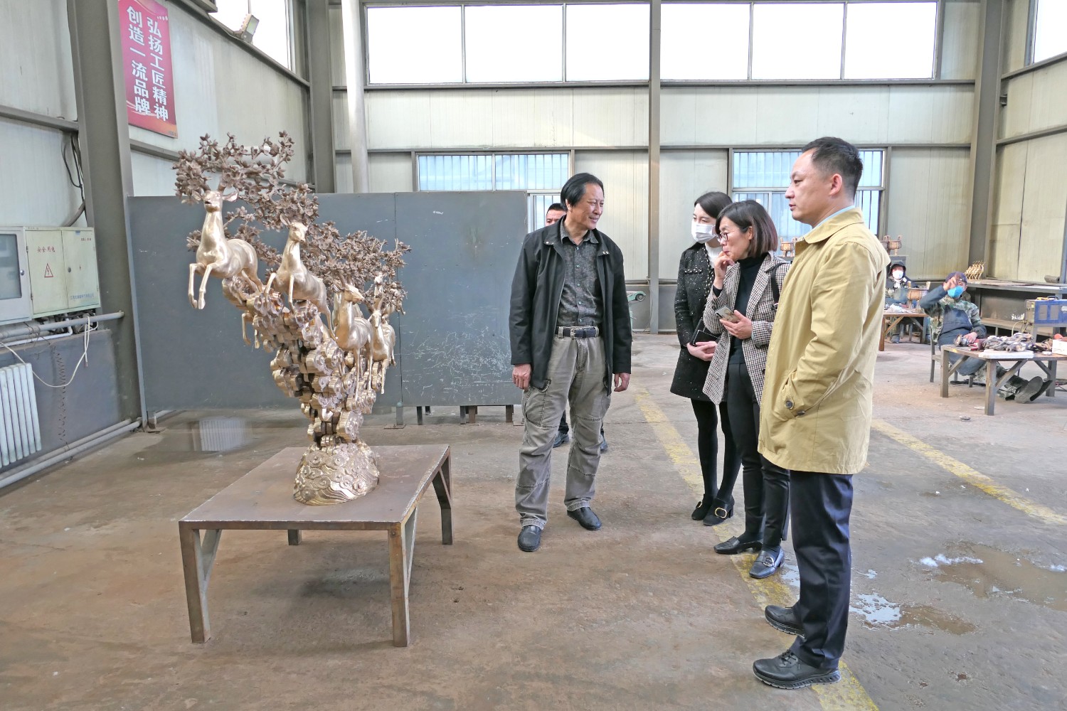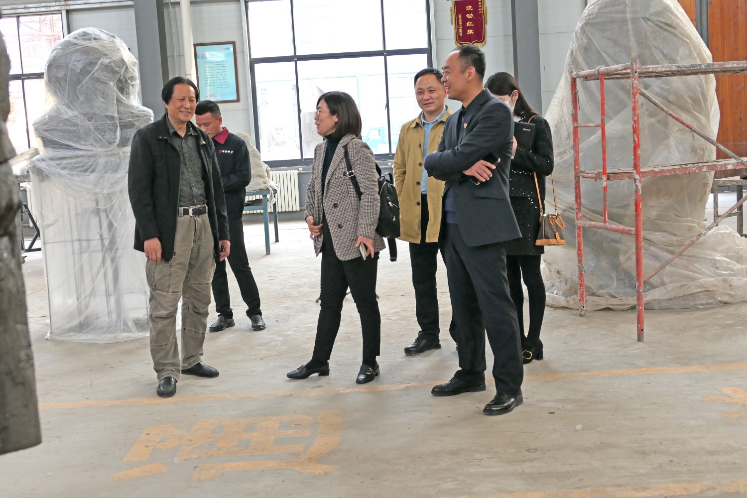 2021年4月6日,潍坊市中医院王桂萍一行来华艺参观指导,傅绍相董事长陪同活动并赠送书法作品。