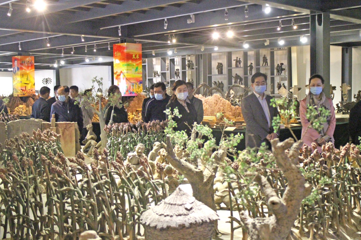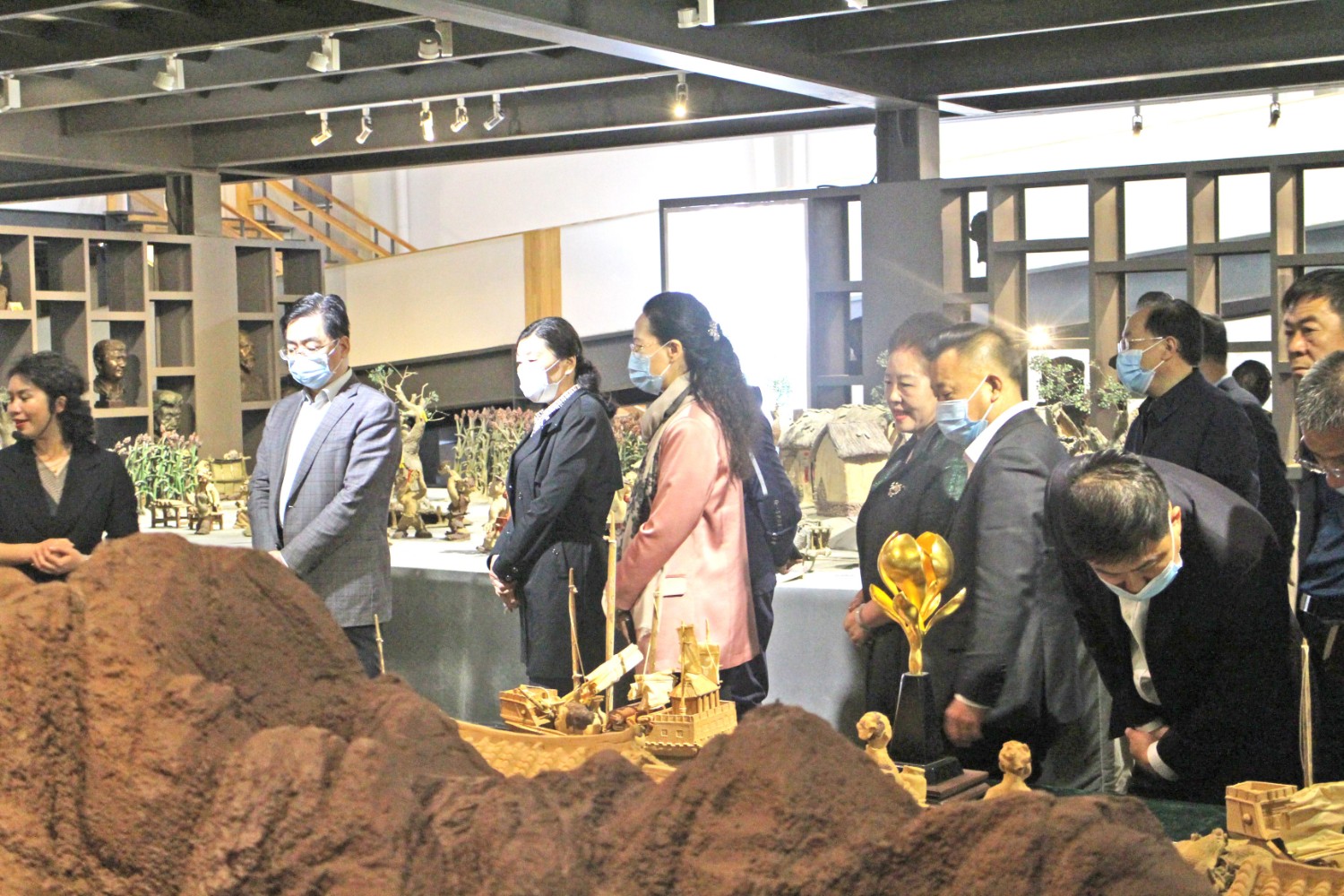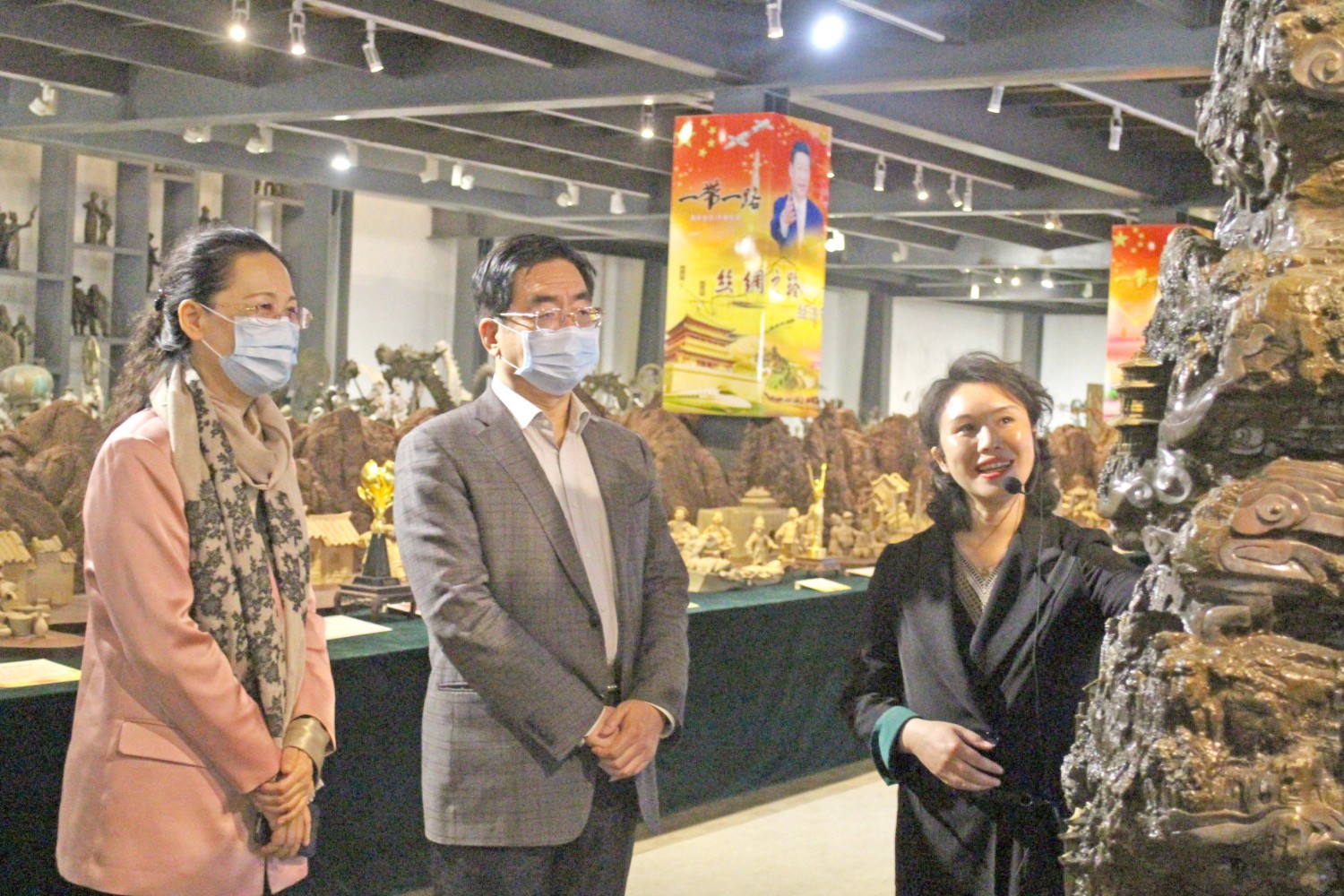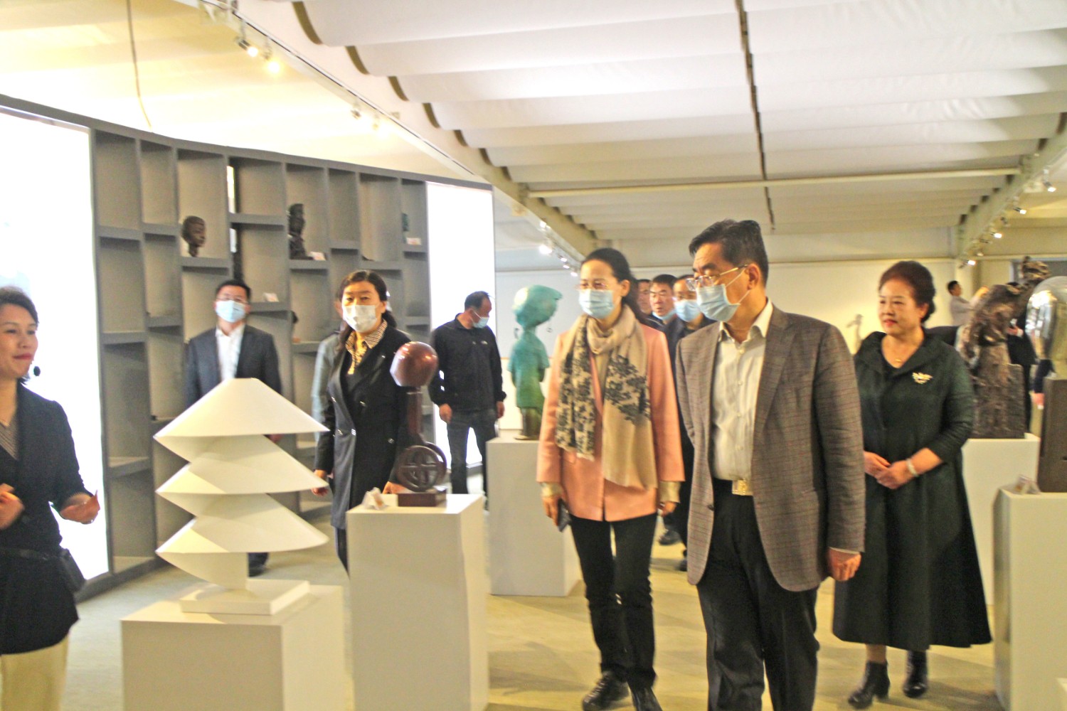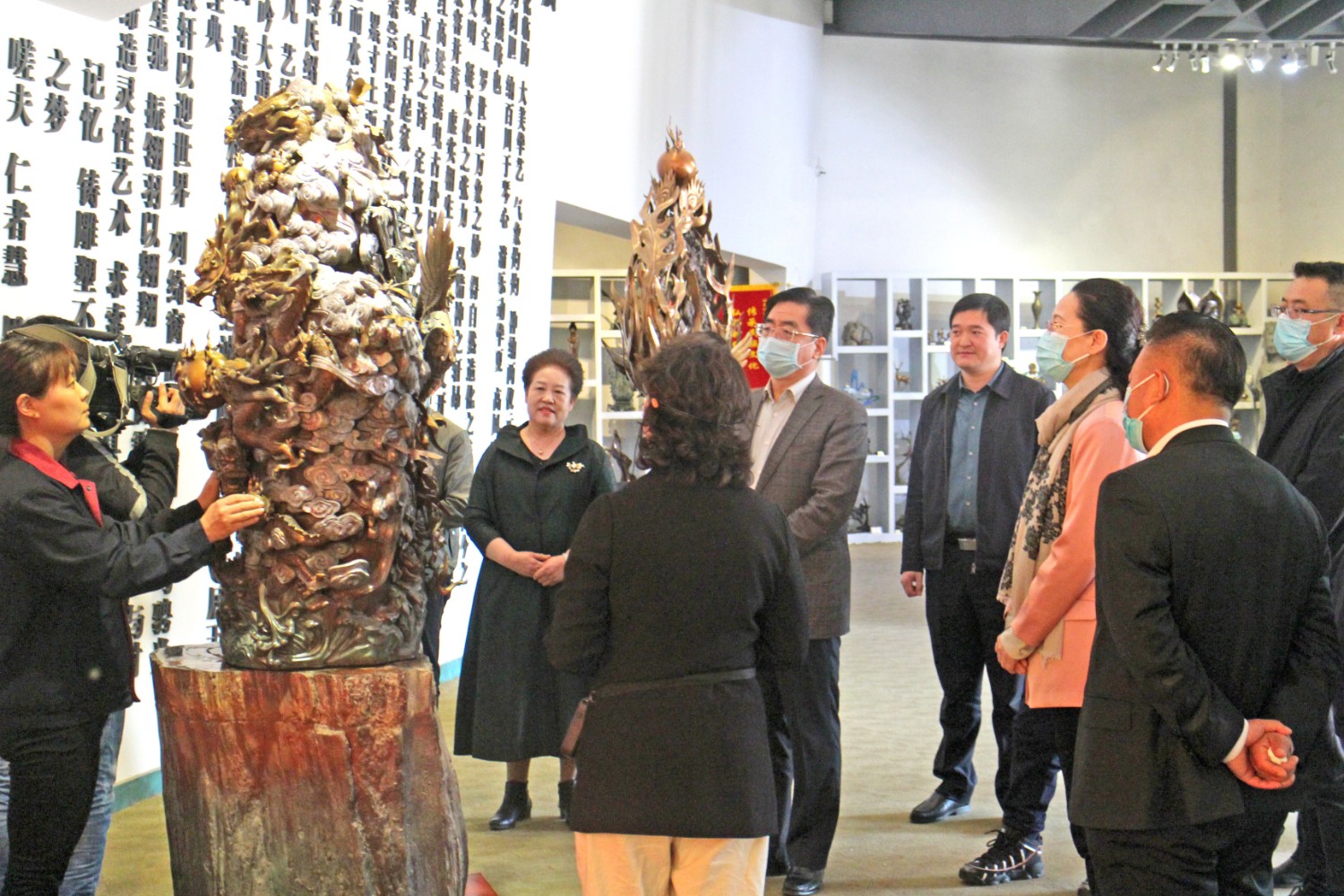 2021年4月14日,民盟内蒙古自治区委员会副主委、包头市政协副主席贺俊一行,在潍坊市政协副主席、九三学社潍坊主委李传恒的陪同下来临朐县参观考察,临朐县政协主席赵永娟、副主席白文玉陪同客人莅临华艺雕塑视察指导,华艺总经理谭宏伟介绍雕塑艺术。