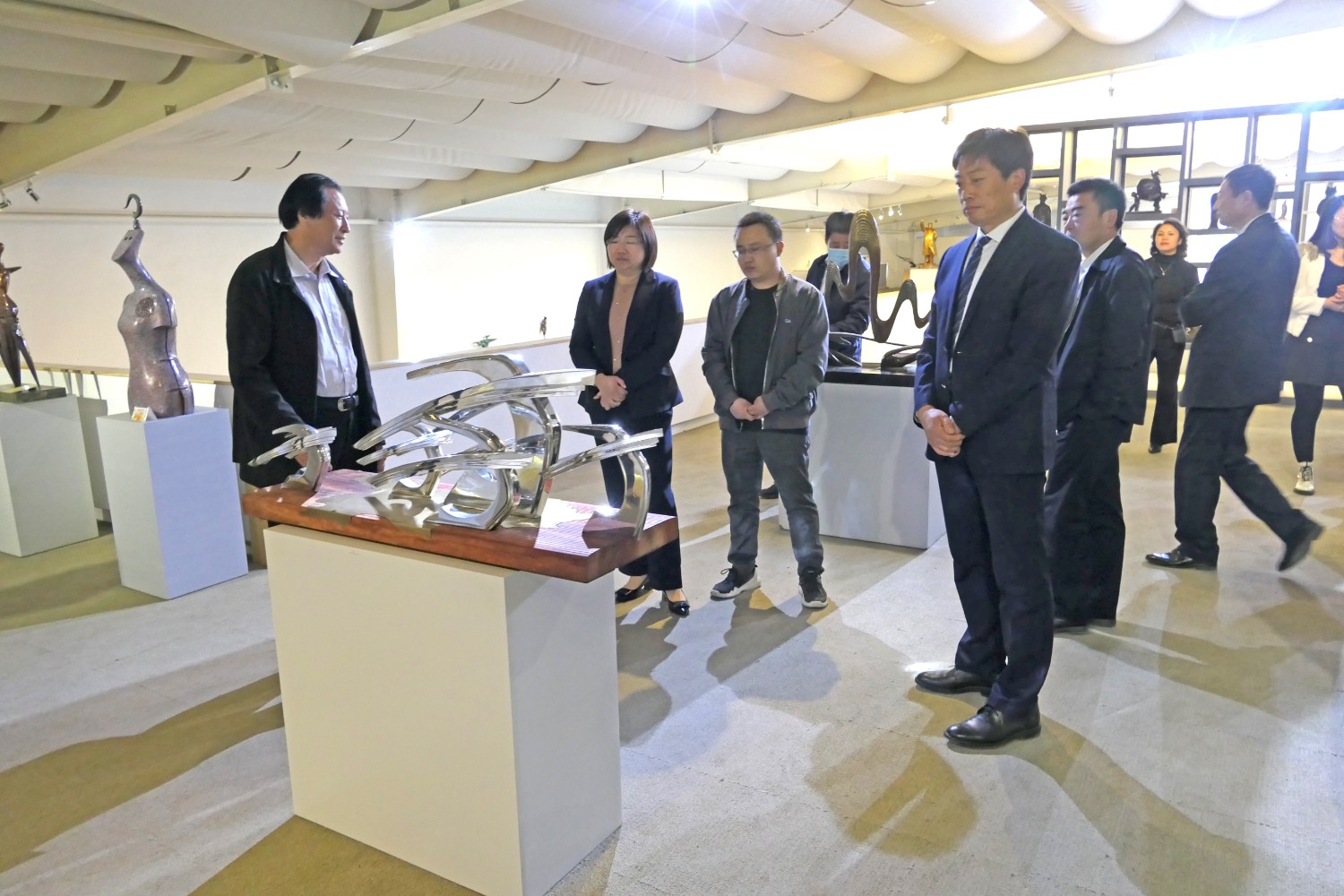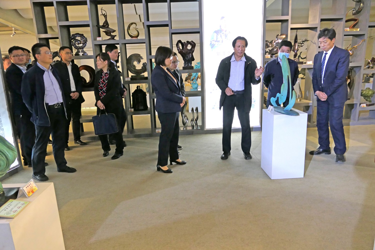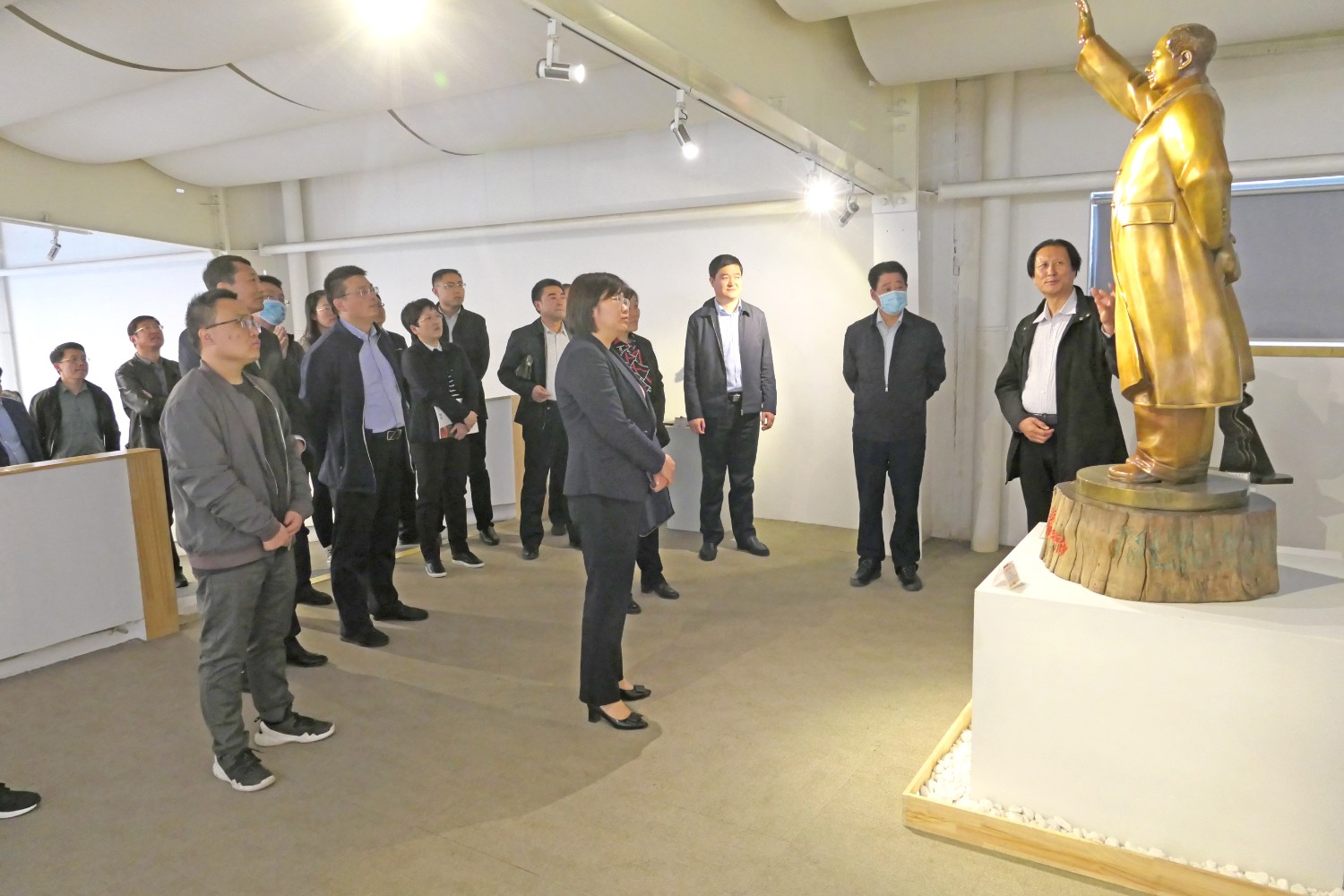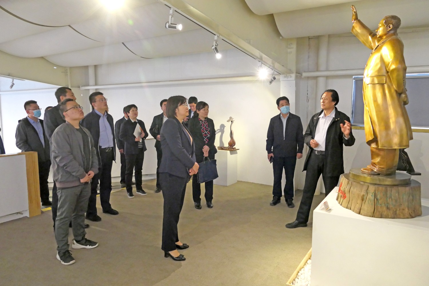 2021年4月16日,山东省纪委审理室副主任王娟、潍坊市纪委常务副书记韩鹏、市纪委审理室主任吕琳琳以及青岛、烟台、威海、东营等纪委审理室主任,在临朐县纪委书记冯波,办公室主任刘学智、城关街道办主任赵兴勇的陪同下莅临华艺视察指导,董事长傅绍相介绍雕塑艺术。
