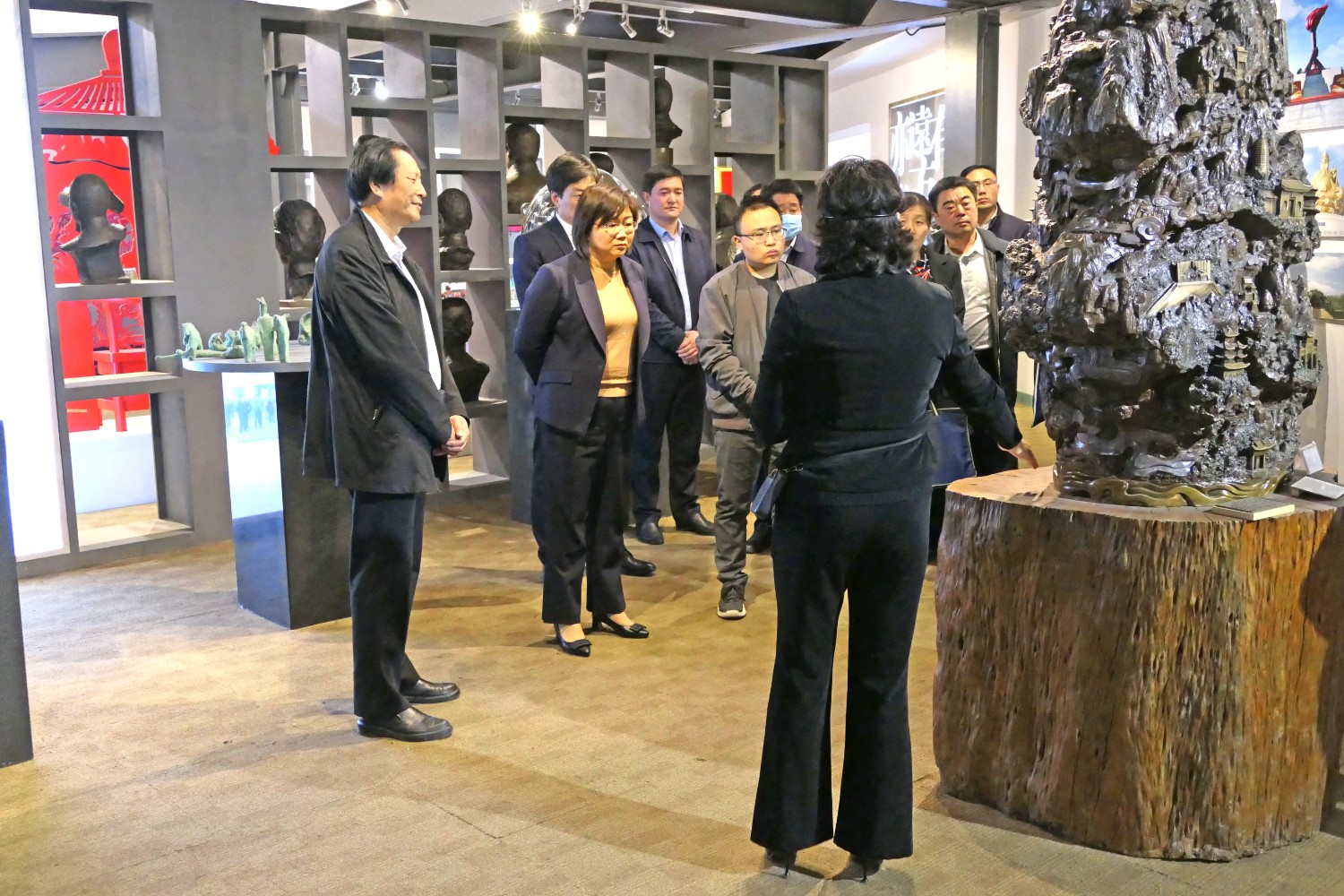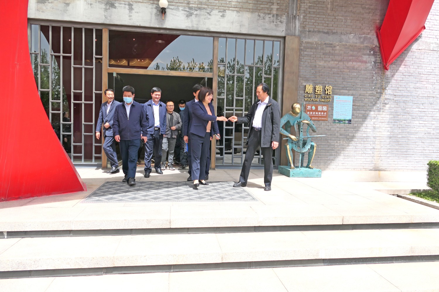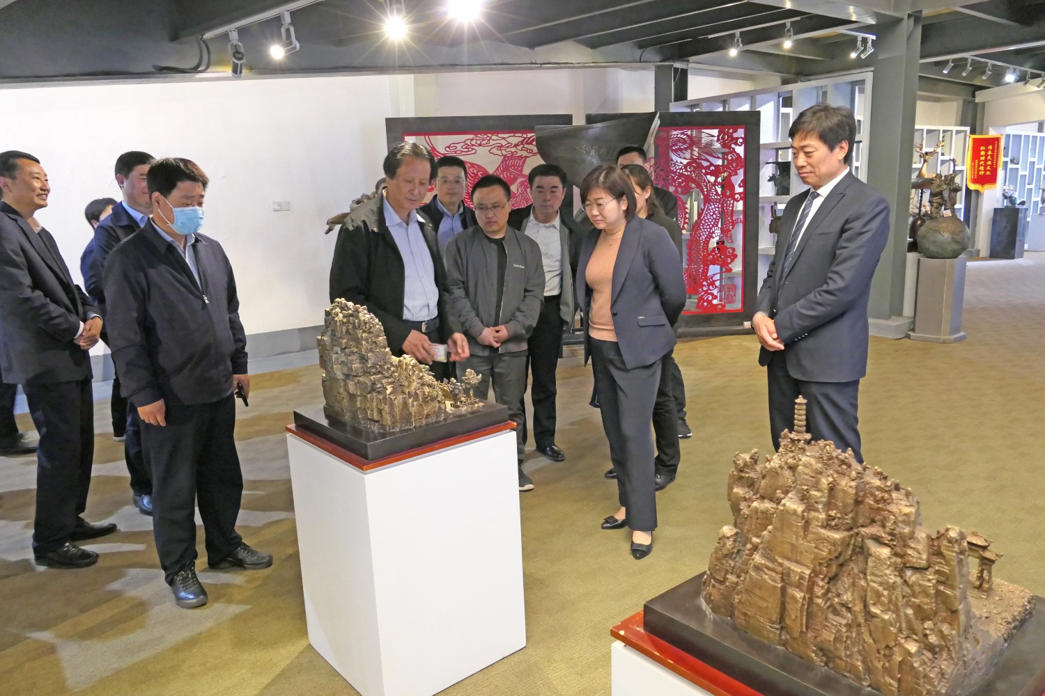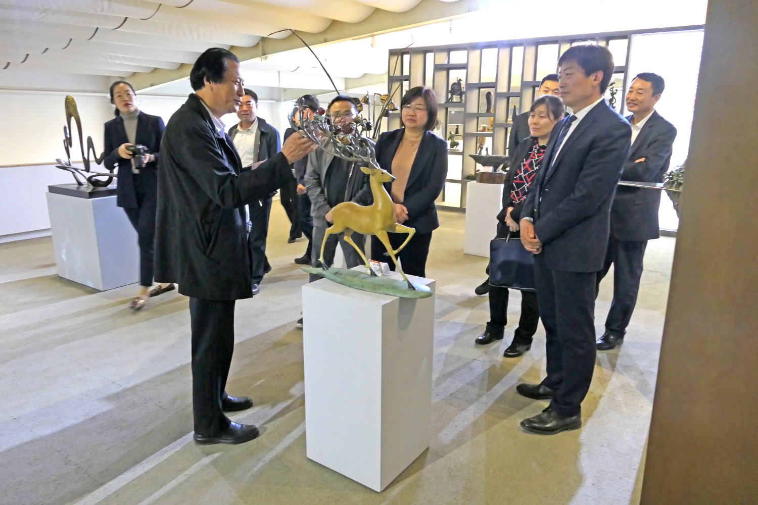 2021年4月16日,山东省纪委审理室副主任王娟、潍坊市纪委常务副书记韩鹏、市纪委审理室主任吕琳琳以及青岛、烟台、威海、东营等纪委审理室主任,在临朐县纪委书记冯波,办公室主任刘学智、城关街道办主任赵兴勇的陪同下莅临华艺视察指导,董事长傅绍相介绍雕塑艺术。