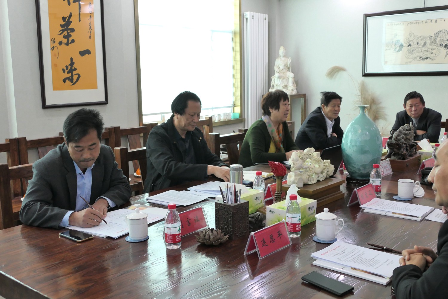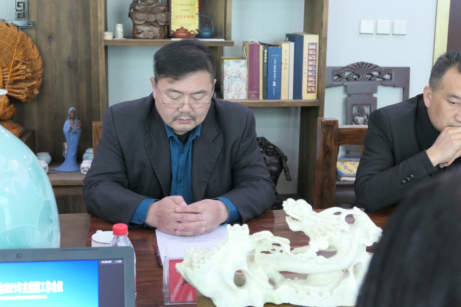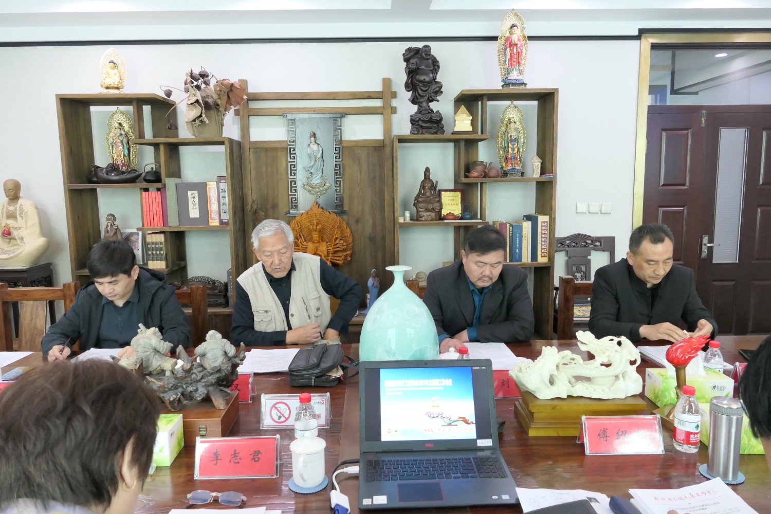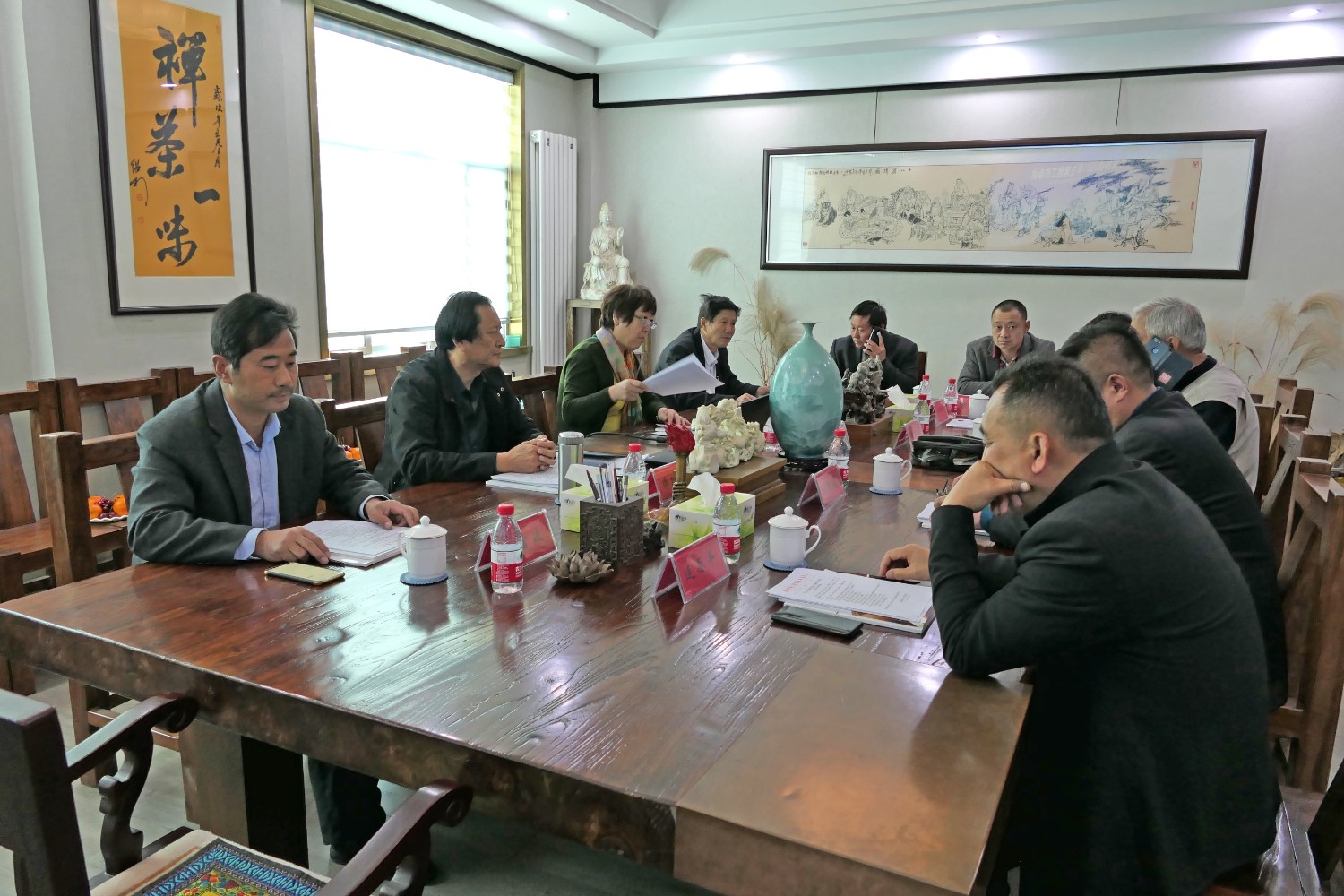 2021年4月25日“临朐县民间文艺家协会2021年主席团工作会议”在华艺雕塑二楼会议室举行。临朐县民协艺术顾问冯益汉、县民协主席傅绍相、副主席兼秘书长刘文远、副主席李志君、刘言波、连恩平、张国华、冯继正、范文刚、赵永德等主席团成员先后发言。傅绍相主持会议,主要议程:各位主席团成员汇报2020年工作情况及2021年工作计划;副主席刘文远作“2020年临朐县民间文艺家协会工作总结报告”、通报县民协2020年财务情况;主席傅绍相传达潍坊市民协2021年4月7日主席团会议精神及临朐县民协2021年工作计划,继而召开了临朐县民协党支部会议。与会人员畅所欲言,对2021年县民协工作充满信心。一致表示2021年是我国十四五开局之年,也是民间艺术在新时代、新梦想、新征程上大力发展之年,在潍坊市民协及临朐县文联的坚强领导和具体指导下,认真贯彻党的十九大和十九届二中、三中、四中、五中全会精神,大力弘扬新时代大国工匠精神,推动我县民间艺术的科技创新,积极扶持民间文艺产业,勇担时代责任、创新创意,多出民间艺术传世精品,永葆初心、凝聚共识、团结奋进、精心谋划、攻坚克难,展现县民协新形象新作为。用我们艺术的双手和精湛的民间技艺,创造出精美绝伦的民间艺术精品,向中国共产党成立一百周年奉献厚礼。