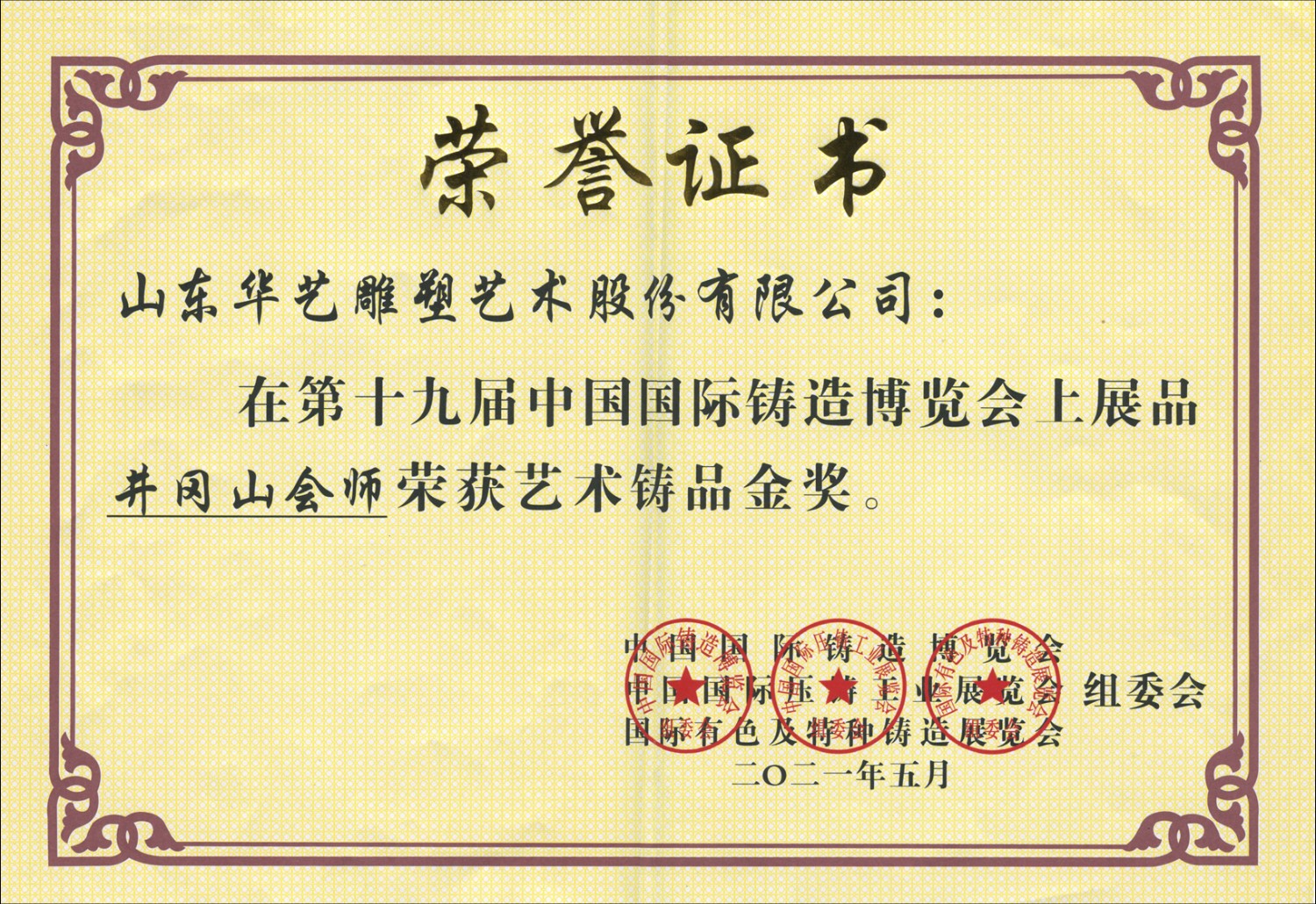 山东华艺雕塑艺术股份有限公司荣获中国铸造协会2020艺术铸品金奖