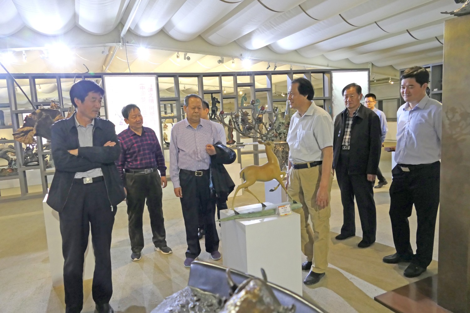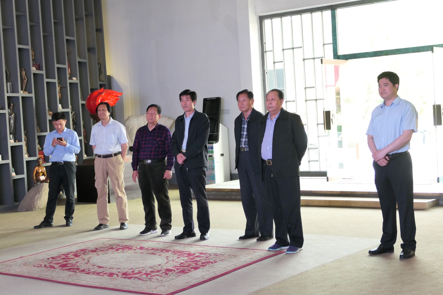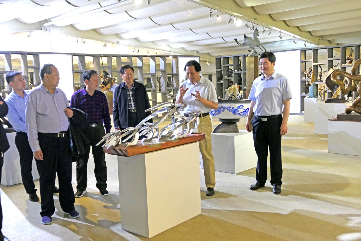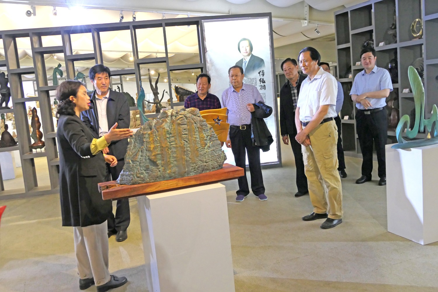 2021年5月13日,昌乐县人大领导在临朐县人大主任王晋成的陪同下,莅临华艺雕塑视察指导。傅绍相介绍雕塑艺术。