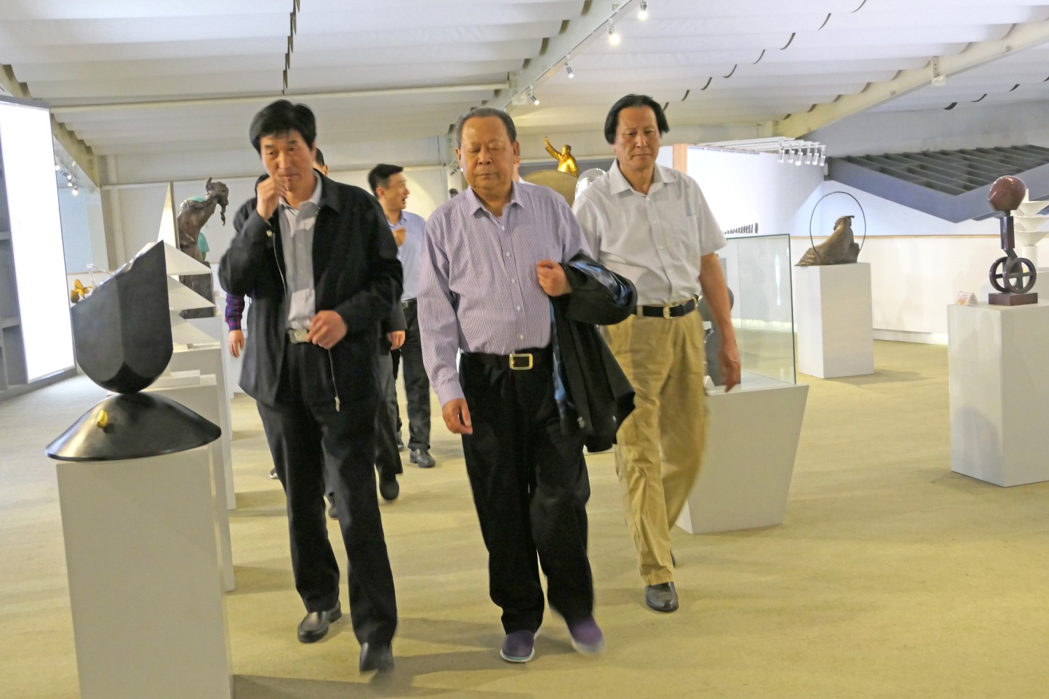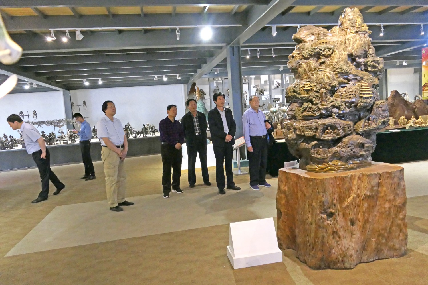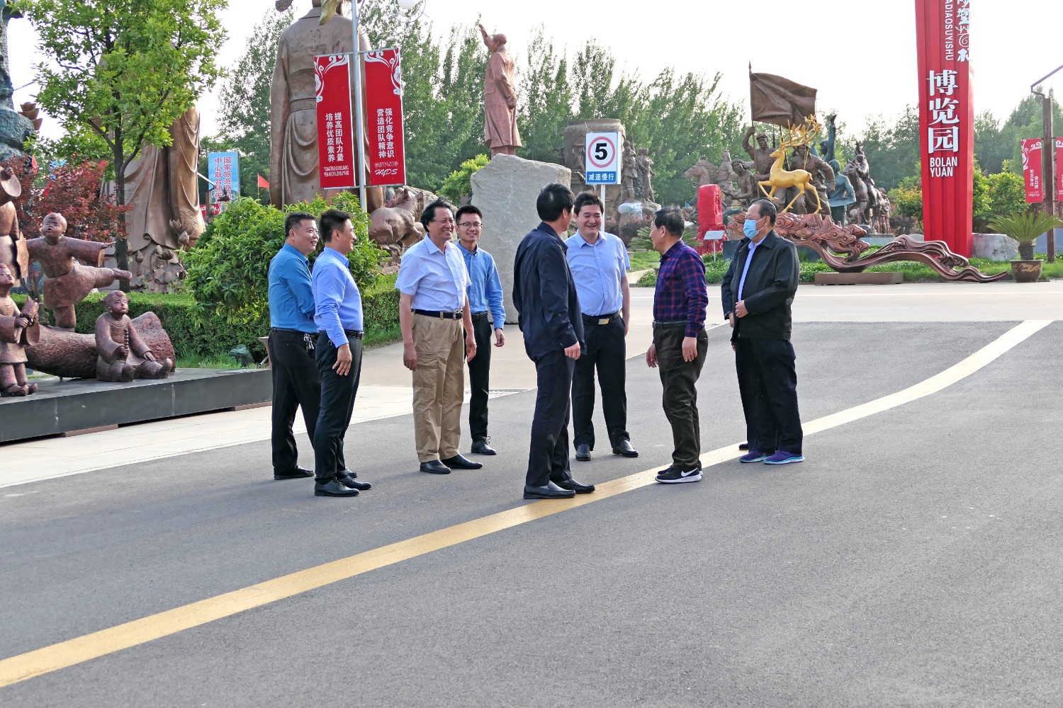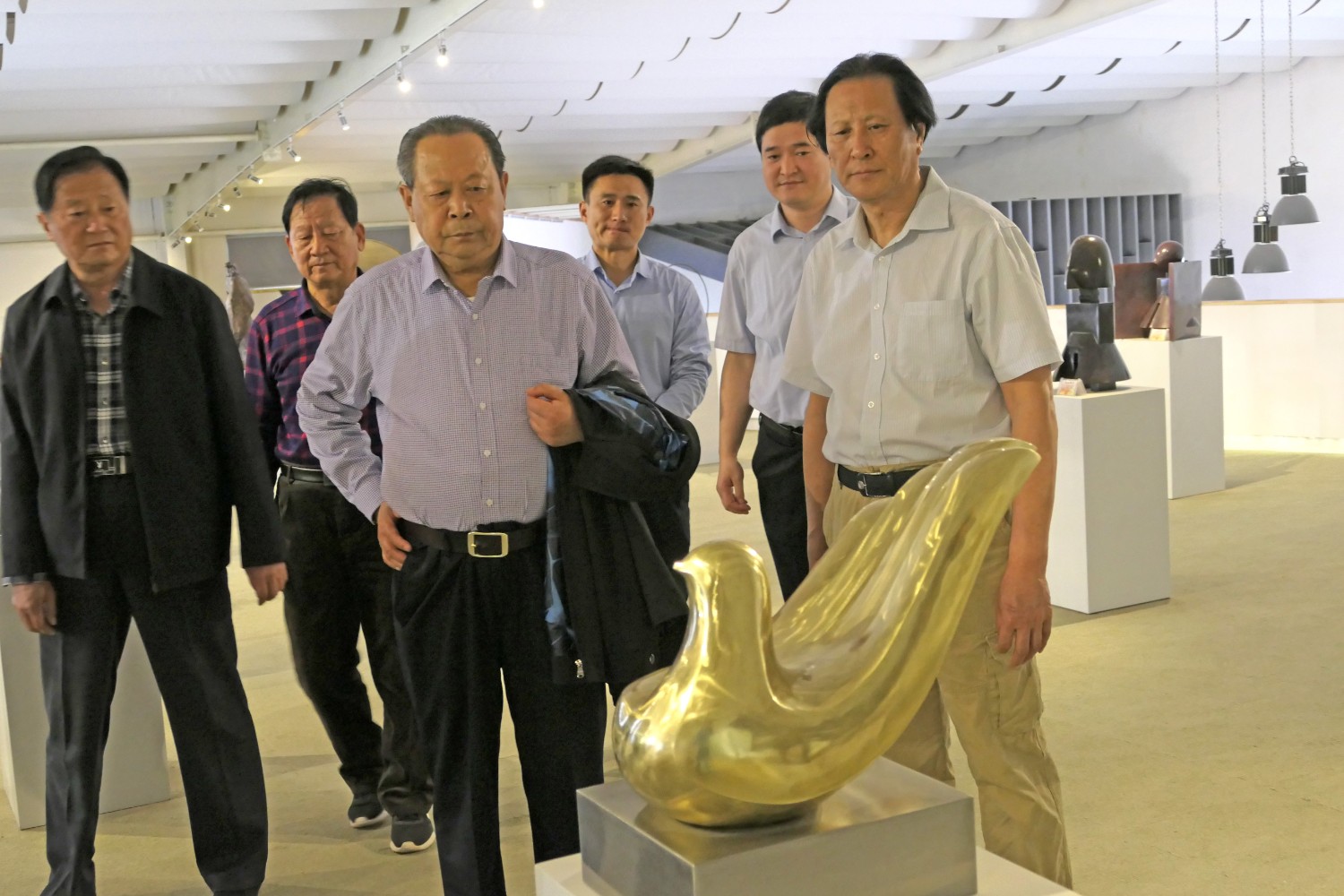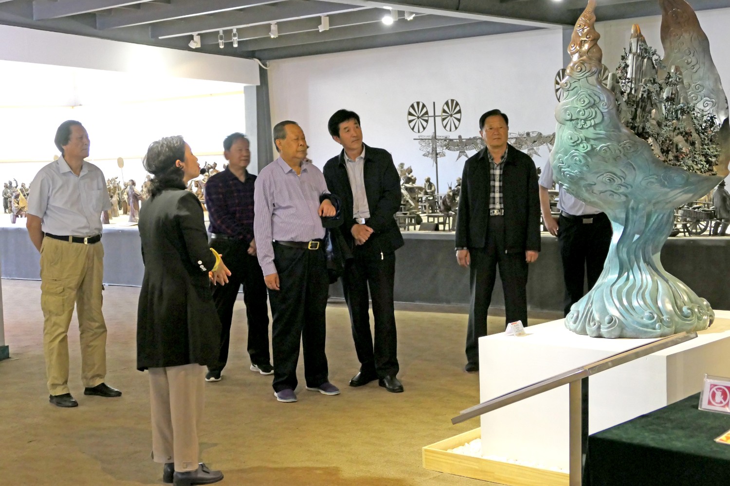 2021年5月13日,昌乐县人大领导在临朐县人大主任王晋成的陪同下,莅临华艺雕塑视察指导。傅绍相介绍雕塑艺术。