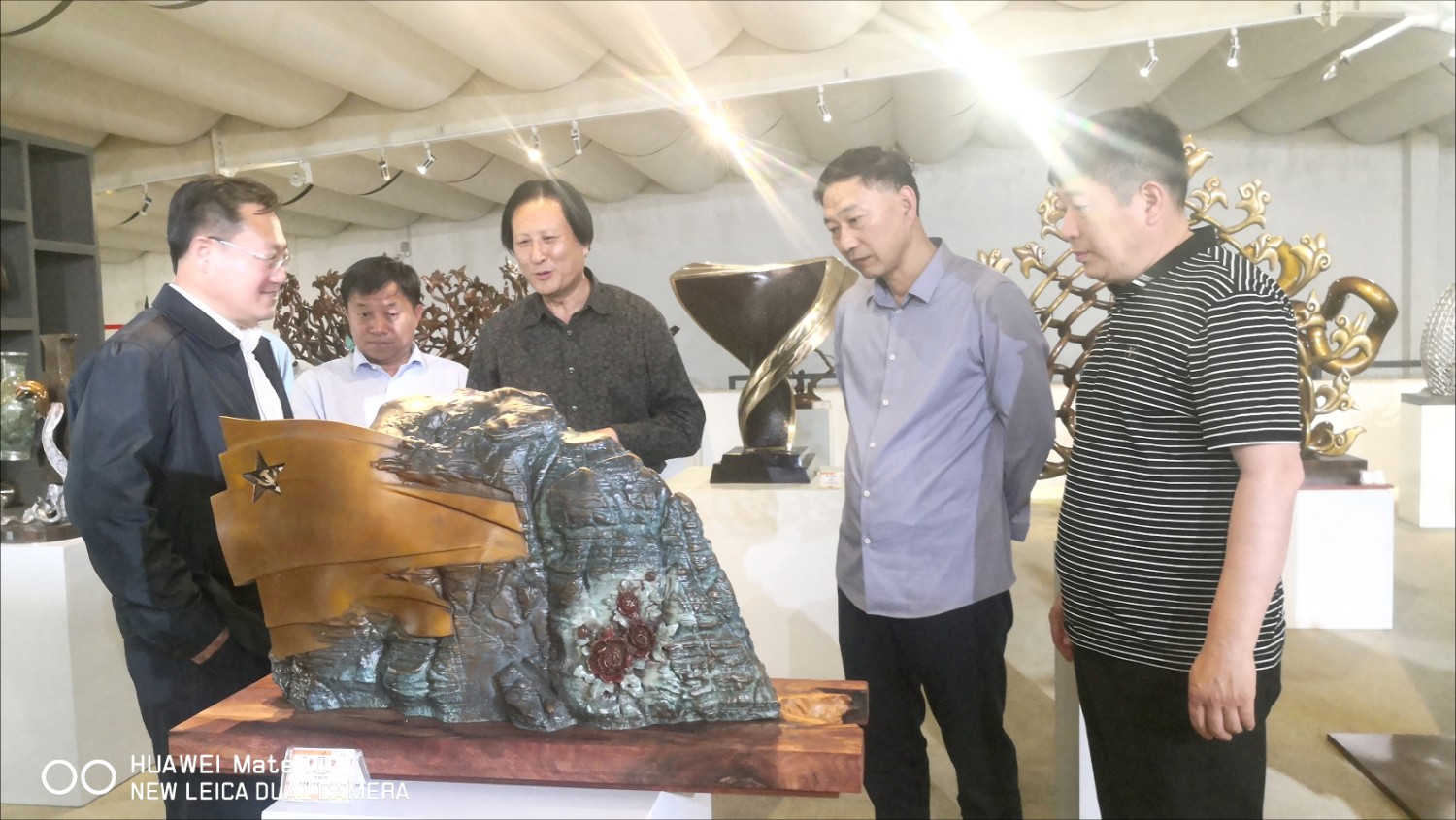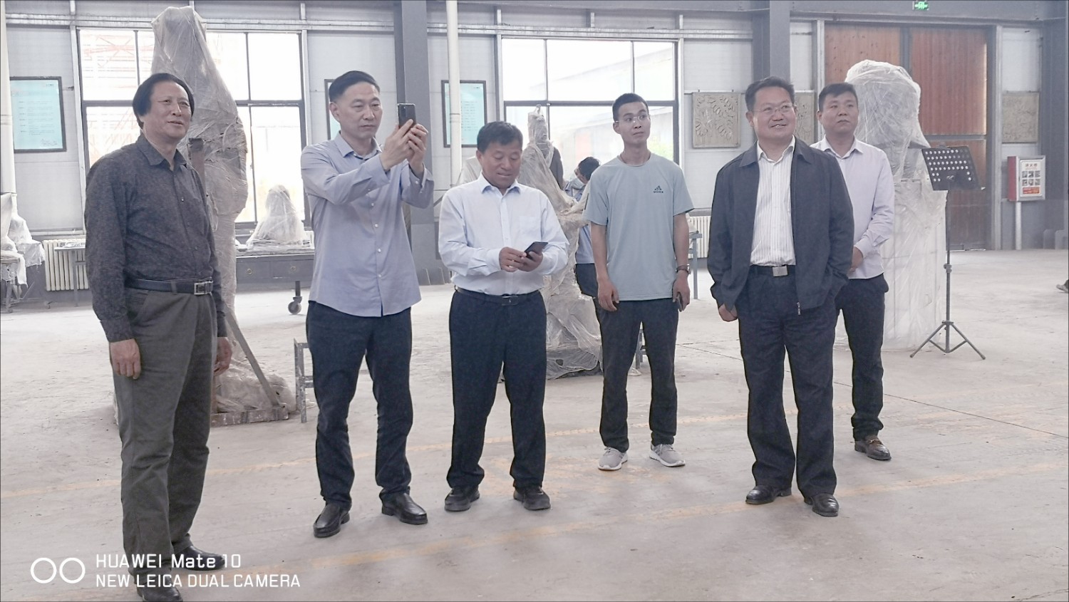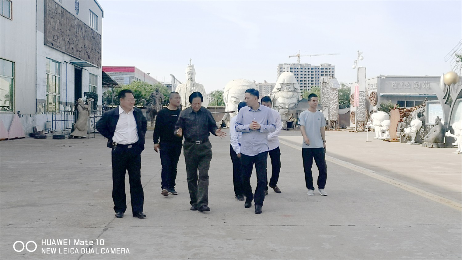 2021年5月17日,山东农业大学公共管理学院党委书记刘洪仁陪同聊城茌平客人靖志强等领导一行,莅临华艺雕塑视察指导,傅绍相介绍雕塑艺术。