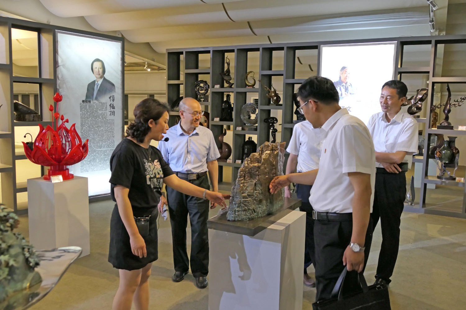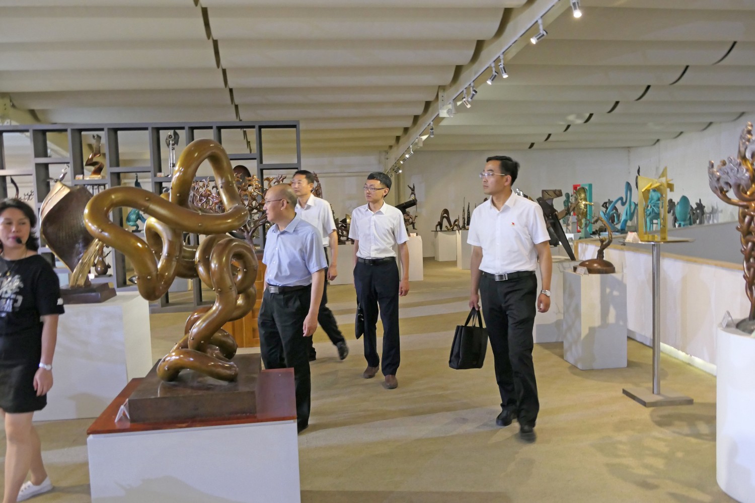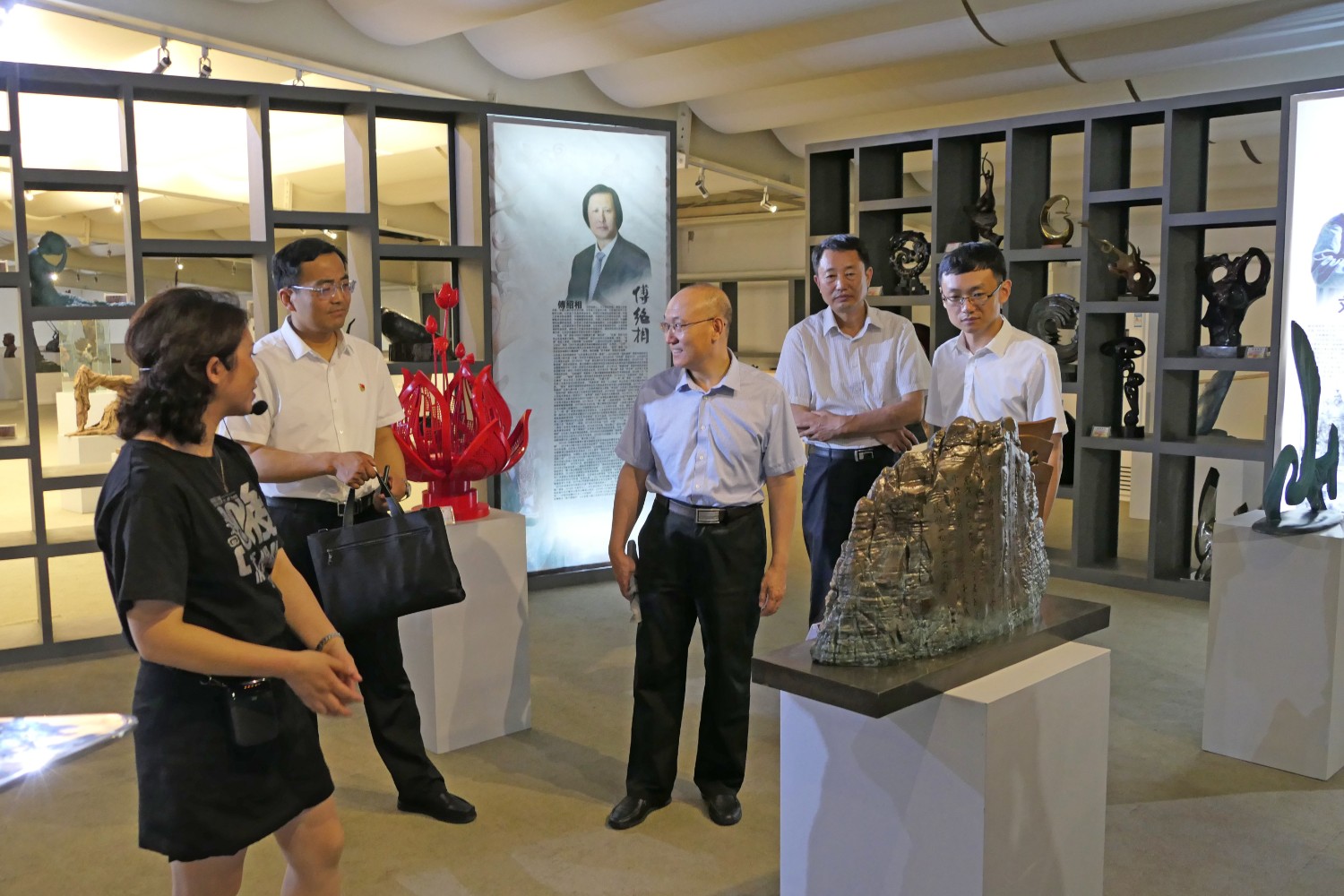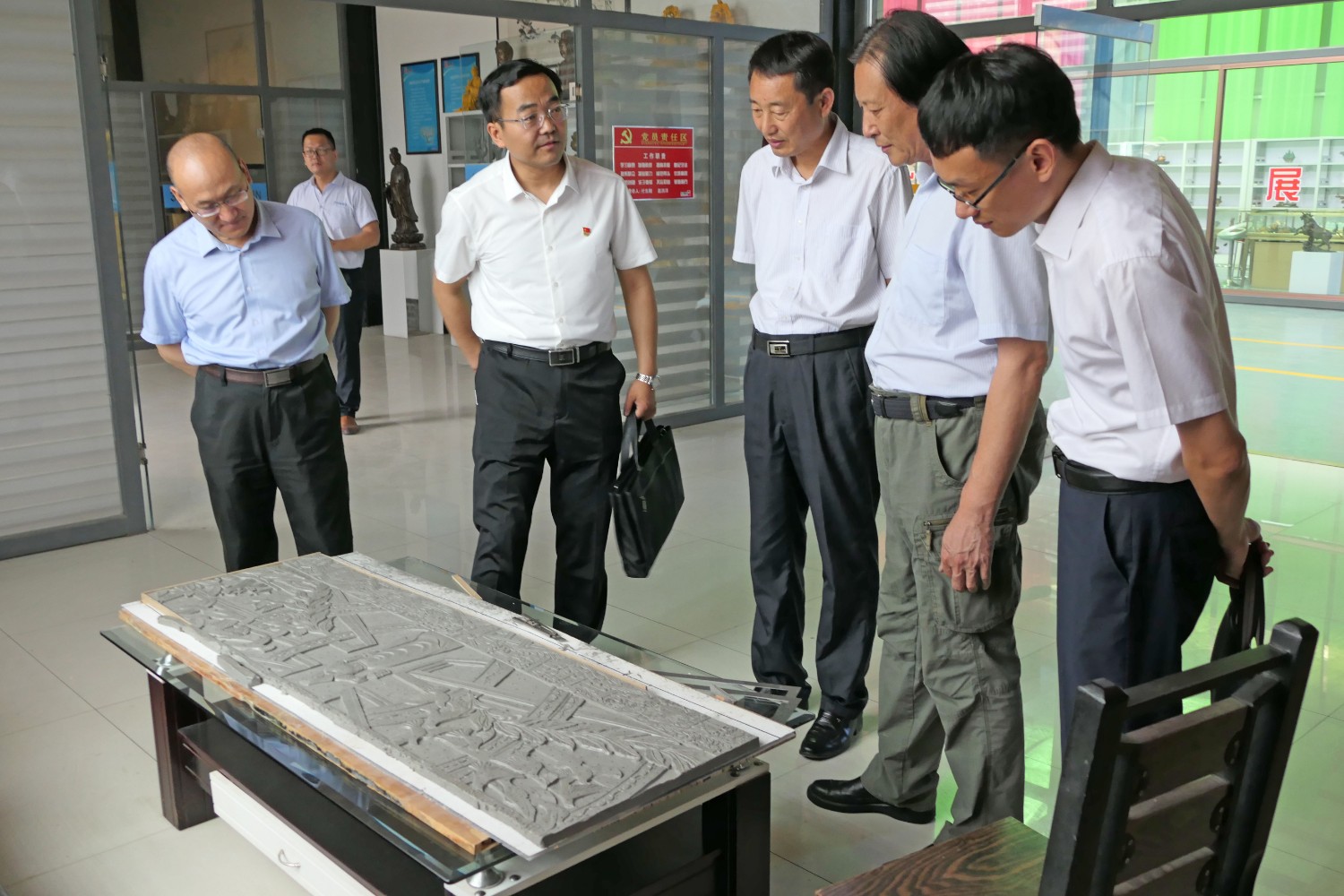 2021年6月9日,淄博市纪监委宣传部长翟磊一行莅临华艺雕塑参观指导,傅绍相介绍雕塑艺术。