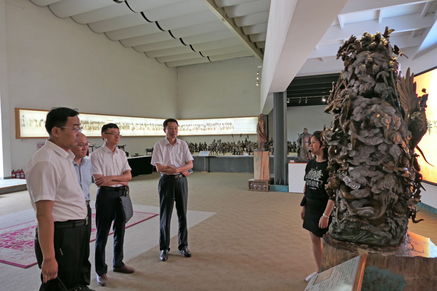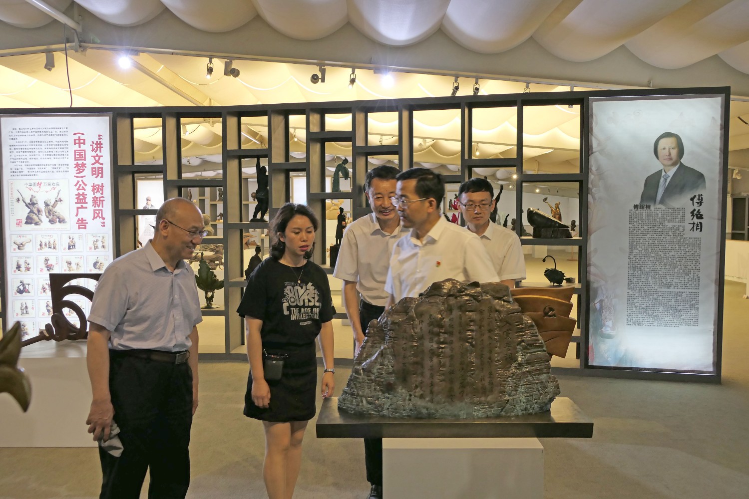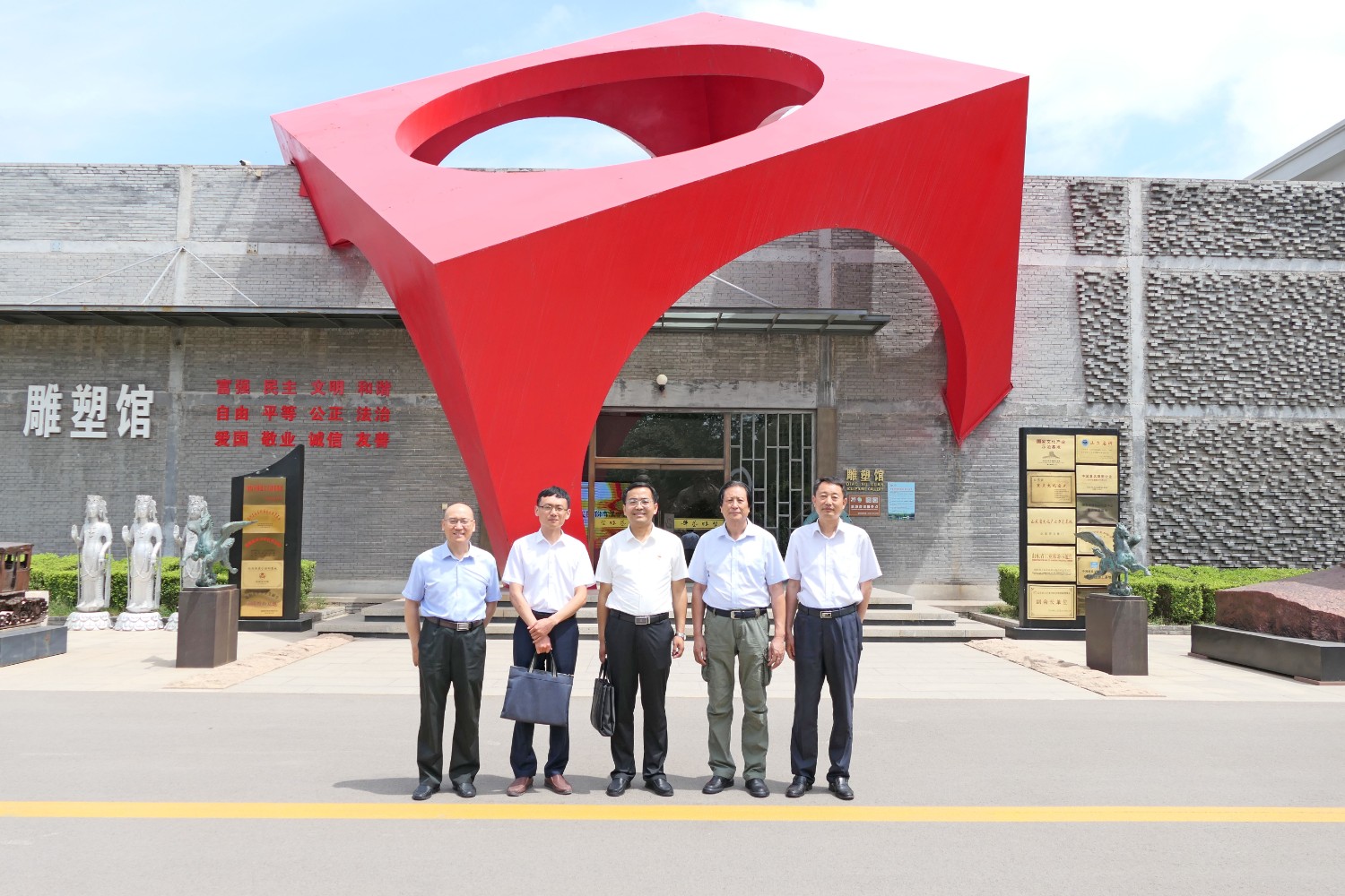 2021年6月9日,淄博市纪监委宣传部长翟磊一行莅临华艺雕塑参观指导,傅绍相介绍雕塑艺术。