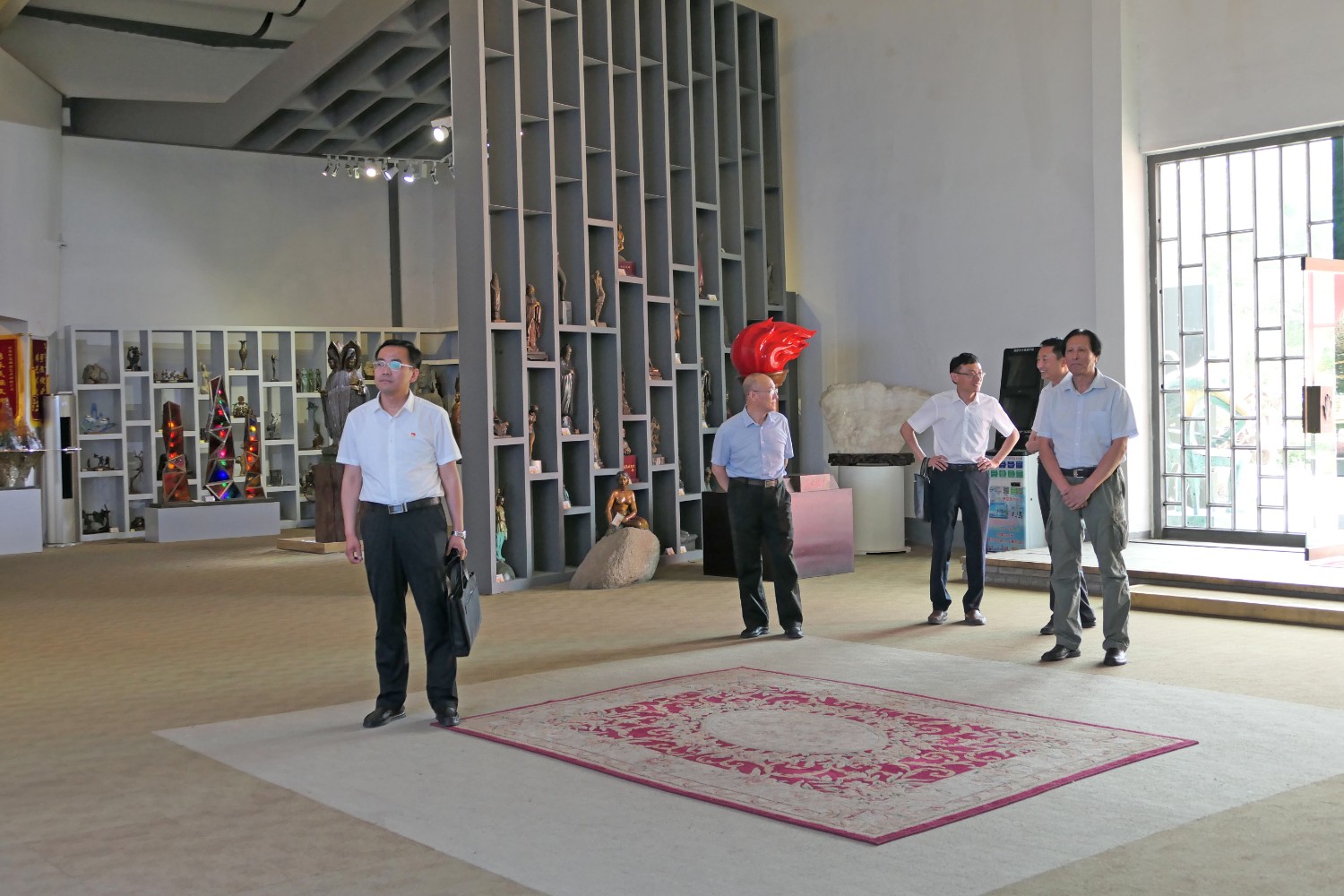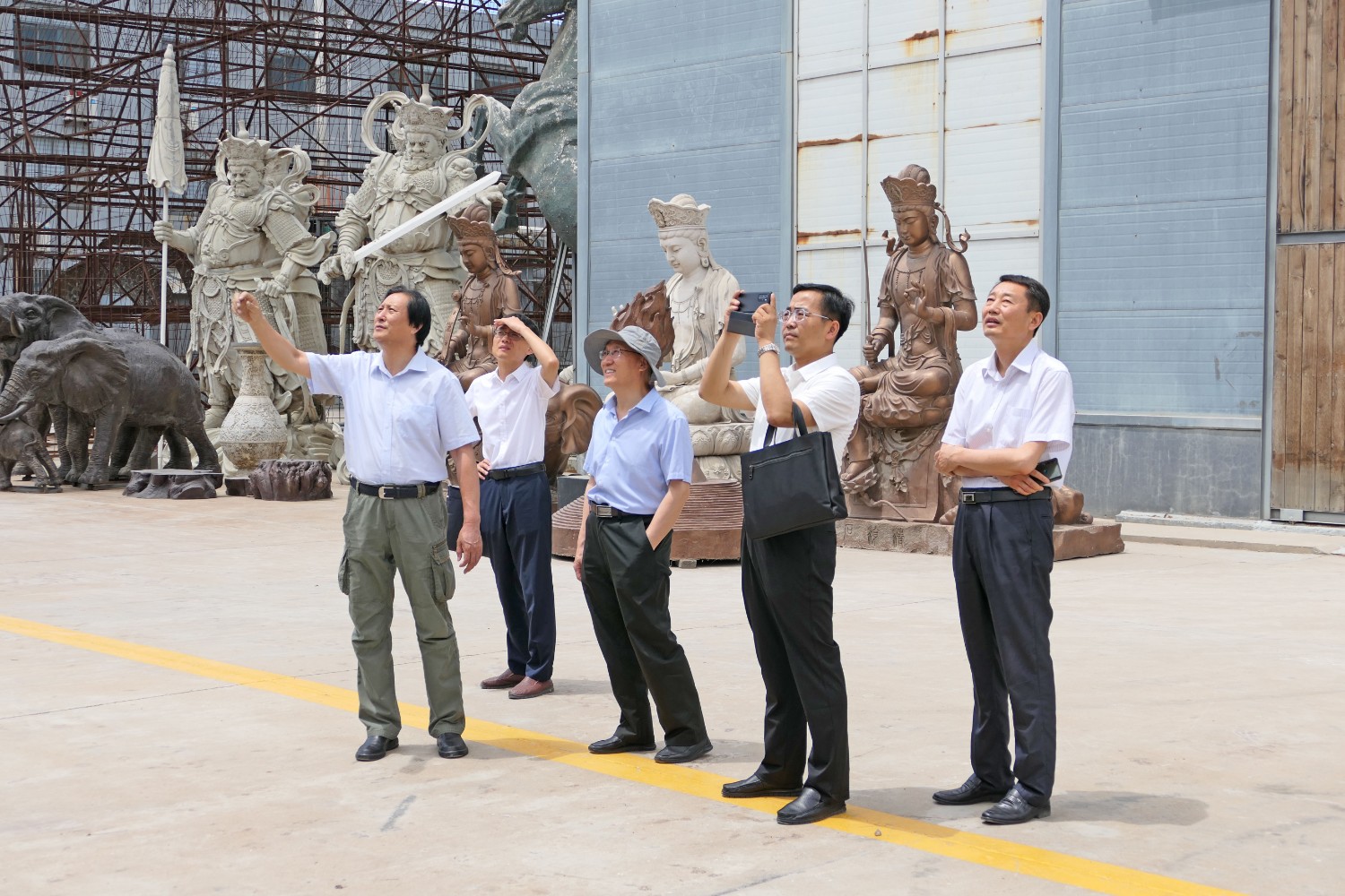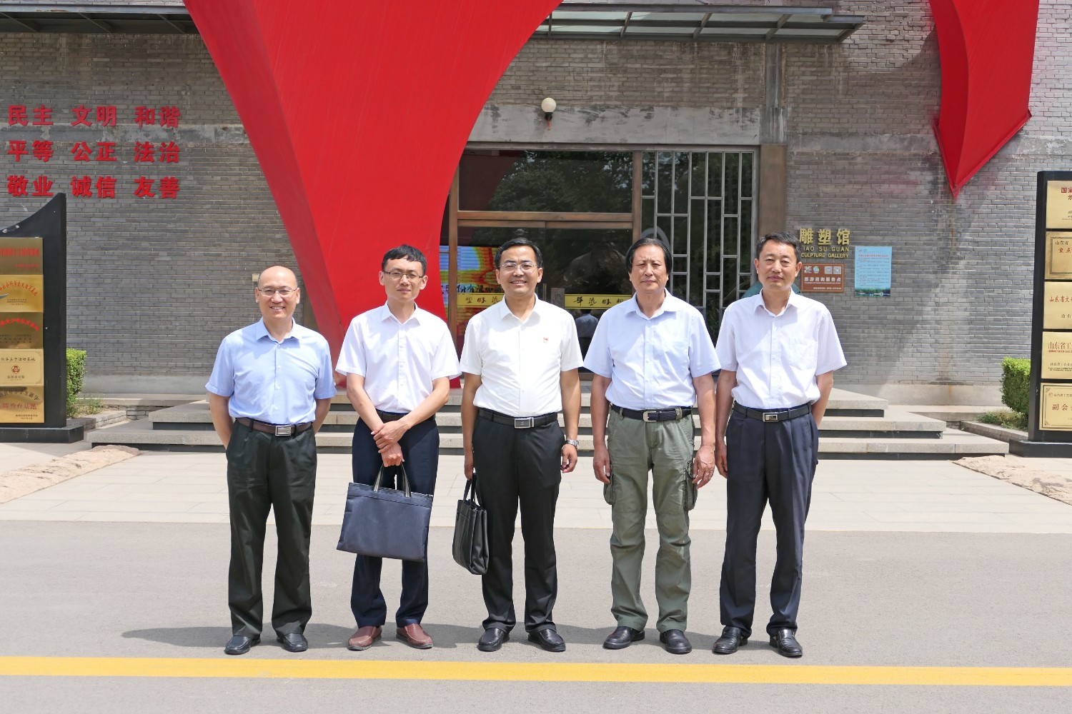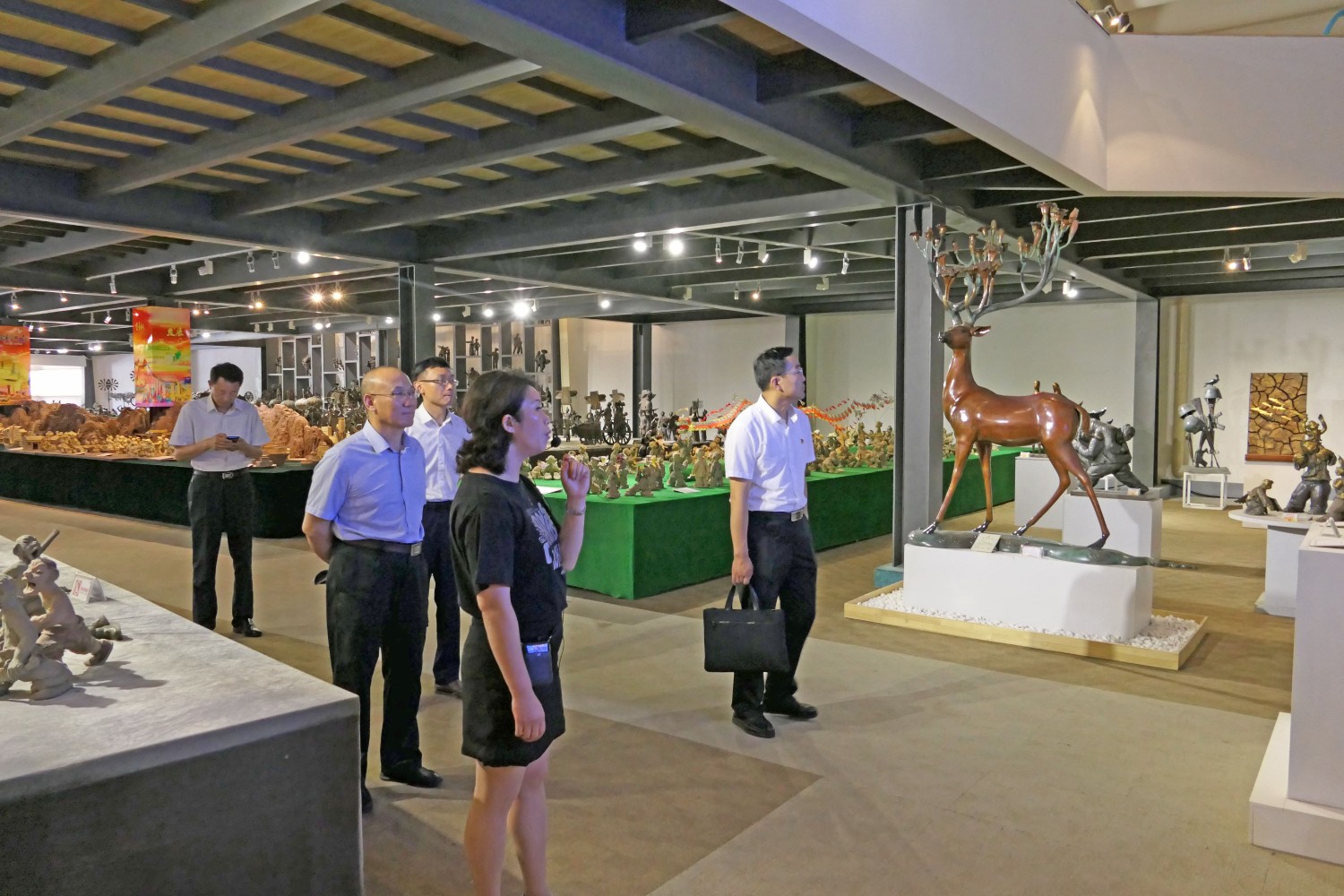 2021年6月9日,淄博市纪监委宣传部长翟磊一行莅临华艺雕塑参观指导,傅绍相介绍雕塑艺术。