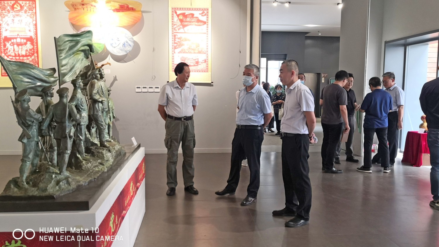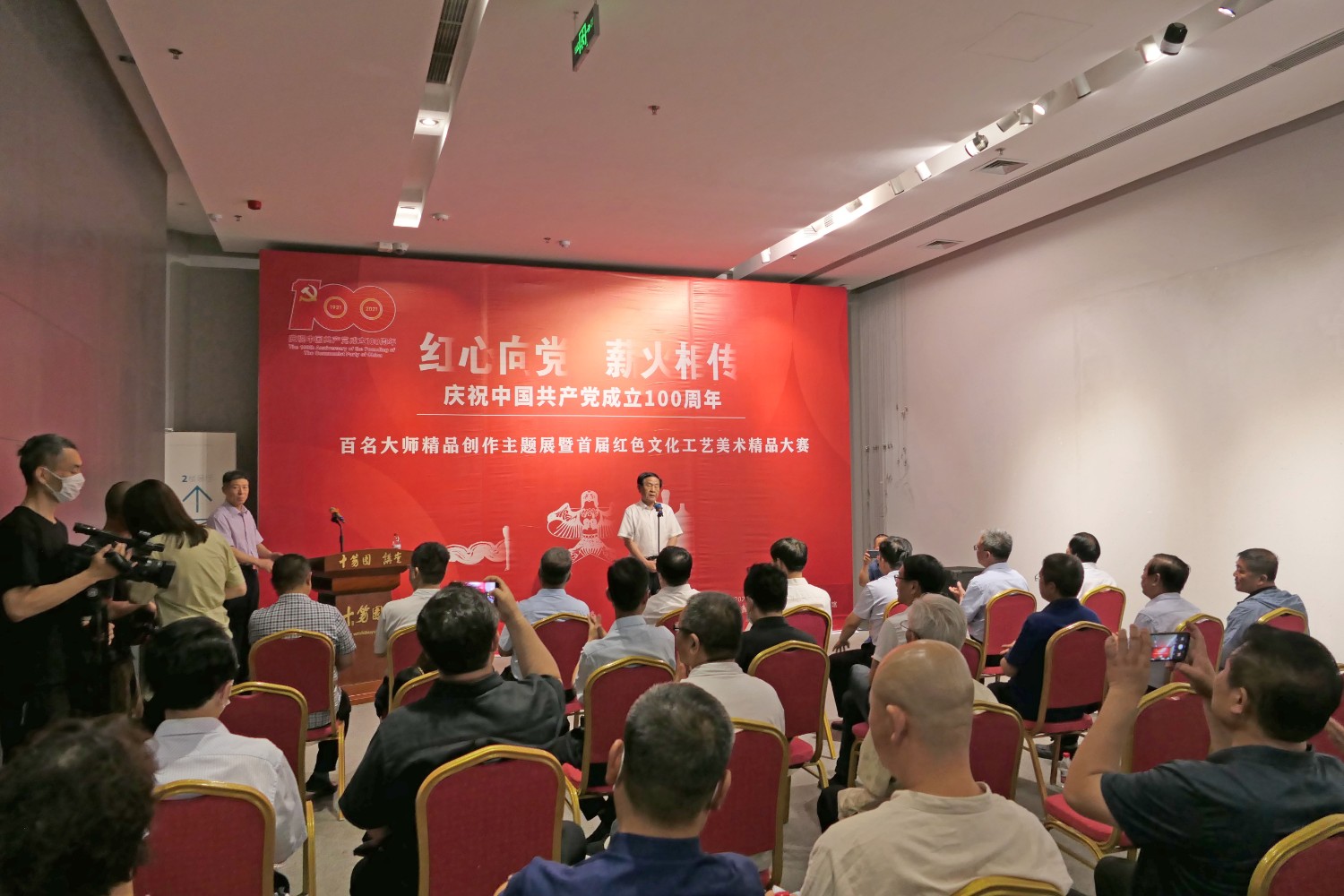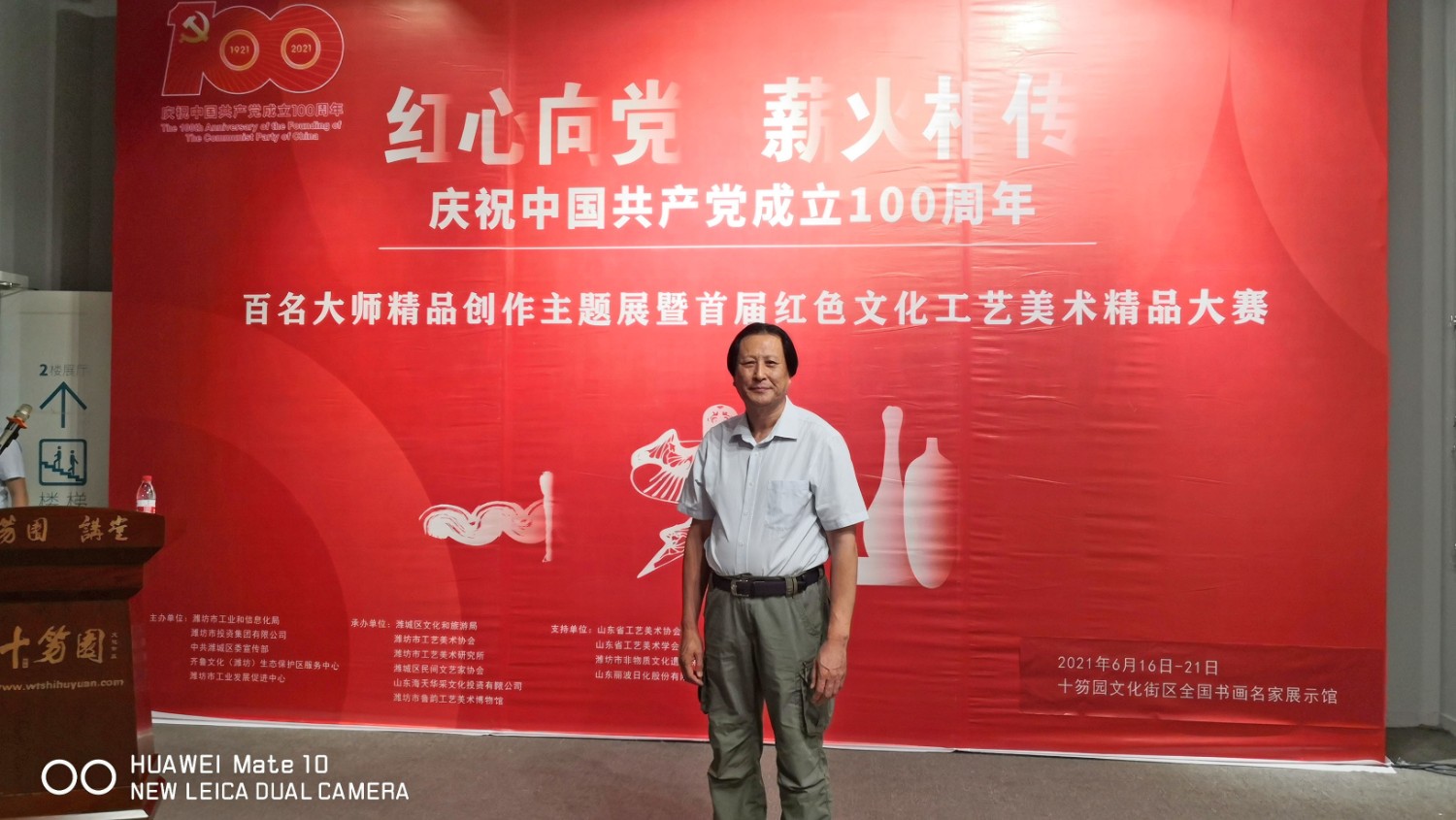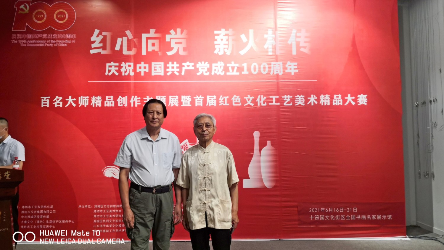 2021年6月16日,“红心向党•薪火相传”庆祝中国共产党成立100周年,百名大师精品创作主题展览,首届红色文化工艺美术精品大赛在十笏园潍坊市美术馆隆重举行。潍坊市技师学院院长丁汉邦,市工业局局长党组书记鞠俊海、调研员杨希春,潍城区委常委宣传部长武法栋,山东省工艺美术学会会长傅绍相,潍坊市工艺美术协会会长丁传信等领导出席开幕式,百余位工美大师精品力作展现,助力工艺美术事业发展。华艺雕塑遴选十余件精品参展,其中傅绍相作品《井冈山会师》荣获此次大赛金奖。