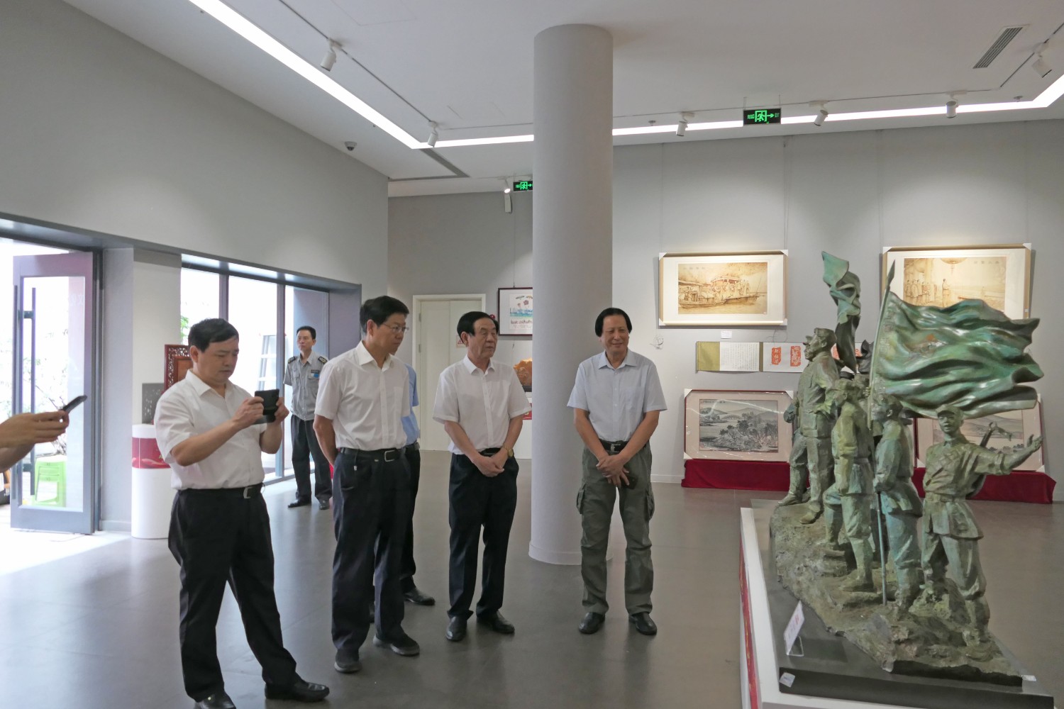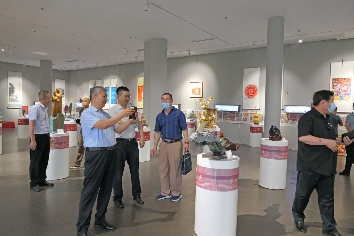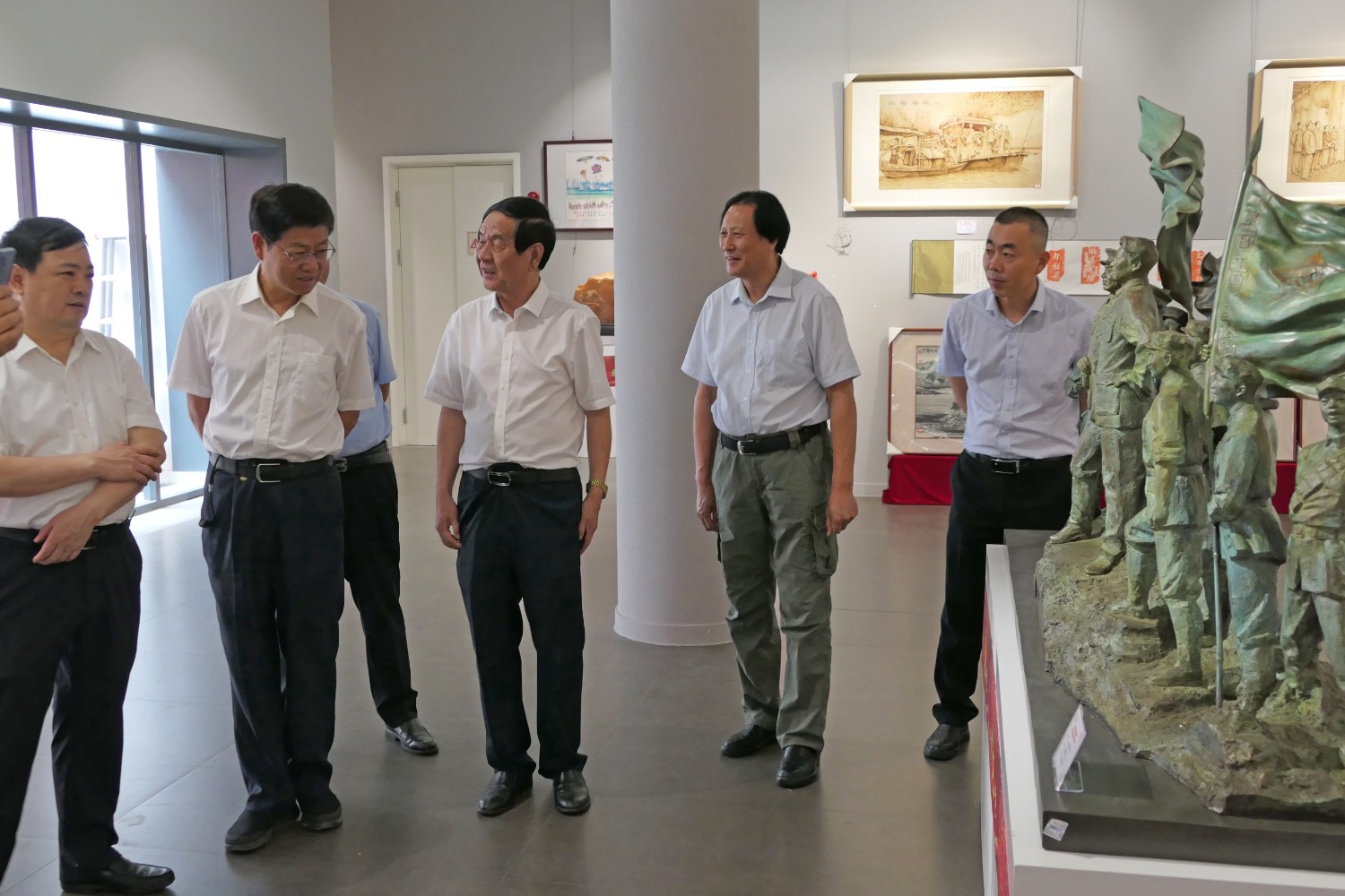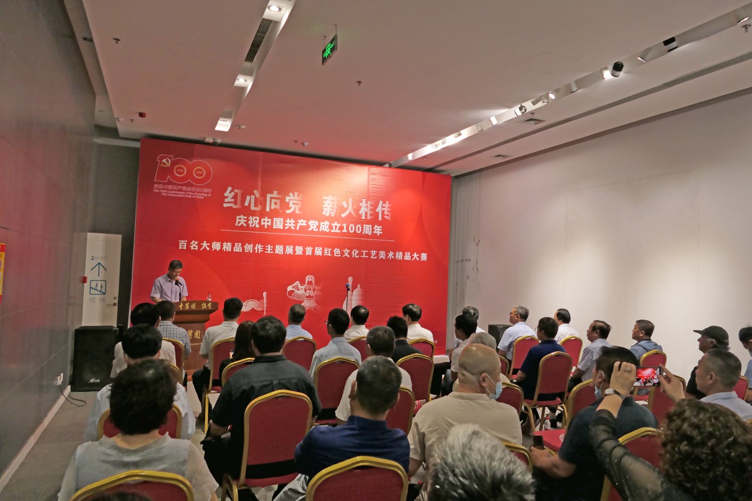 2021年6月16日,“红心向党•薪火相传”庆祝中国共产党成立100周年,百名大师精品创作主题展览,首届红色文化工艺美术精品大赛在十笏园潍坊市美术馆隆重举行。潍坊市技师学院院长丁汉邦,市工业局局长党组书记鞠俊海、调研员杨希春,潍城区委常委宣传部长武法栋,山东省工艺美术学会会长傅绍相,潍坊市工艺美术协会会长丁传信等领导出席开幕式,百余位工美大师精品力作展现,助力工艺美术事业发展。华艺雕塑遴选十余件精品参展,其中傅绍相作品《井冈山会师》荣获此次大赛金奖。