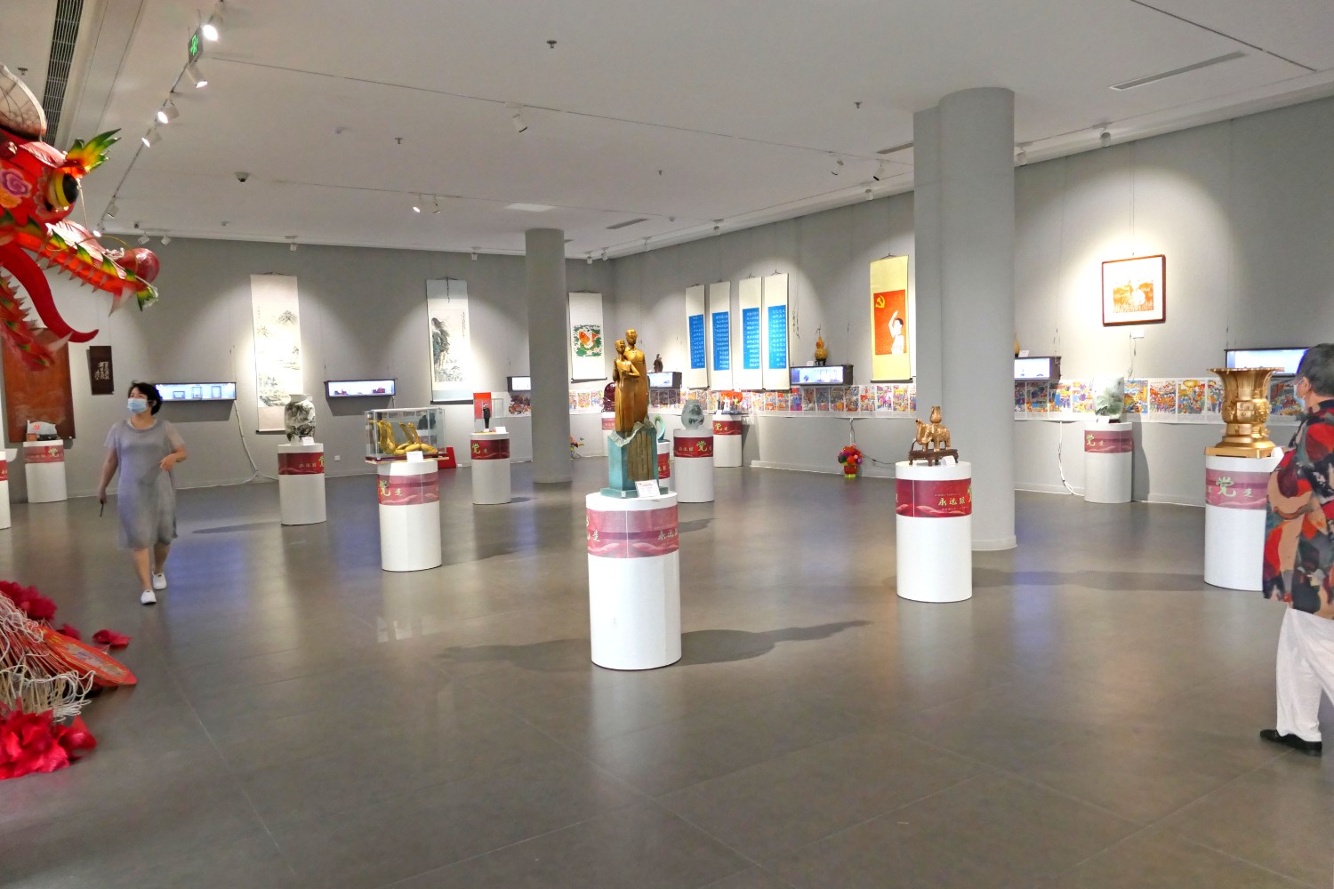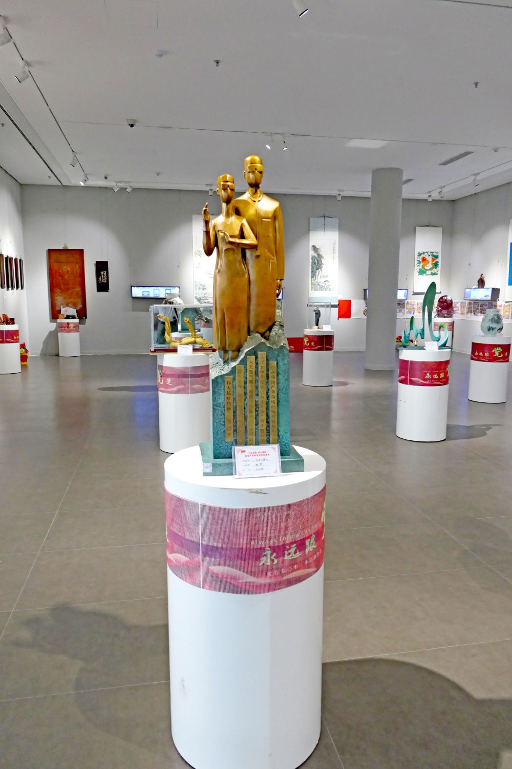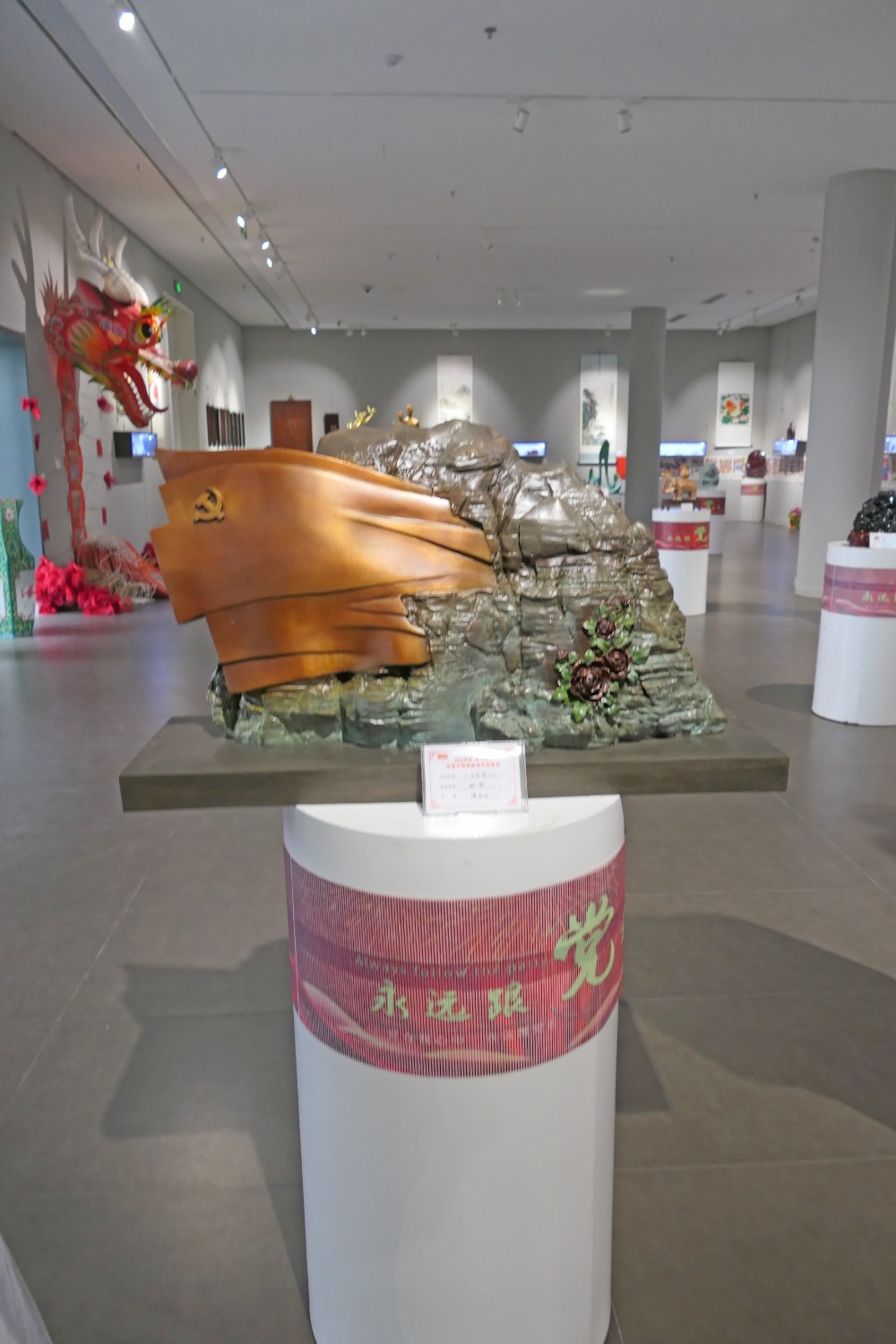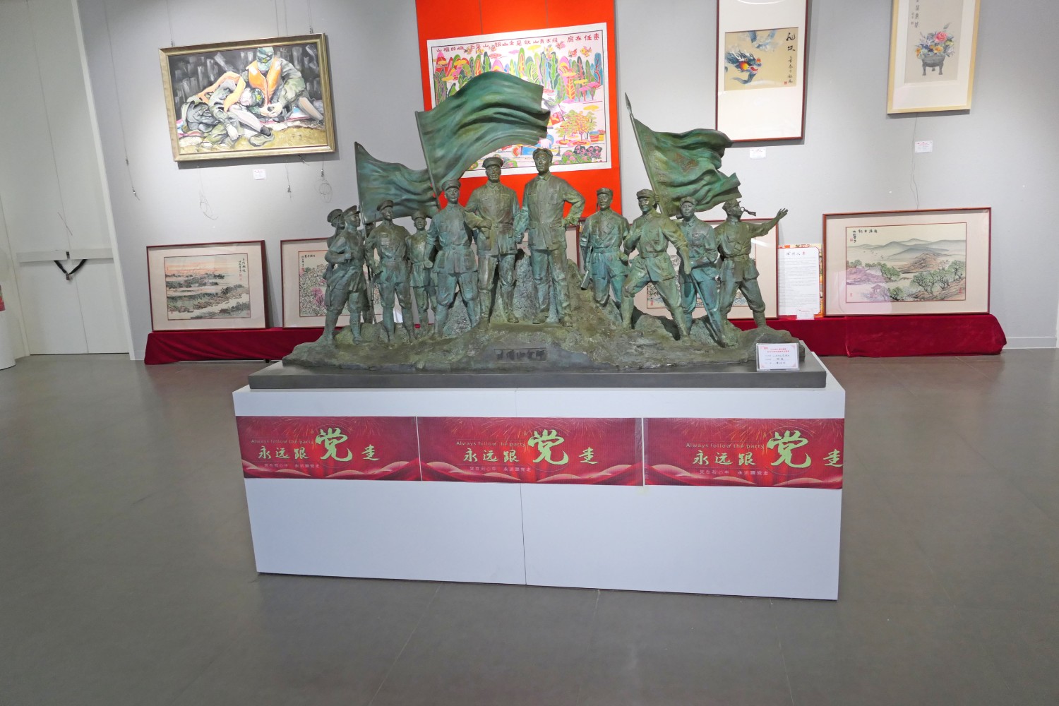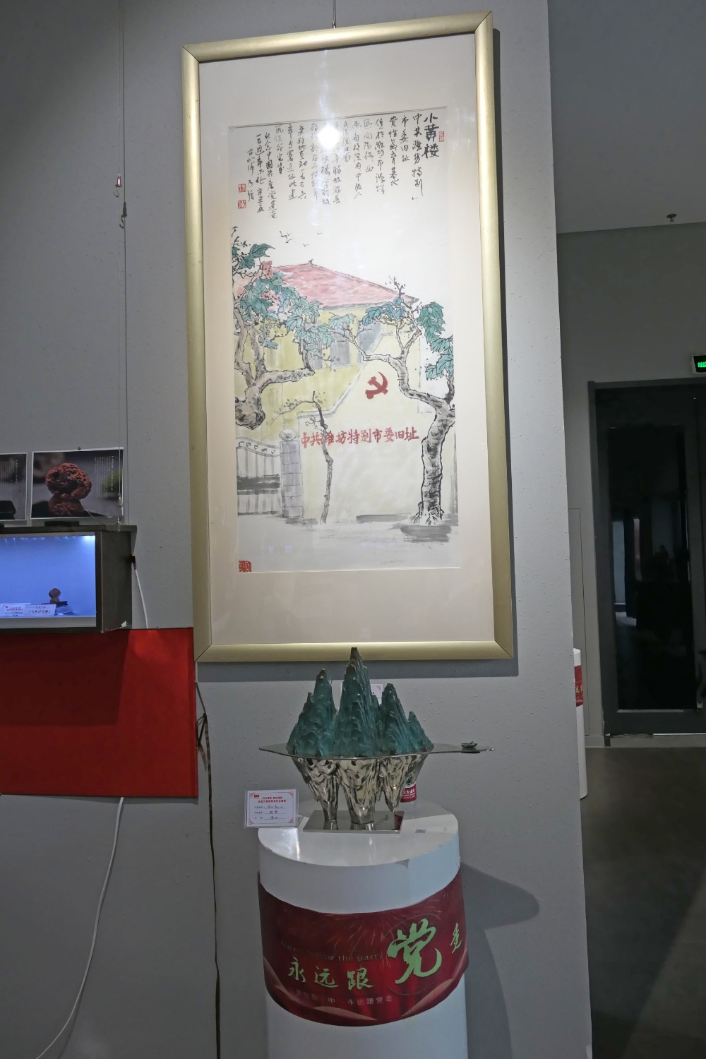 2021年6月16日,“红心向党•薪火相传”庆祝中国共产党成立100周年,百名大师精品创作主题展览,首届红色文化工艺美术精品大赛在十笏园潍坊市美术馆隆重举行。潍坊市技师学院院长丁汉邦,市工业局局长党组书记鞠俊海、调研员杨希春,潍城区委常委宣传部长武法栋,山东省工艺美术学会会长傅绍相,潍坊市工艺美术协会会长丁传信等领导出席开幕式,百余位工美大师精品力作展现,助力工艺美术事业发展。华艺雕塑遴选十余件精品参展,其中傅绍相作品《井冈山会师》荣获此次大赛金奖。