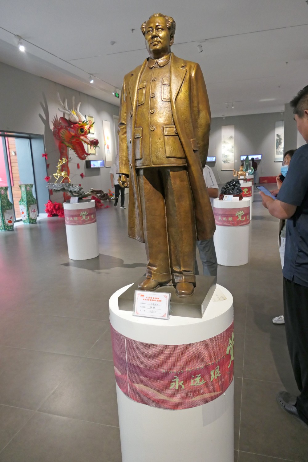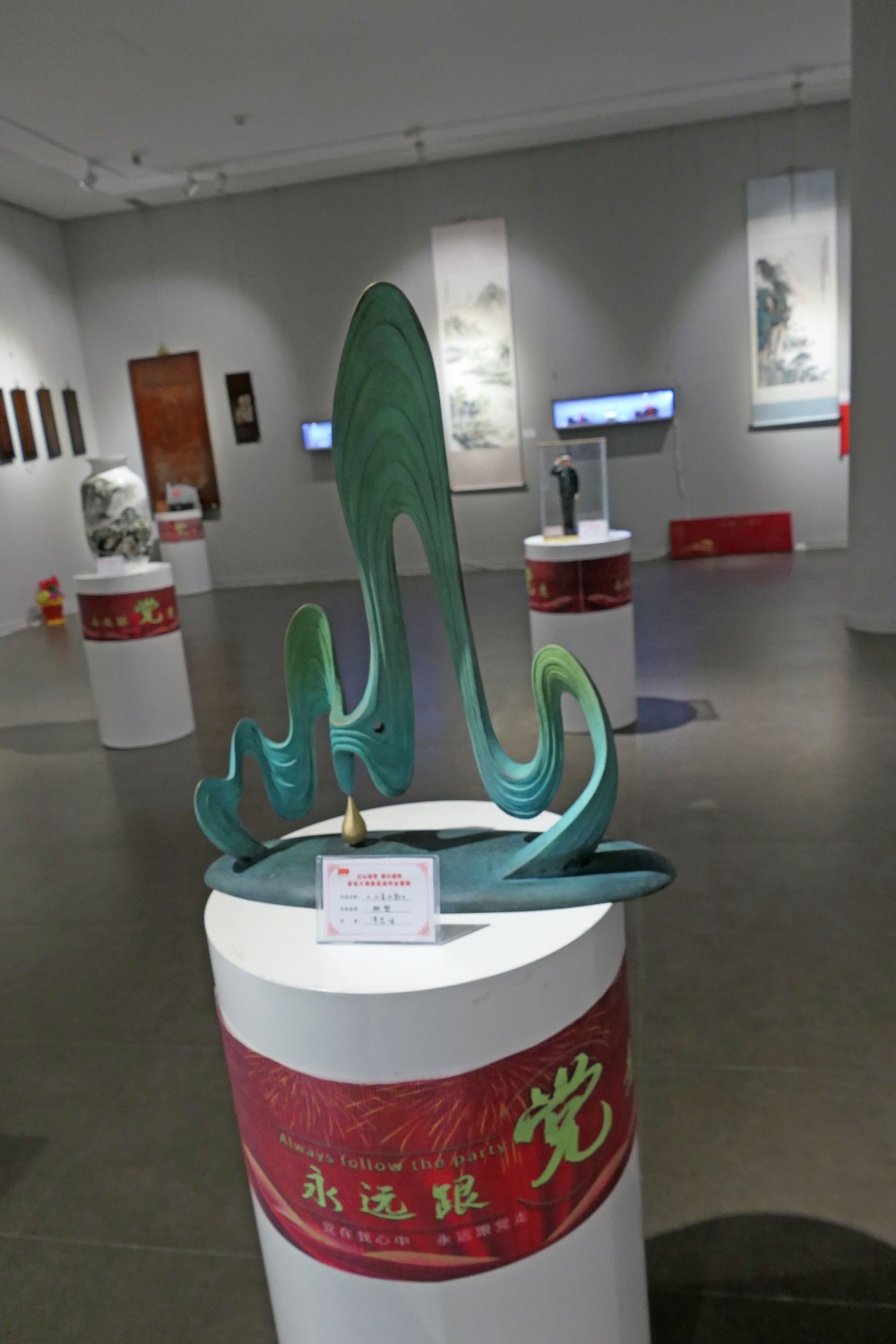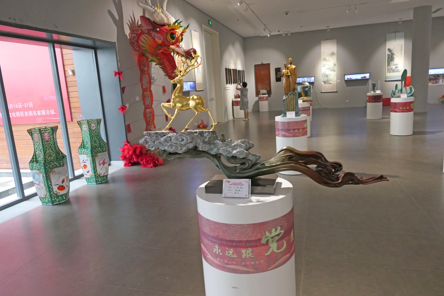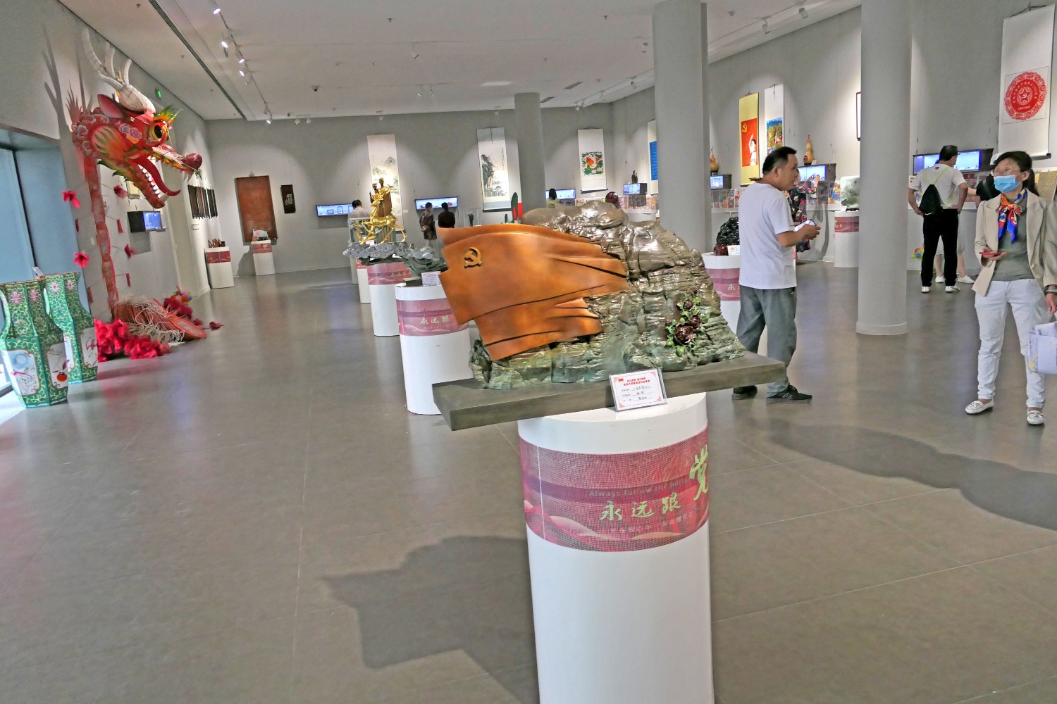 2021年6月16日,“红心向党•薪火相传”庆祝中国共产党成立100周年,百名大师精品创作主题展览,首届红色文化工艺美术精品大赛在十笏园潍坊市美术馆隆重举行。潍坊市技师学院院长丁汉邦,市工业局局长党组书记鞠俊海、调研员杨希春,潍城区委常委宣传部长武法栋,山东省工艺美术学会会长傅绍相,潍坊市工艺美术协会会长丁传信等领导出席开幕式,百余位工美大师精品力作展现,助力工艺美术事业发展。华艺雕塑遴选十余件精品参展,其中傅绍相作品《井冈山会师》荣获此次大赛金奖。