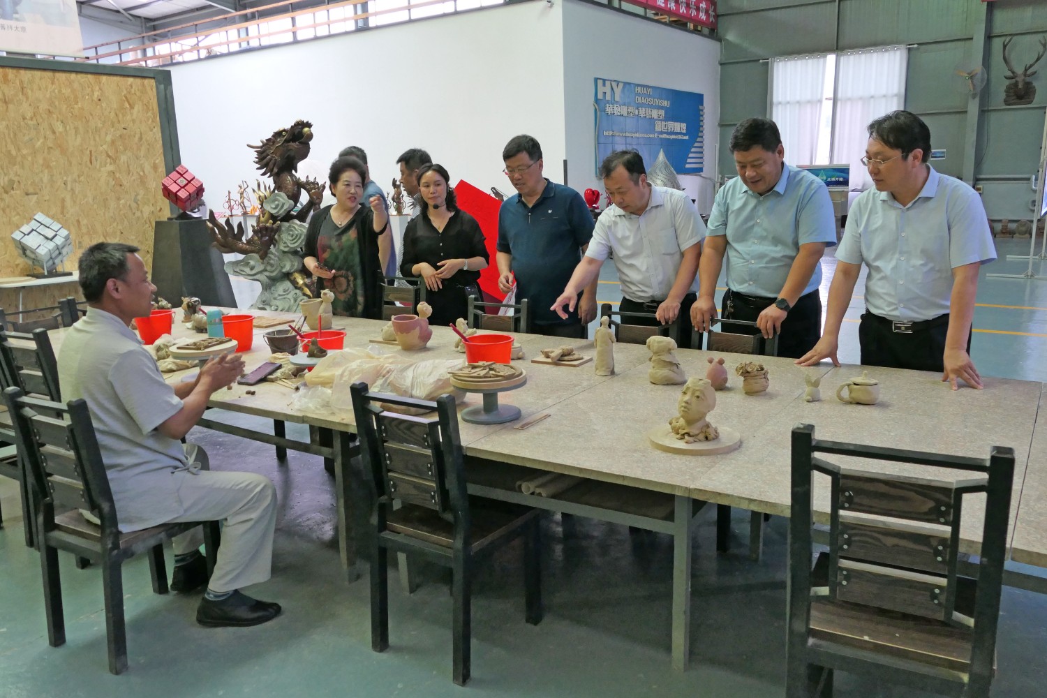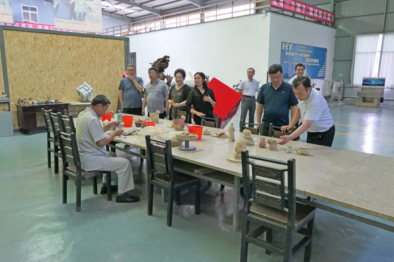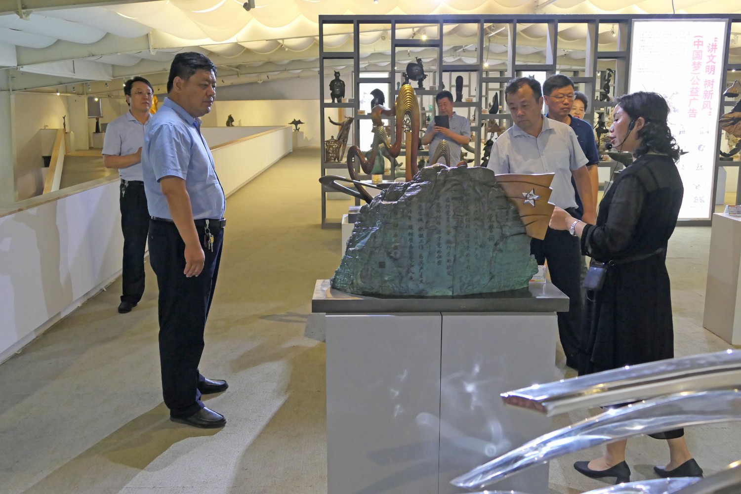 各位领导观看华艺雕塑宣传片