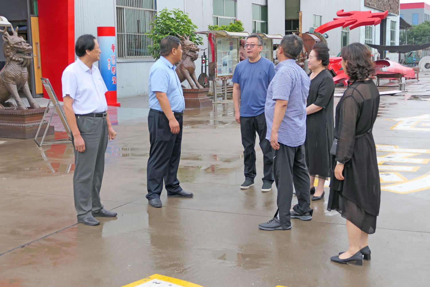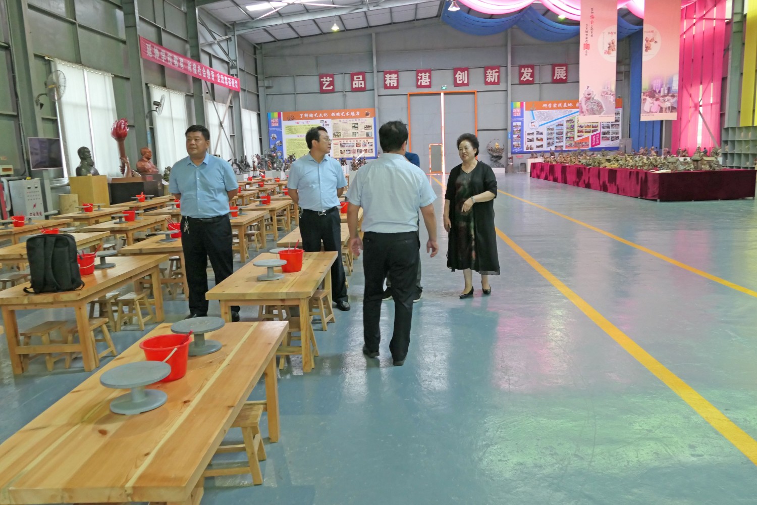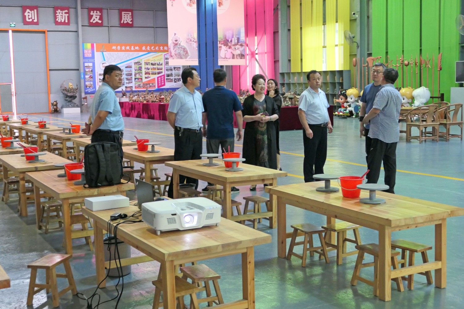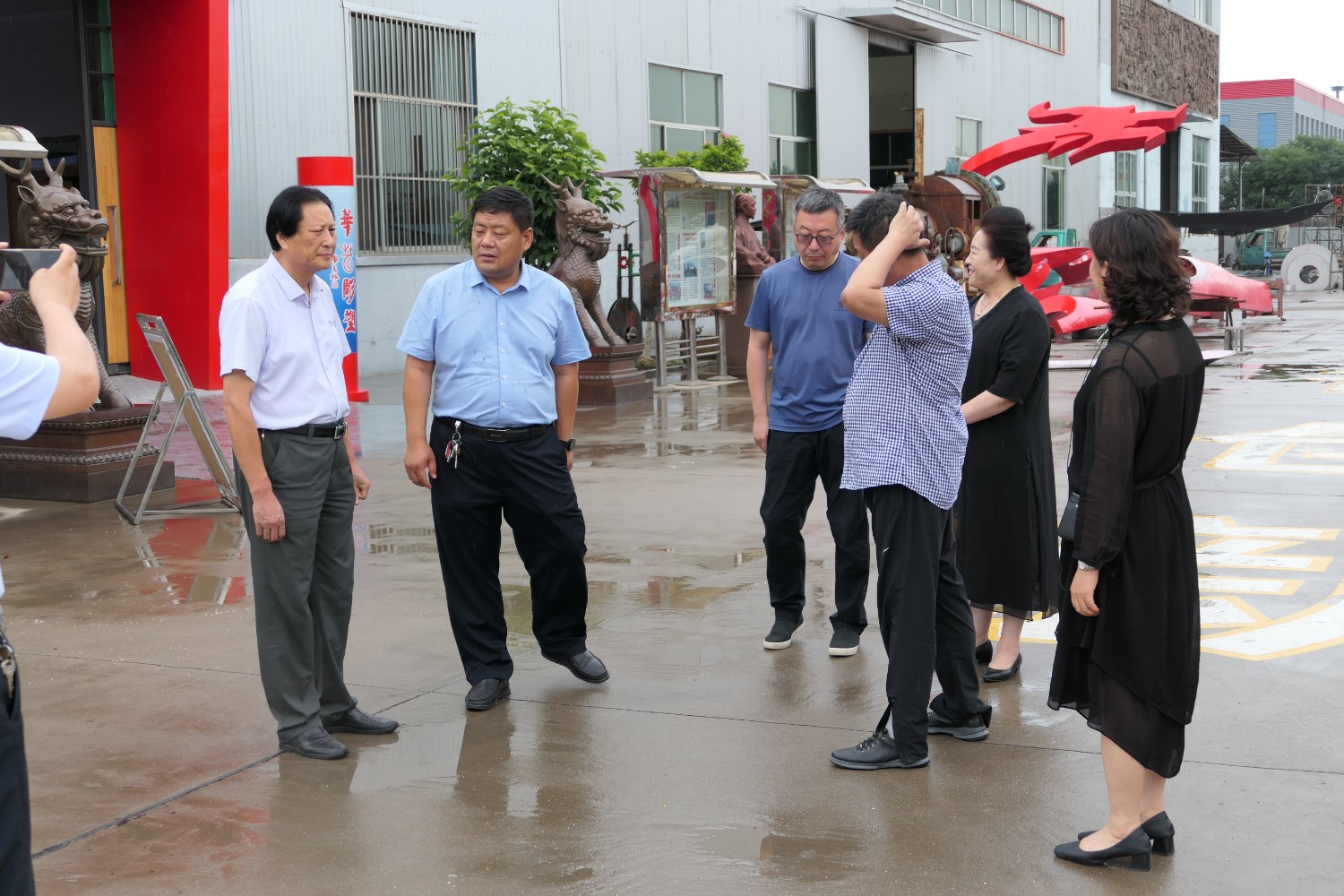各位领导观看华艺雕塑宣传片