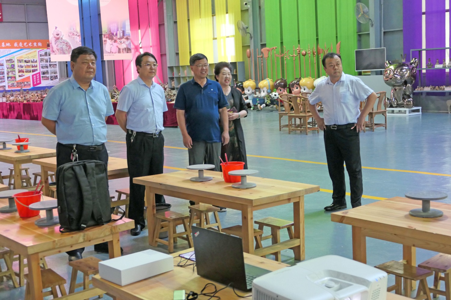 2021年6月30日,山东省教育厅教学实践基地验收团来华艺视察指导,山东教育卫视侯纲主任等,临朐县教育局安局长一行陪同活动。