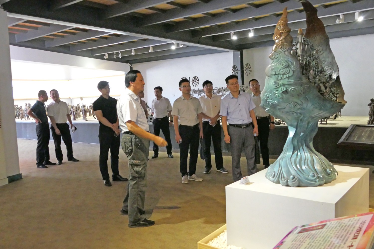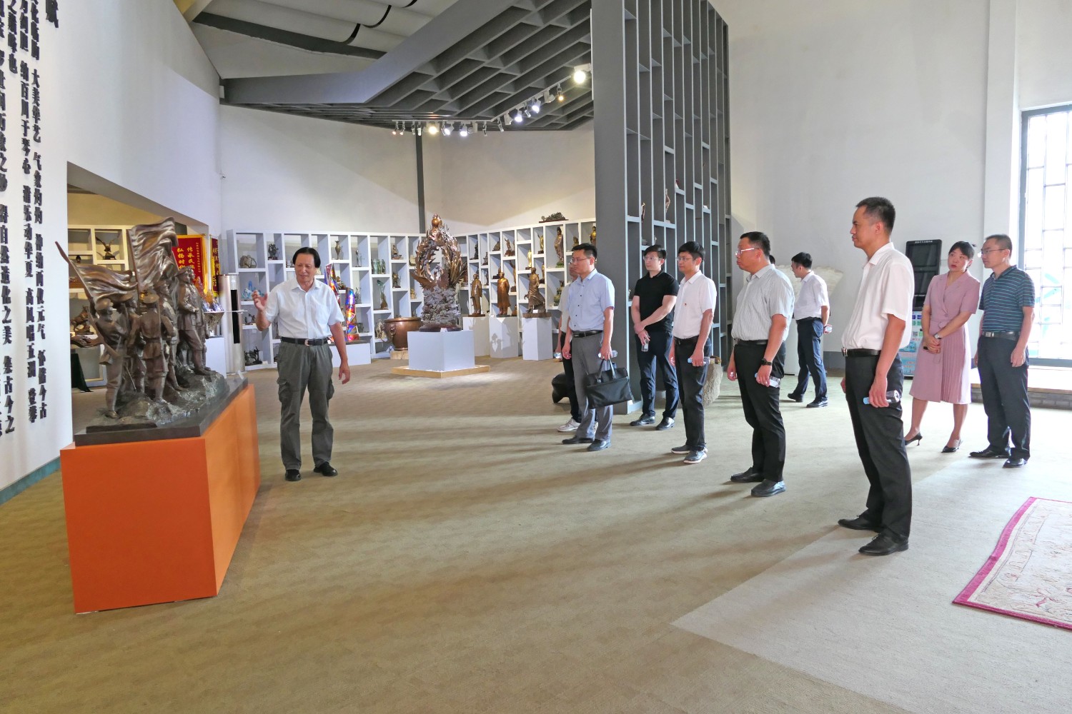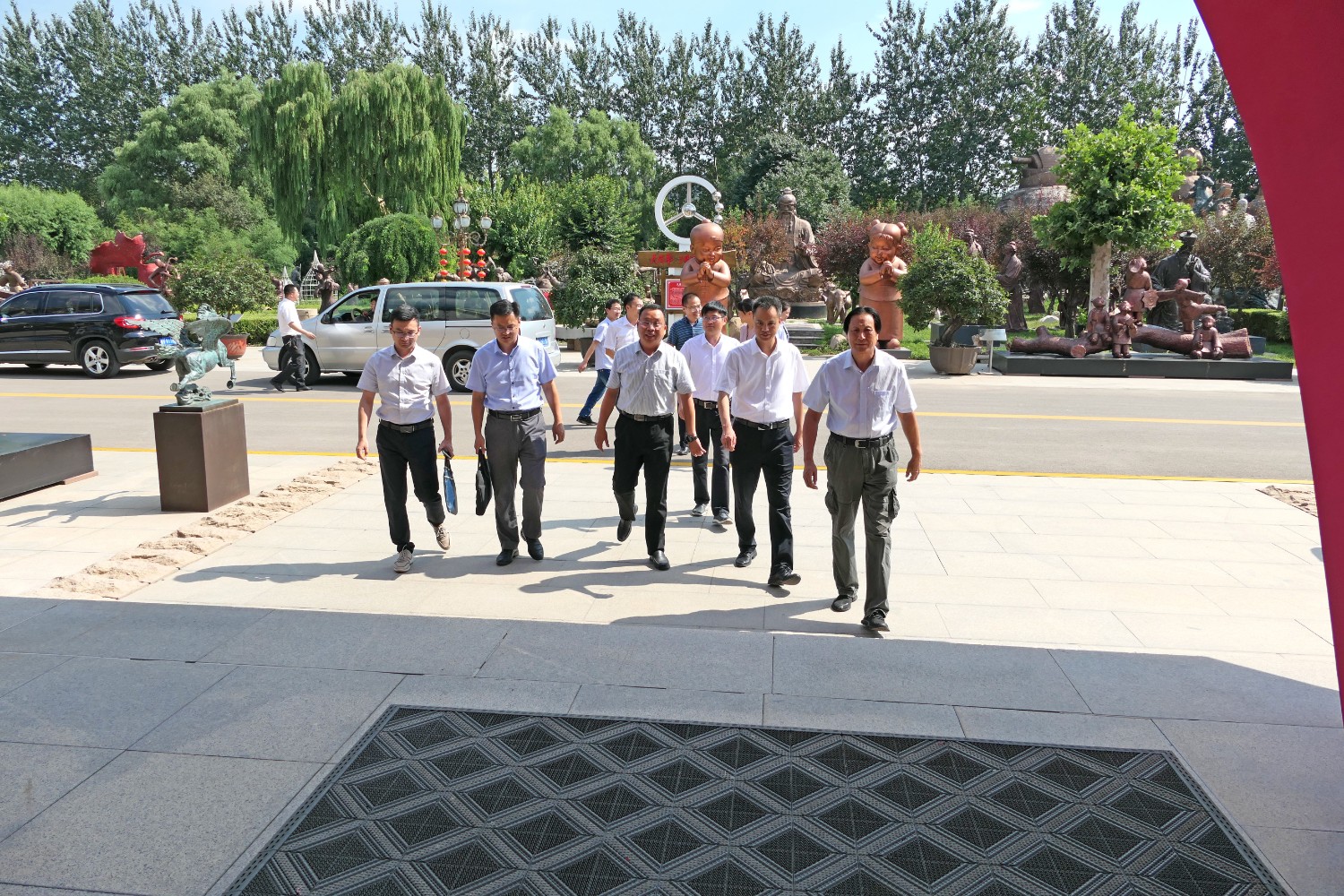 2021年7月24日,潍坊市人才发展集团来临朐考察,市人才发展集团总经理闫志坤,临朐县科技副县长温庆杰,县委组织部副部长卢凯江等领导莅临华艺雕塑参观指导。