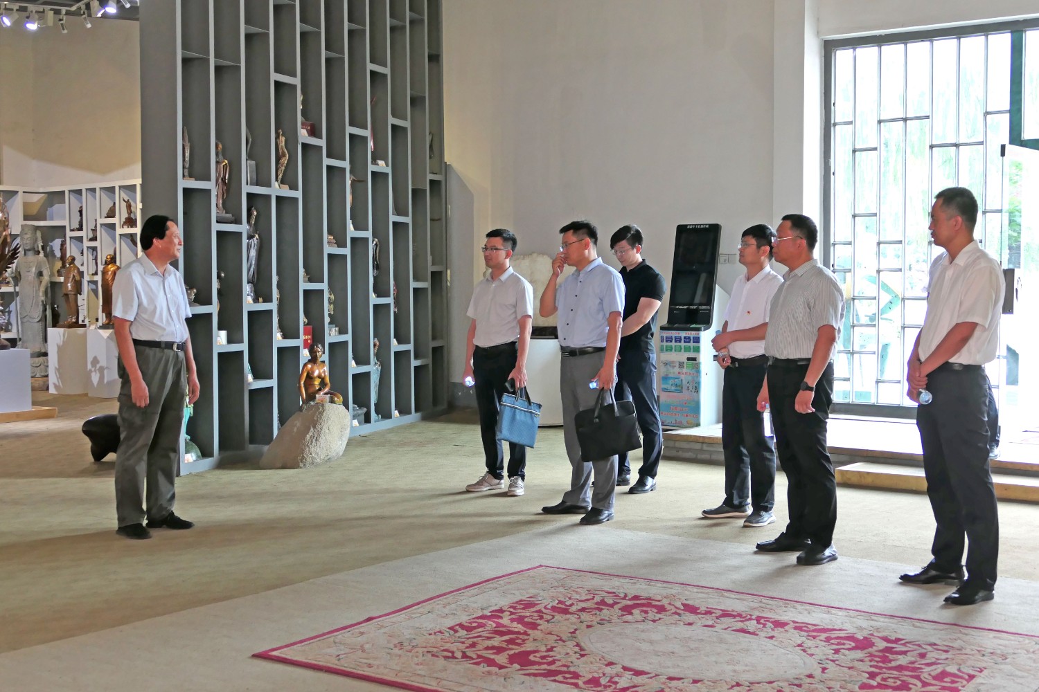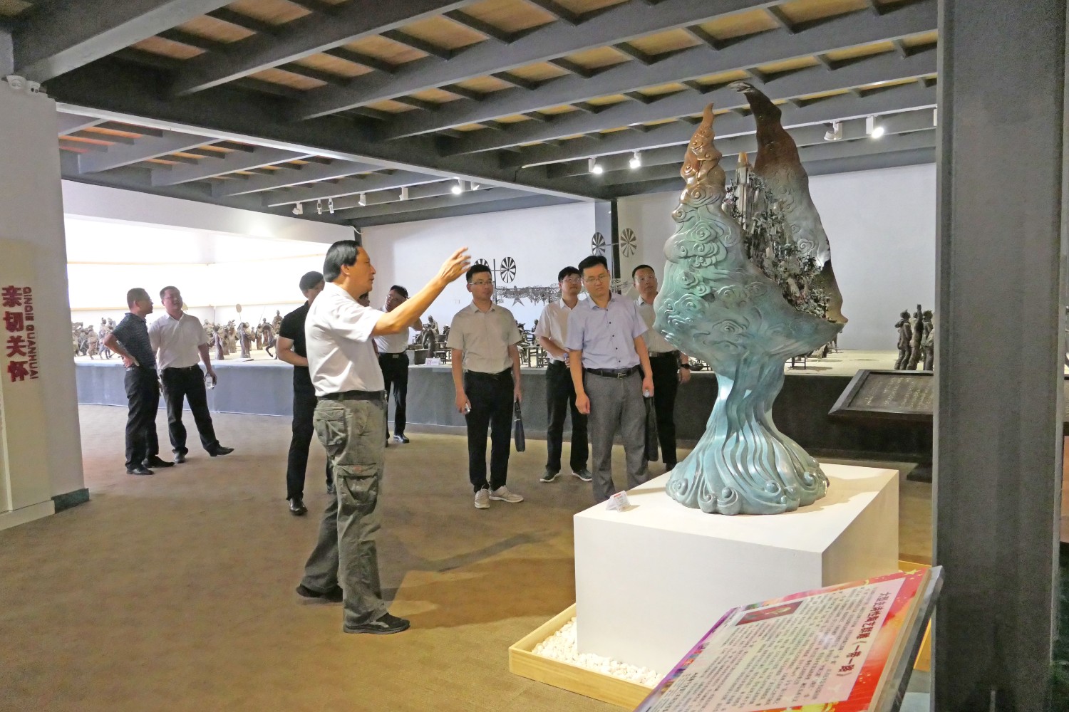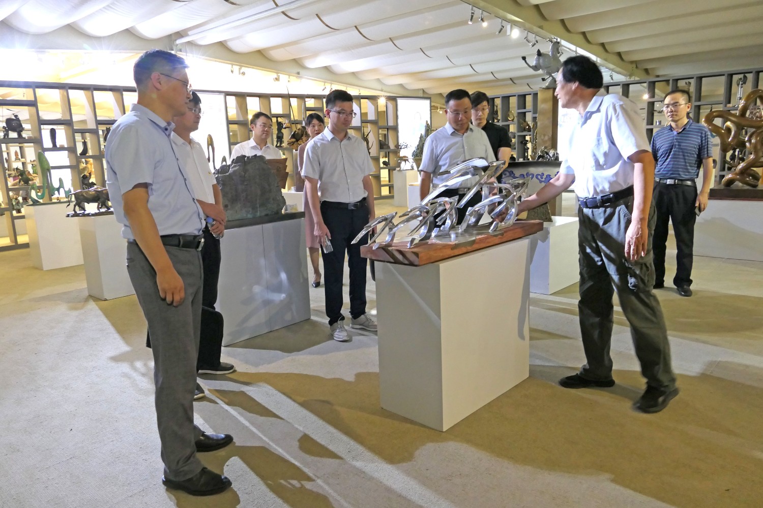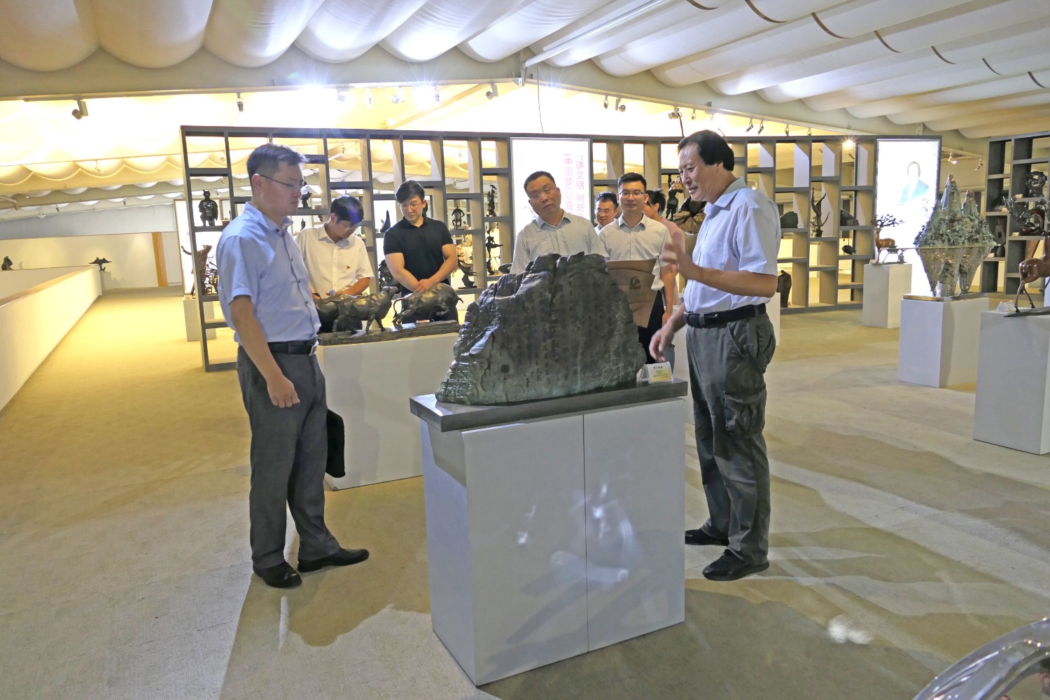 2021年7月24日,潍坊市人才发展集团来临朐考察,市人才发展集团总经理闫志坤,临朐县科技副县长温庆杰,县委组织部副部长卢凯江等领导莅临华艺雕塑参观指导。