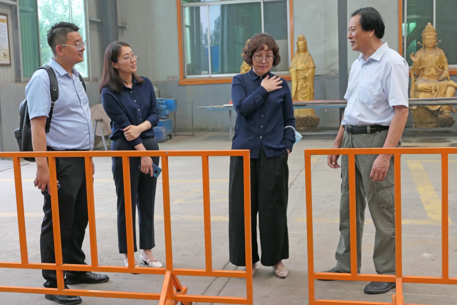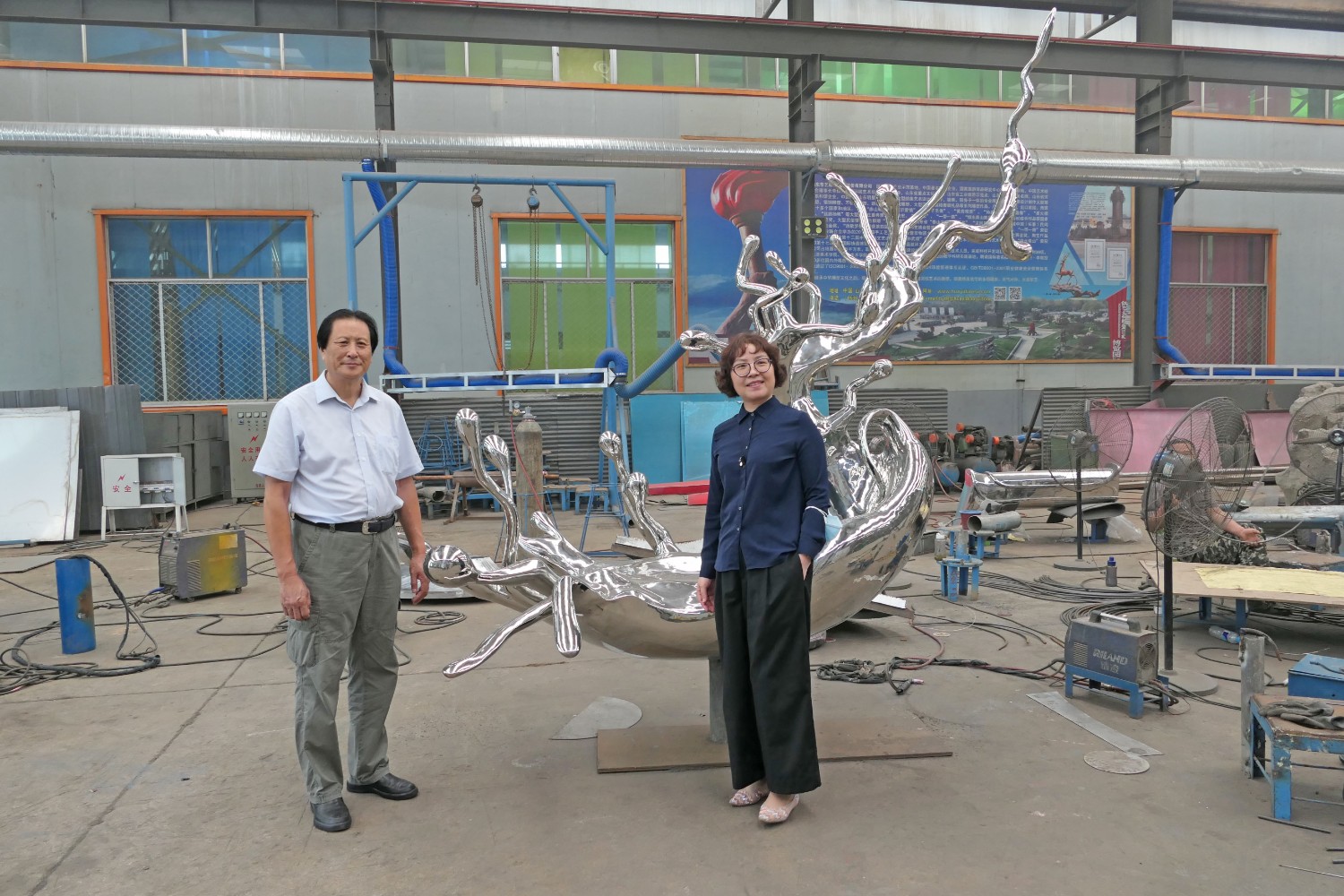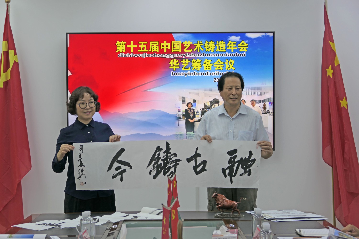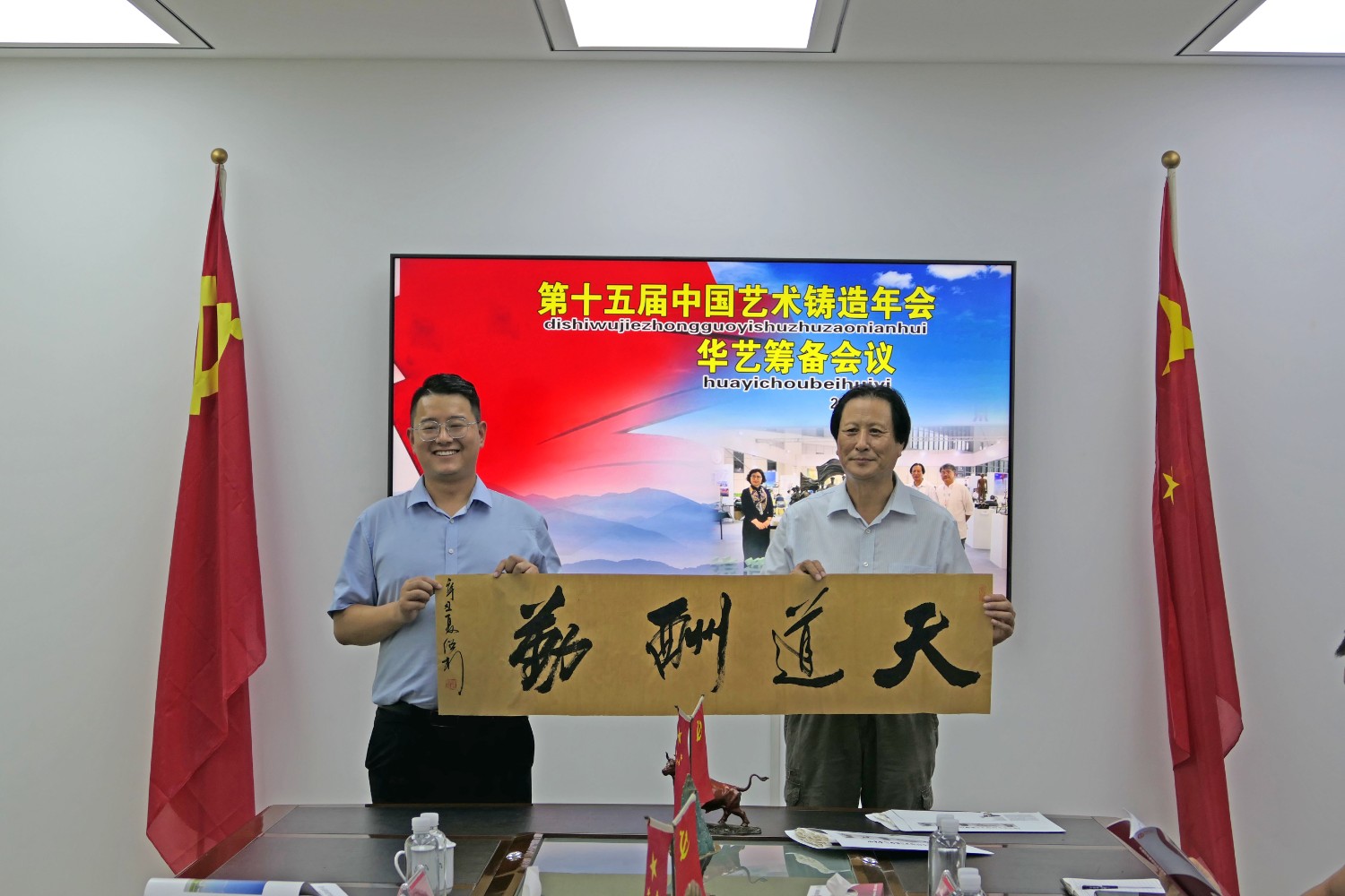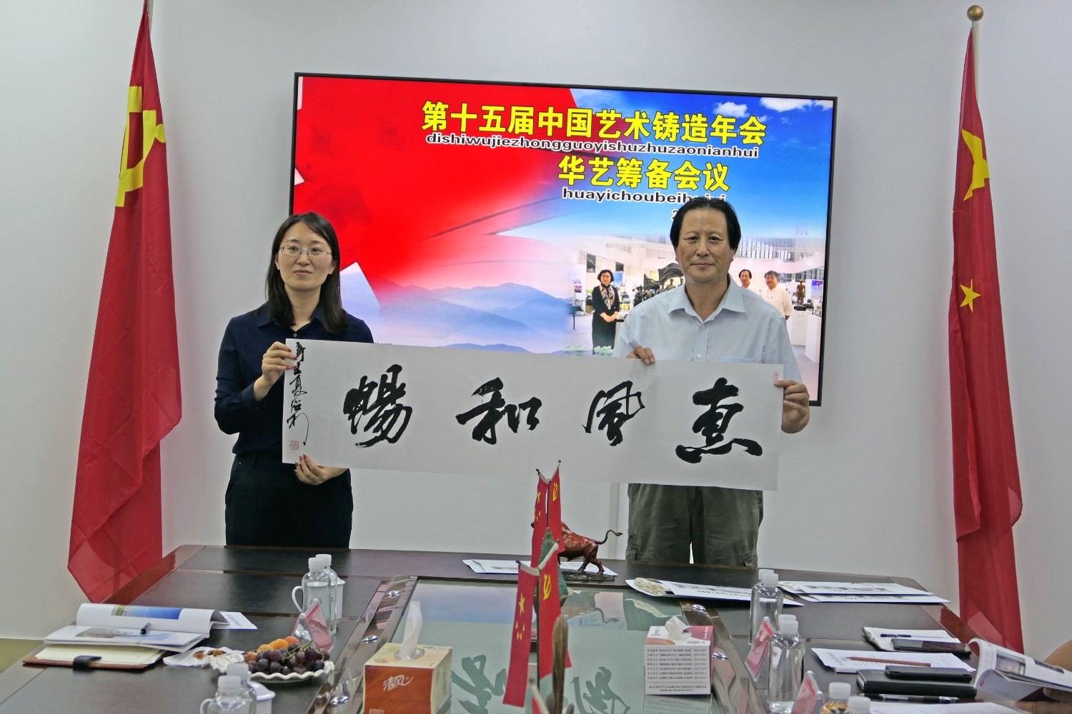 2021年7月28日,中国铸造协会专务,文化传媒部部长,中铸协上海办主任,艺铸分会秘书长袁亚娟,中国铸造协会上海办主任助理杨杨,中国铸造协会国际交流与展览部项目经理陈海阔一行莅临华艺雕塑调研并就“第十五届中国艺术铸造年会筹备会议进行了协商安排。期间专程去潍坊考察富华大酒店会场会务情况及参观机械科学研究总院集团山东省数字化绿色铸造技术与装备创新服务平台。”