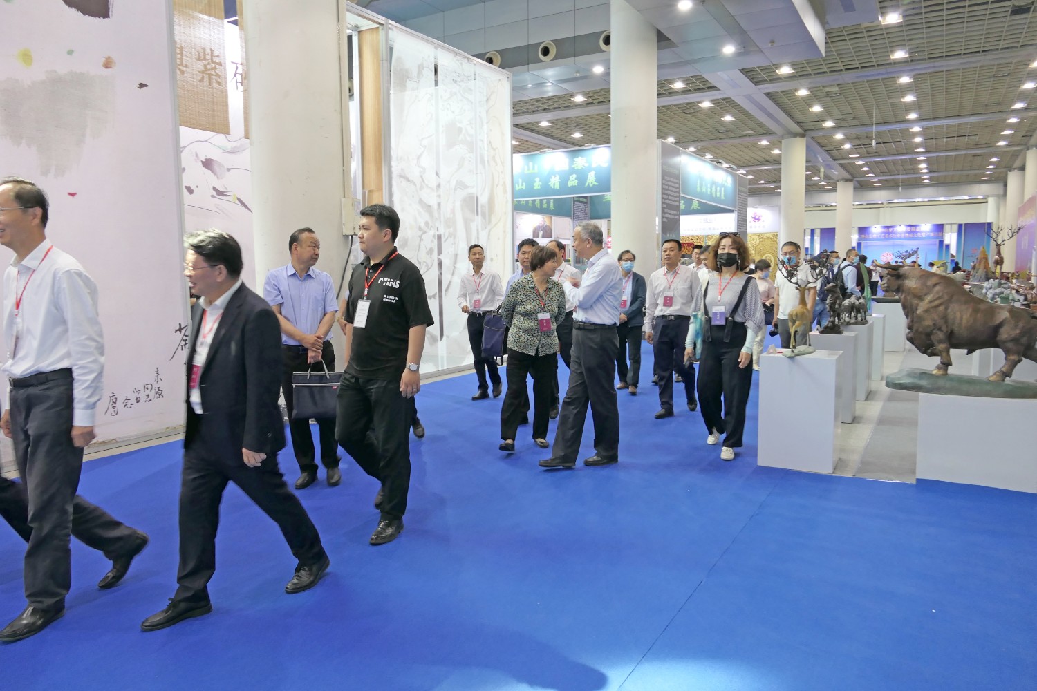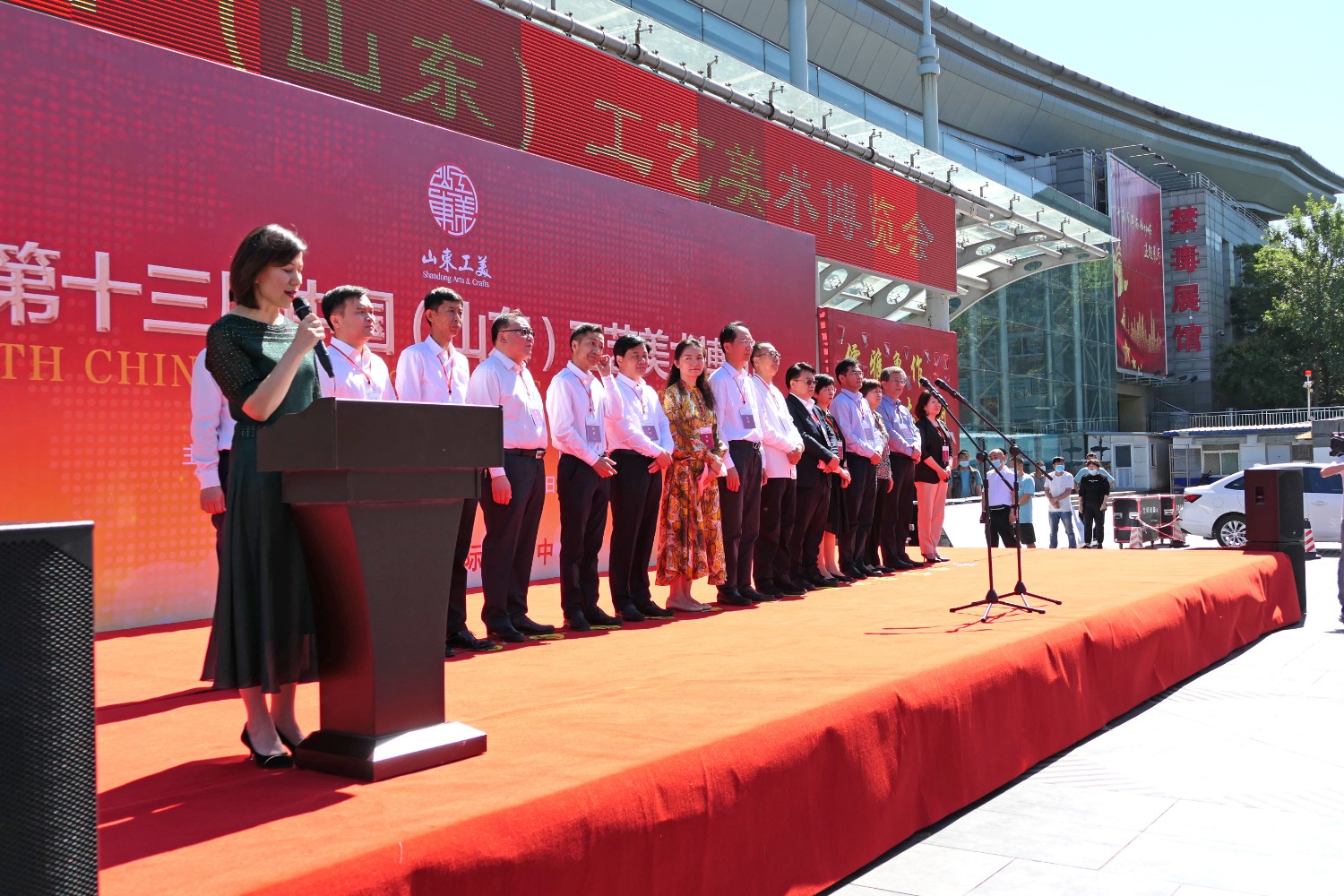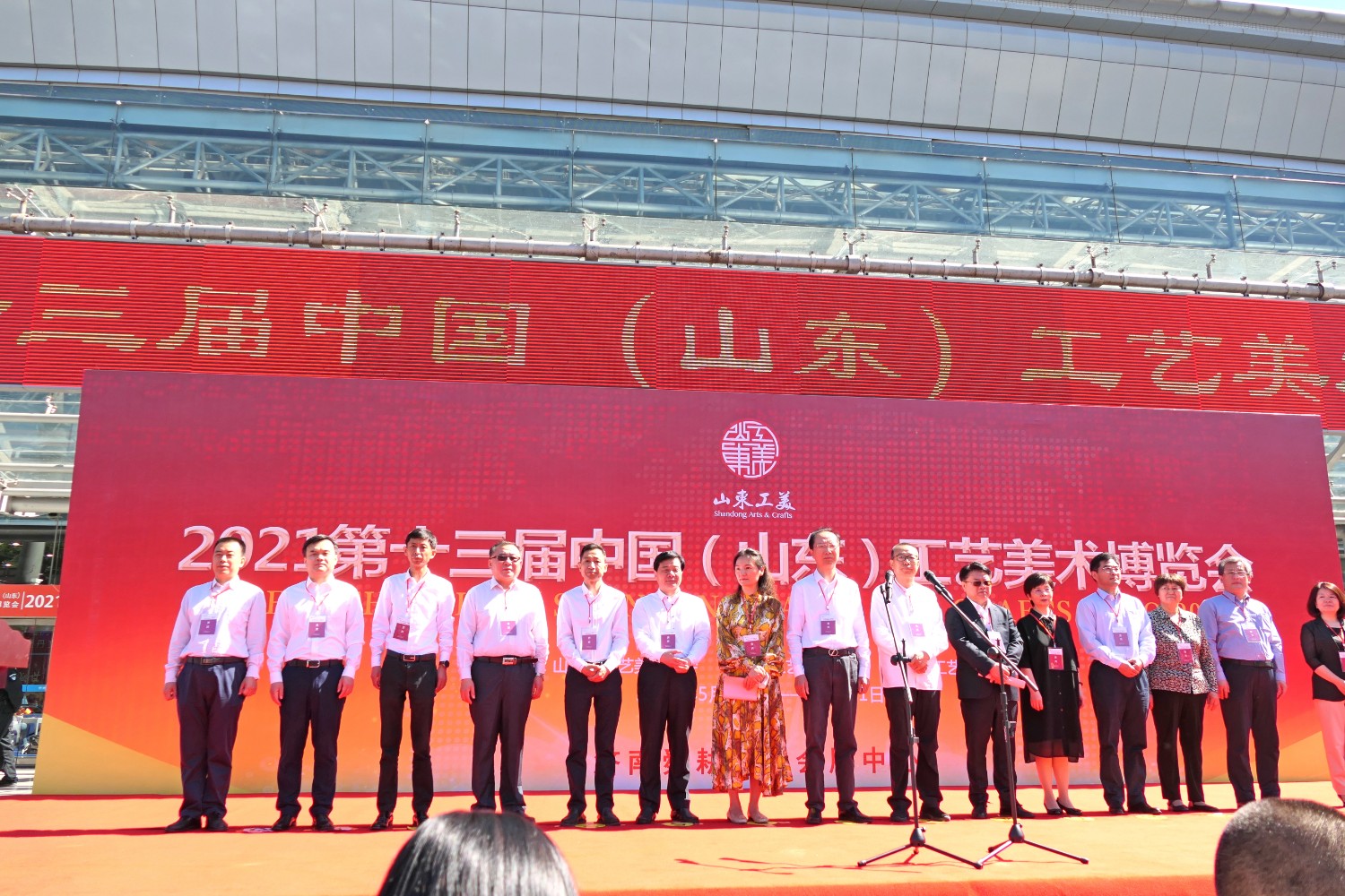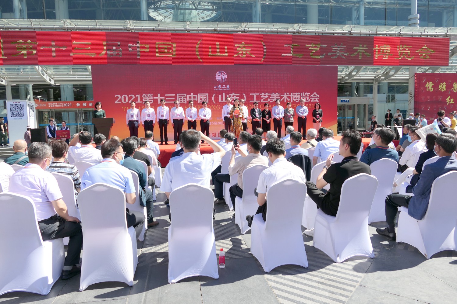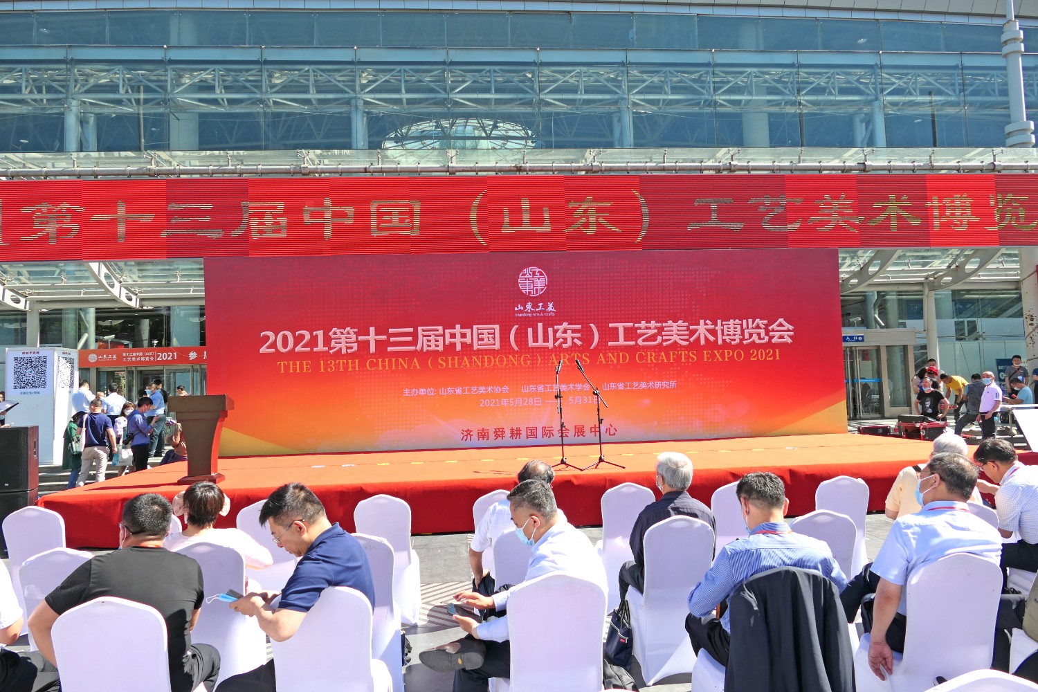 2021-9-42021年是“十四五”开局之年,山东工美又迈出新时代的新步伐,作为山东工艺美术界的年度盛会,2021第十三届中国(山东)工艺美术博览会于5月28日在山东济南舜耕国际会展中心盛大开启。出席本届博览会开幕式的有山东省政协党组成员、副主席韩金峰,中国文联副主席、山东省文联主席、山东工艺美术学院院长潘鲁生,中国工艺美术协会秘书长孙烨,山东省工业和信息化厅二级巡视员张忠军,山东省轻工联社党组书记、理事会主任王哲军,山东省文联党组成员、副主席姜慧,山东省社会主义学院党组成员、副院长孙黎海等领导,开幕式由山东省工艺美术协会会长袁敏主持。