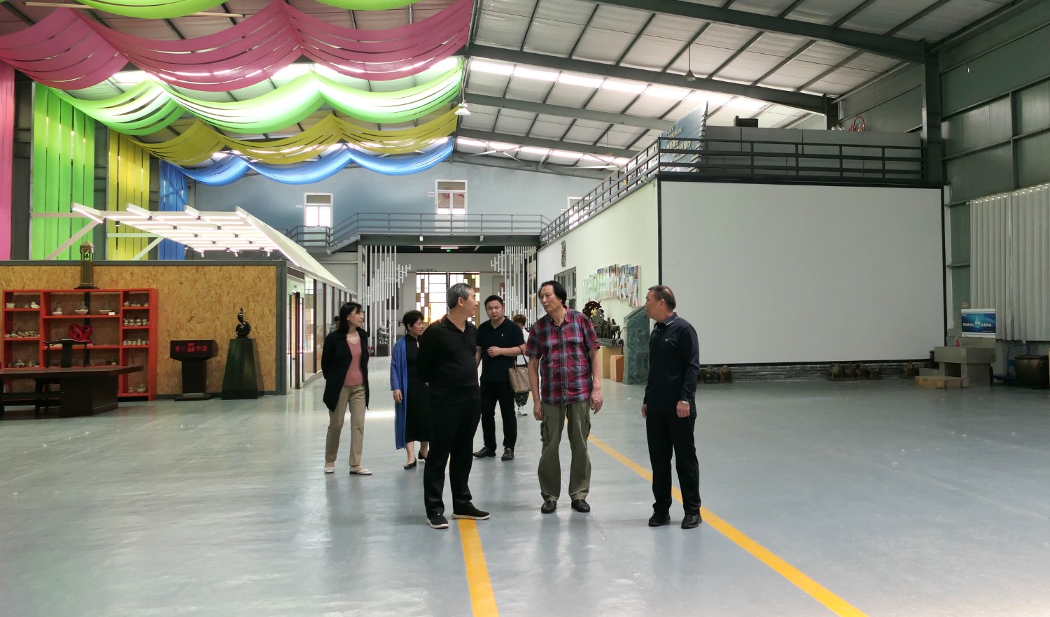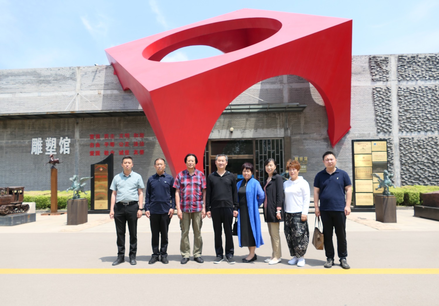 2023年5月19日,潍坊市滨海区管委会一级专员李树森,高密朋友贺永东总经理等嘉宾,莅临华艺雕塑参观指导,傅绍相介绍雕塑艺术。