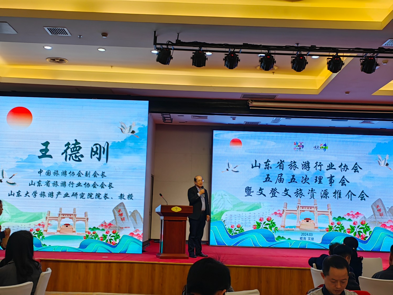 2024-4-32024年3月15日,山东省旅游行业协会五届五次理事会暨2024精品旅游大讲堂在威海市文登区天沐温泉度假区隆重召开。威海市文化和旅游局党组成员、副局长金连芳,威海市文登区人民政府党组成员、副区长顾甜甜,威海市文登区文化和旅游局党组书记、局长于海清等领导嘉宾出席会议,到会祝贺。山东省旅游行业协会会长王德刚,副会长吴凯、姜文一、王美香、宋其涛、张善久、邱家刚、谢英民、周辰、邓文军,监事孙平,各市旅游协会和各专业分会负责人,以及常务理事、理事、监事、获奖单位代表和个人、有关合作单位和媒体记者等200余人参加了会议。会议由山东省文化和旅游厅社会组织党委委员、省旅游行业协会副会长兼秘书长尚玉轩主持。