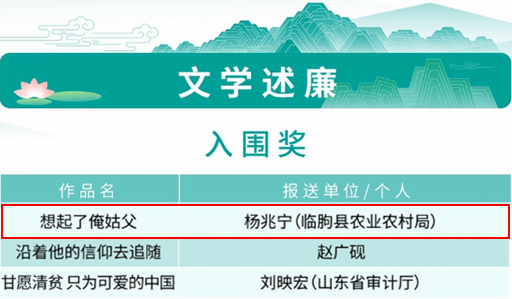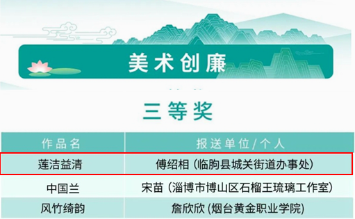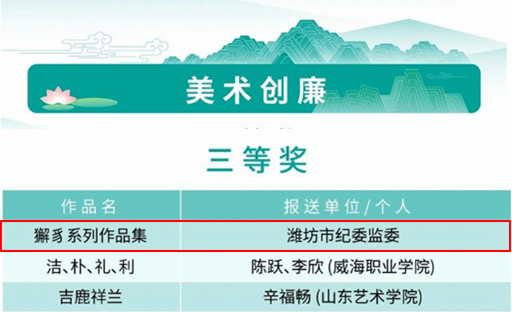 2025-9-197月3日,第二届“青未了”杯廉洁文化优秀作品展示展演活动在济南高新区文化中心成功举办。活动现场公布了“光影映廉、戏剧唱廉、美术创廉、文学述廉”四个门类获奖作品名单,我县报送的4部作品入围获奖。其中,短视频《一封家书》作为“潍有廉家宝”系列视频之一获光影映廉类二等奖,铜雕《莲洁益清》获美术创廉类三等奖,铜雕《獬豸》作为“獬豸”系列作品集之一获美术创廉类三等奖,散文《想起了俺姑父》获文学述廉类入围奖。
