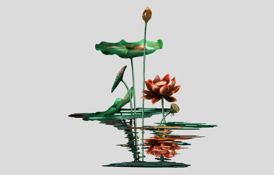 作品设计灵感来源于莲花,“出淤泥而不染,濯清涟而不妖”是莲花的特性,成为廉洁的象征。作品以盛开的莲花、亭亭玉立的莲蕾、生机盎然的莲叶、波光粼粼的水纹以及水中莲花倒影,进行疏密得当错落有致的有机融合,形成意境丰富、灵韵生动的自然艺术造型。莲花别称青莲,青莲与“清廉”谐音,莲花中通外直,不蔓不枝,谓之花之君子。寓意“为官清正、一身正气、圣洁清远”的高尚品质。