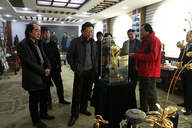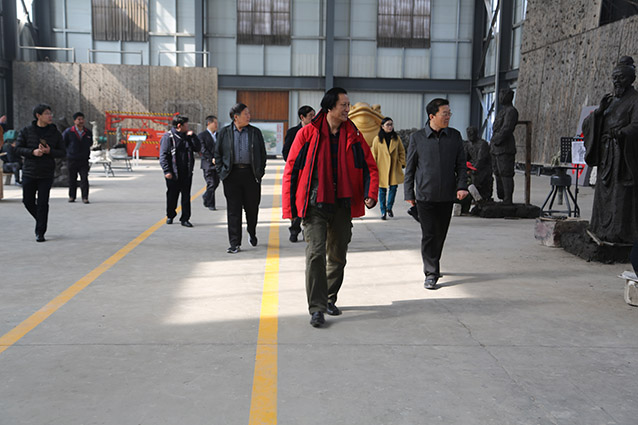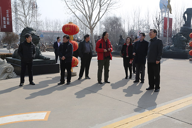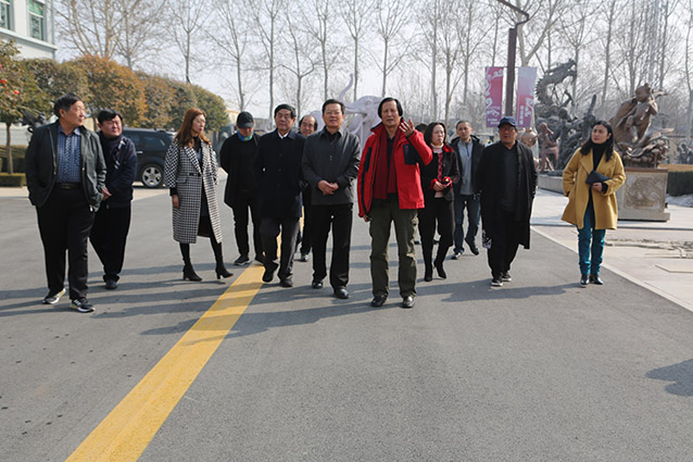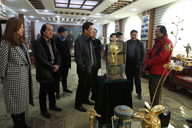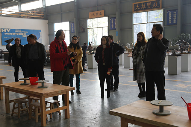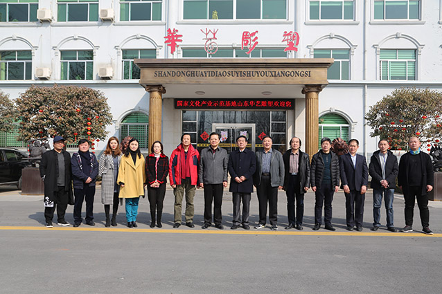2019年2月24日,淄博市轻工纺织行业协会赵鹏会长一行在潍坊市工艺美术协会卜范增会长、丁传信秘书长陪同下来华艺参观指导。傅绍相董事长向嘉宾介绍了雕塑艺术,并与淄博文化产业达成战略合作协议。