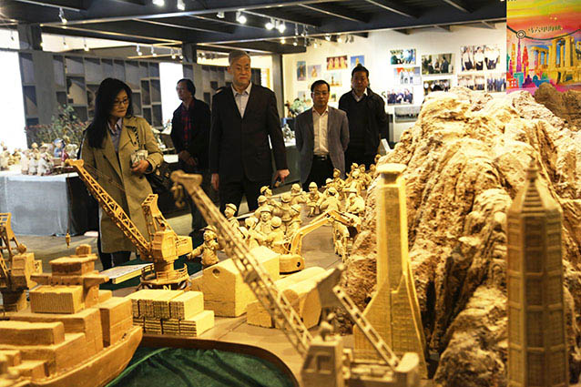 2019年4月3日,潍坊滨海教育实训集团秦春雨一行来华艺雕塑参观指导。