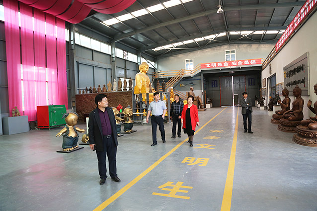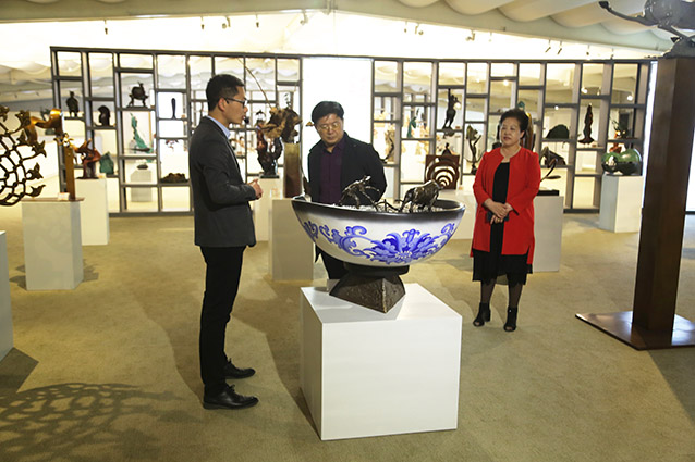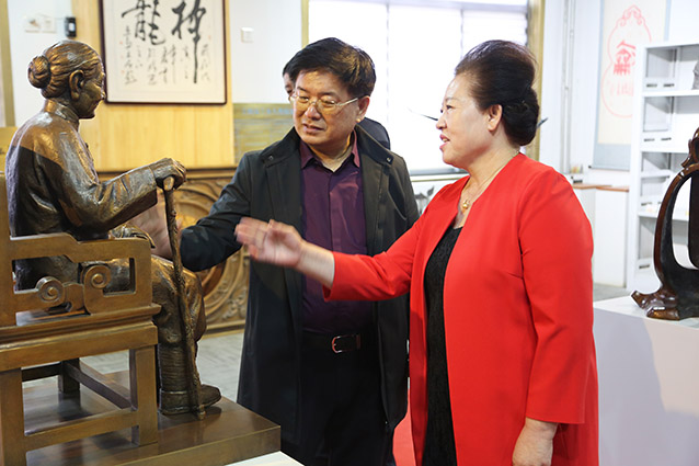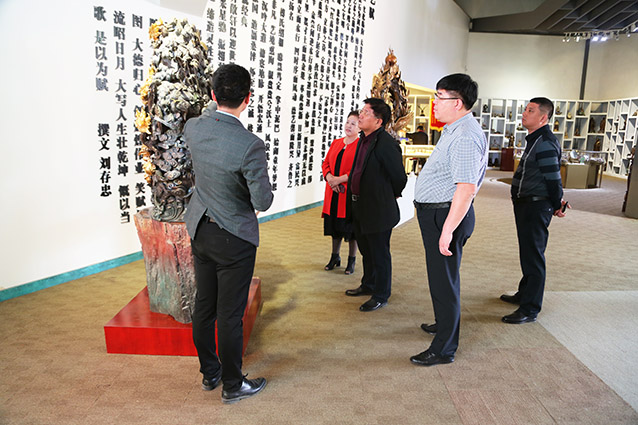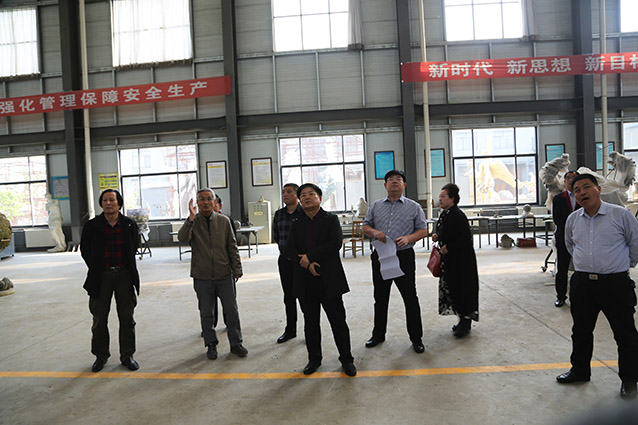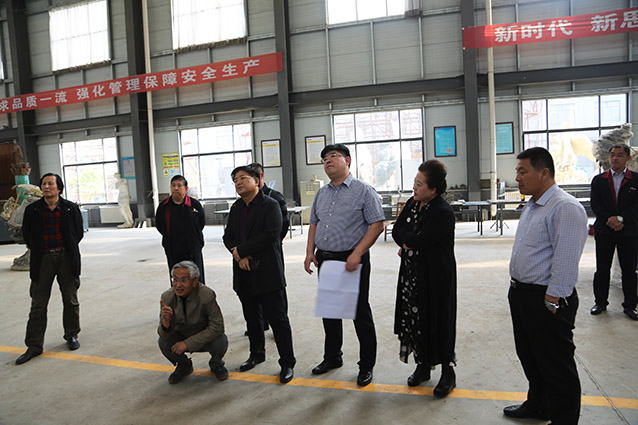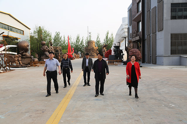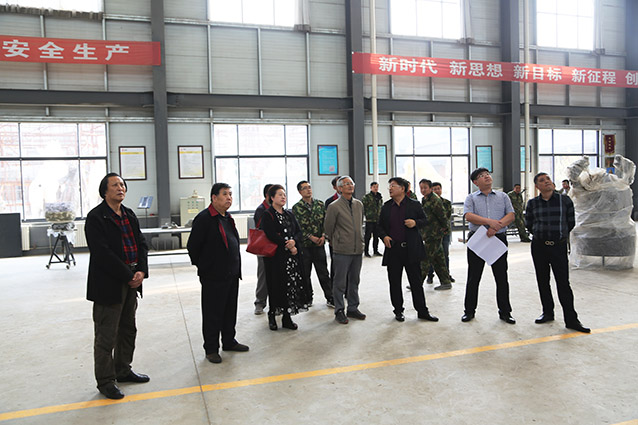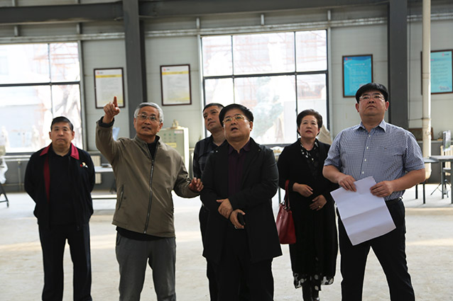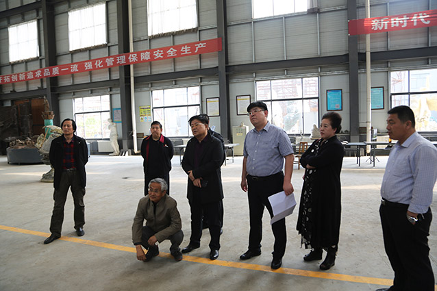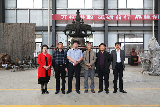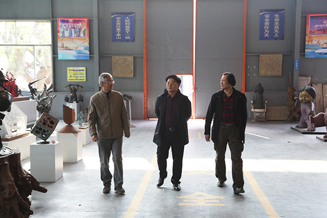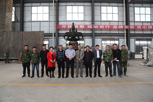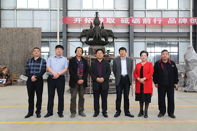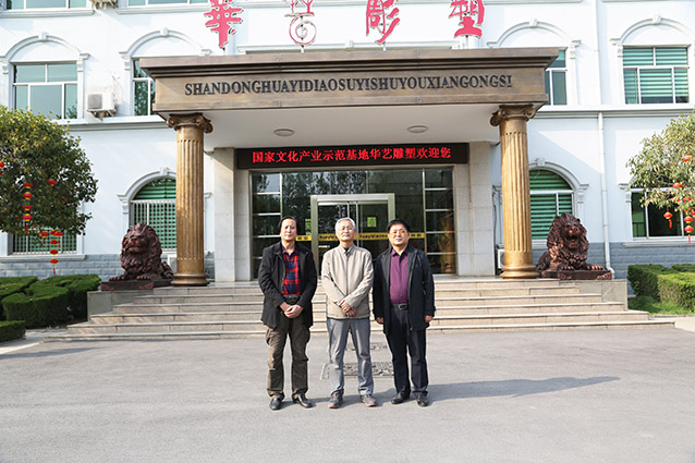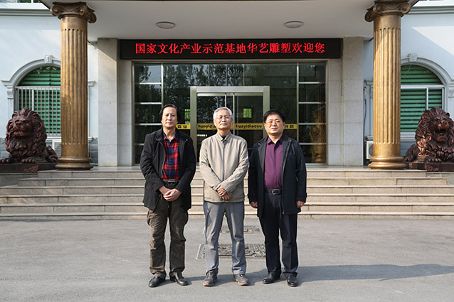 2019年4月19日、威海赤山集团王善强书记、副总经理郭健等领导一行来华艺洽谈业务及泥塑造型审稿。雕塑家李友生教授一同参加审稿活动。