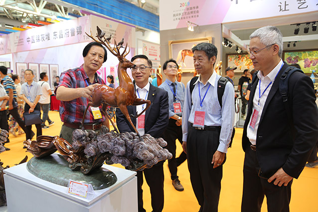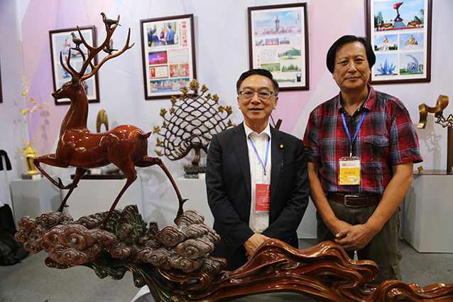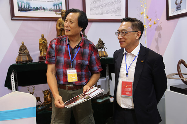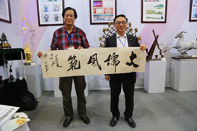 2019年9月1日,第25届鲁台经贸洽谈会暨海峡两岸博览会在潍坊市鲁台会展中心隆重举行,华艺雕塑遴选50余件雕塑精品参加展览。傅绍相董事长与高雄市立法委陈宣民委员及中华企业交流协会赵益宏理事长交流雕塑艺术。傅绍相向陈宣民先生赠送书法作品《大儒风范》,精美的雕塑作品得到了台湾客人的一致赞誉