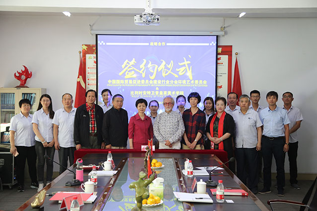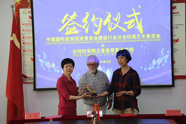 2019年9月23日,中国国际贸促会建设行业分会环境艺术委员会秘书长李霞教授与比利时安特卫普皇家美术学院院长巴特·艾克曼斯教授在华艺雕塑会议室举行了战略合作签约仪式。出席仪式的嘉宾有比利时雕塑家闫淑芬教授、北京建谊高能建筑设计研究院有限公司李威总经理,华艺雕塑董事长傅绍相、华艺雕塑总经理谭宏伟及华艺雕塑管理人员近20余人。签约仪式上双方互赠纪念礼品并在热烈友好的气氛中合影留念。