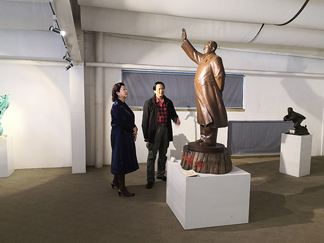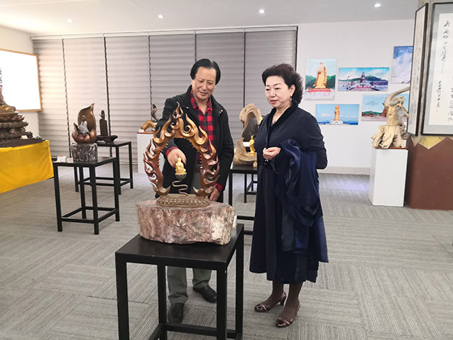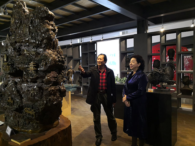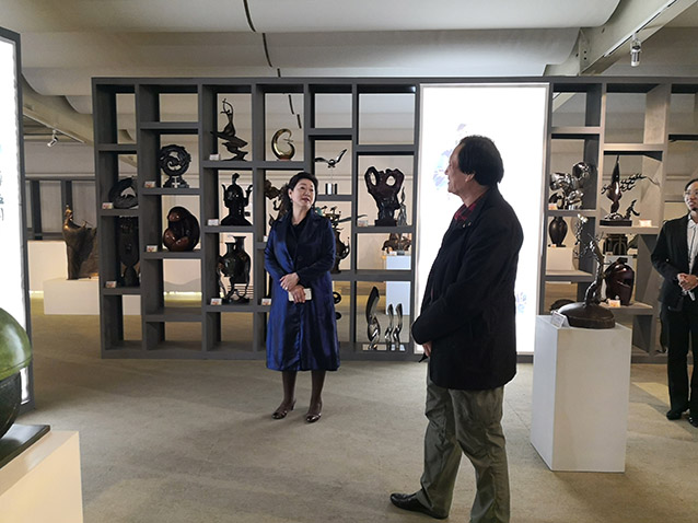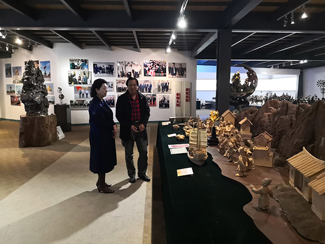 2019年10月23日,博山金祥琉璃有限公司袁总、山东陶瓷学院院长耿大海、中国工艺美术大师王孝诚、雕塑家李友生教授、雕塑家李霁教授,在华艺交流雕塑艺术