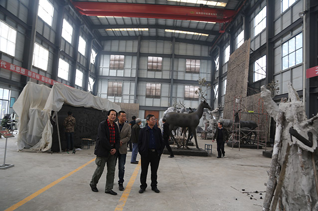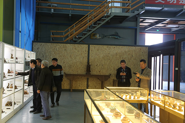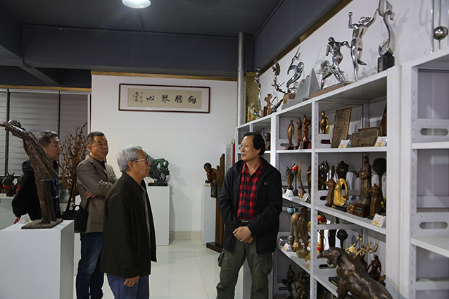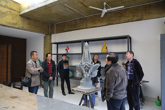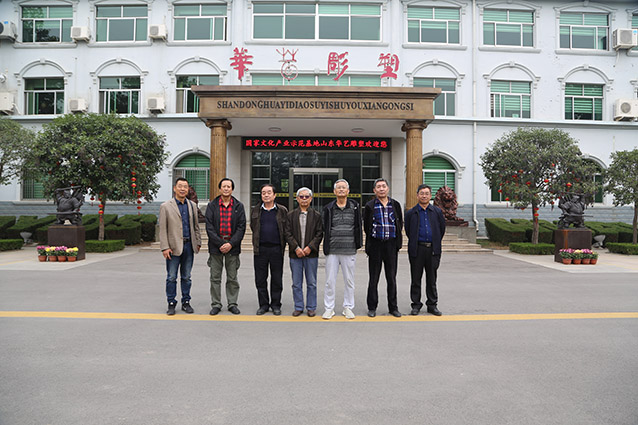 2019年10月23日,博山金祥琉璃有限公司袁总、山东陶瓷学院院长耿大海、中国工艺美术大师王孝诚、雕塑家李友生教授、雕塑家李霁教授,在华艺交流雕塑艺术