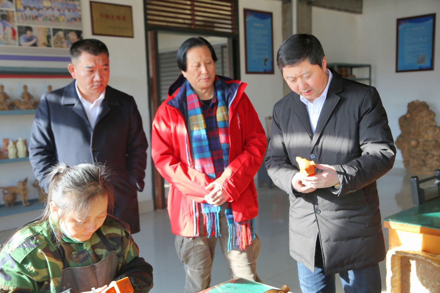 2020年1月9日,潍坊恒信集团副总裁韩宝晶、恒信临朐地产总经理赵忠利一行来华艺雕塑参观指导,并洽谈合作事宜。