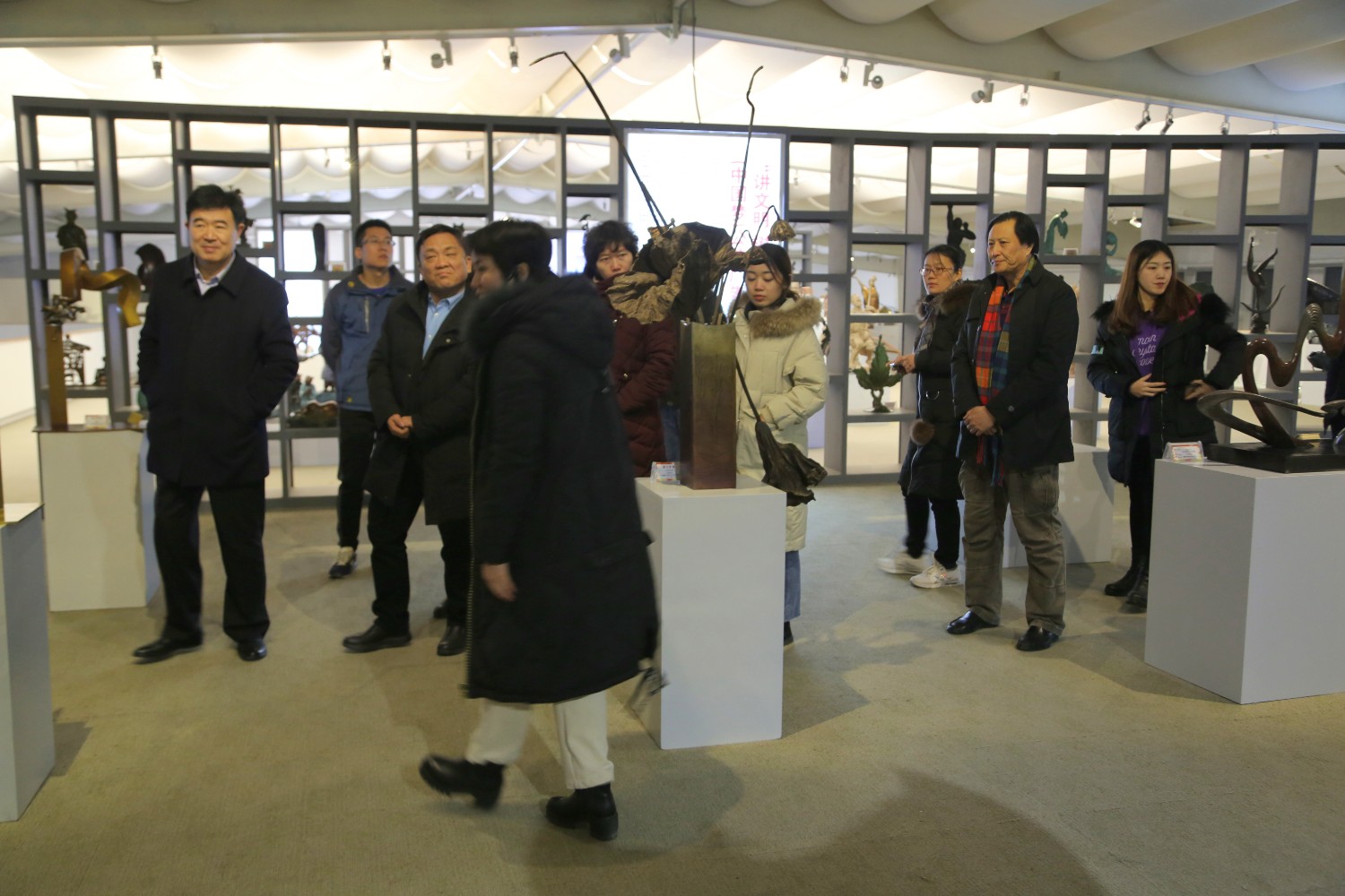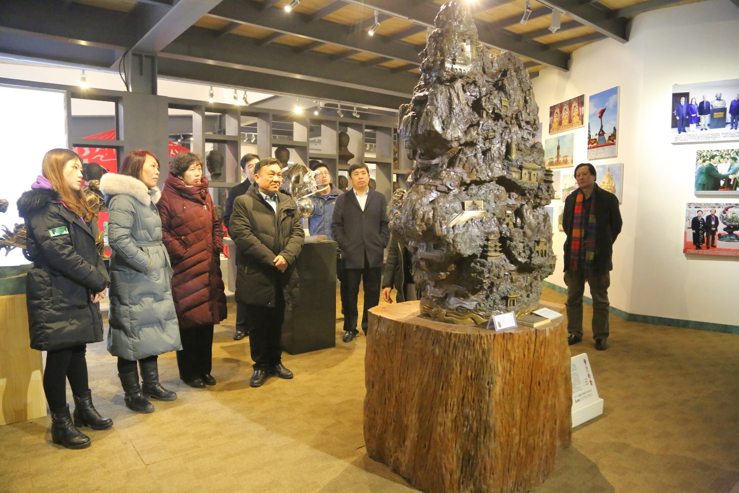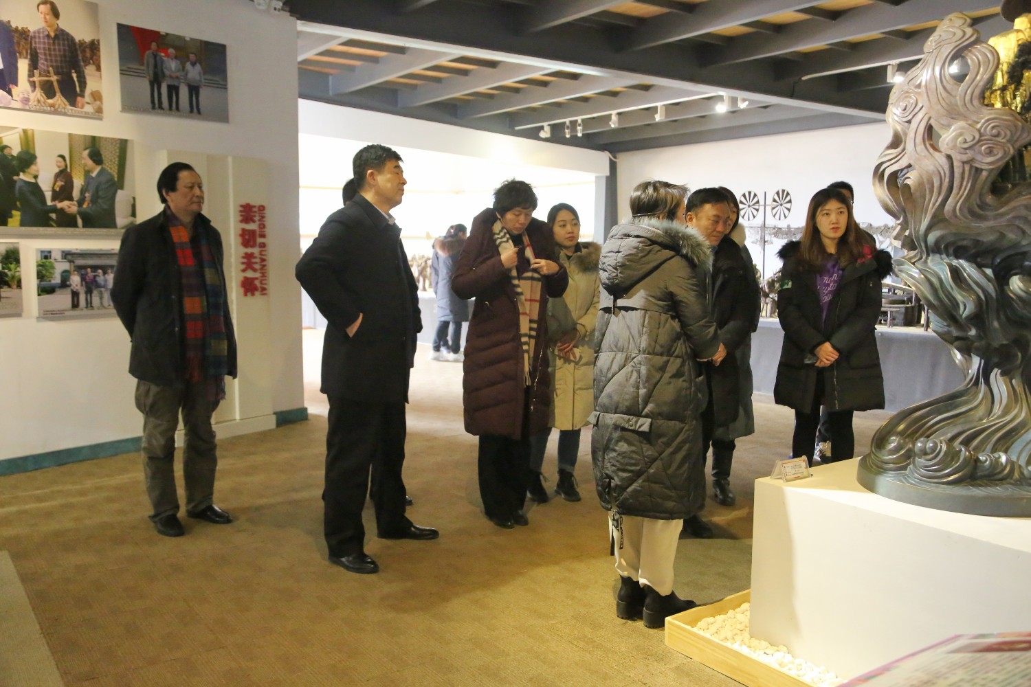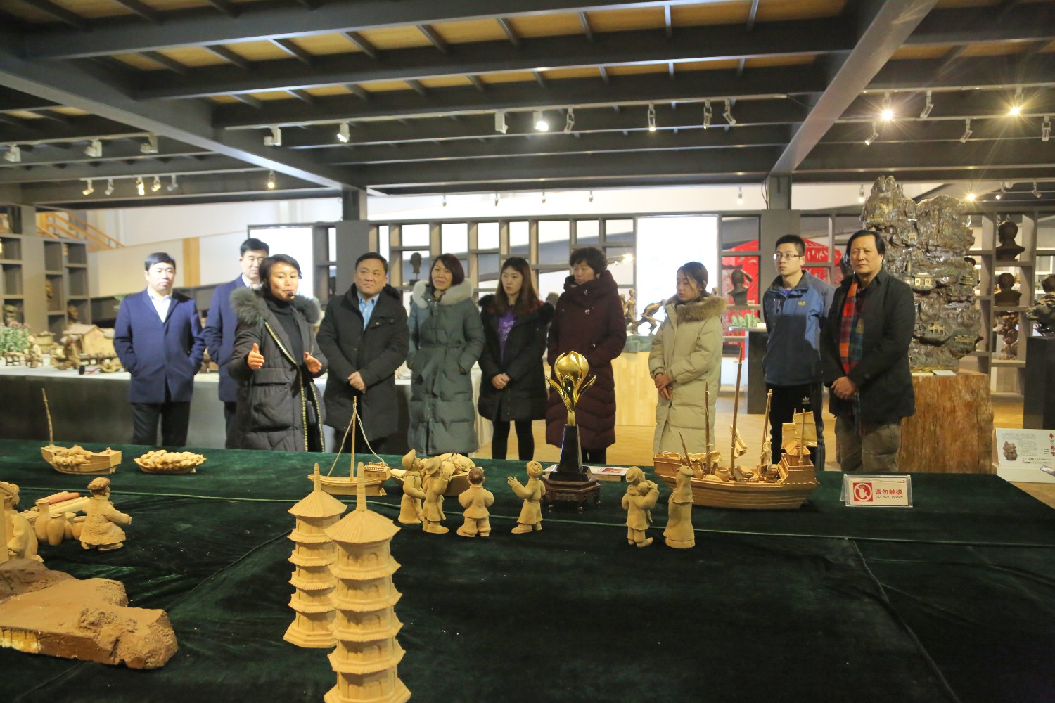 2020年1月17日,沈明新副县长陪同客人来华艺雕塑参观。