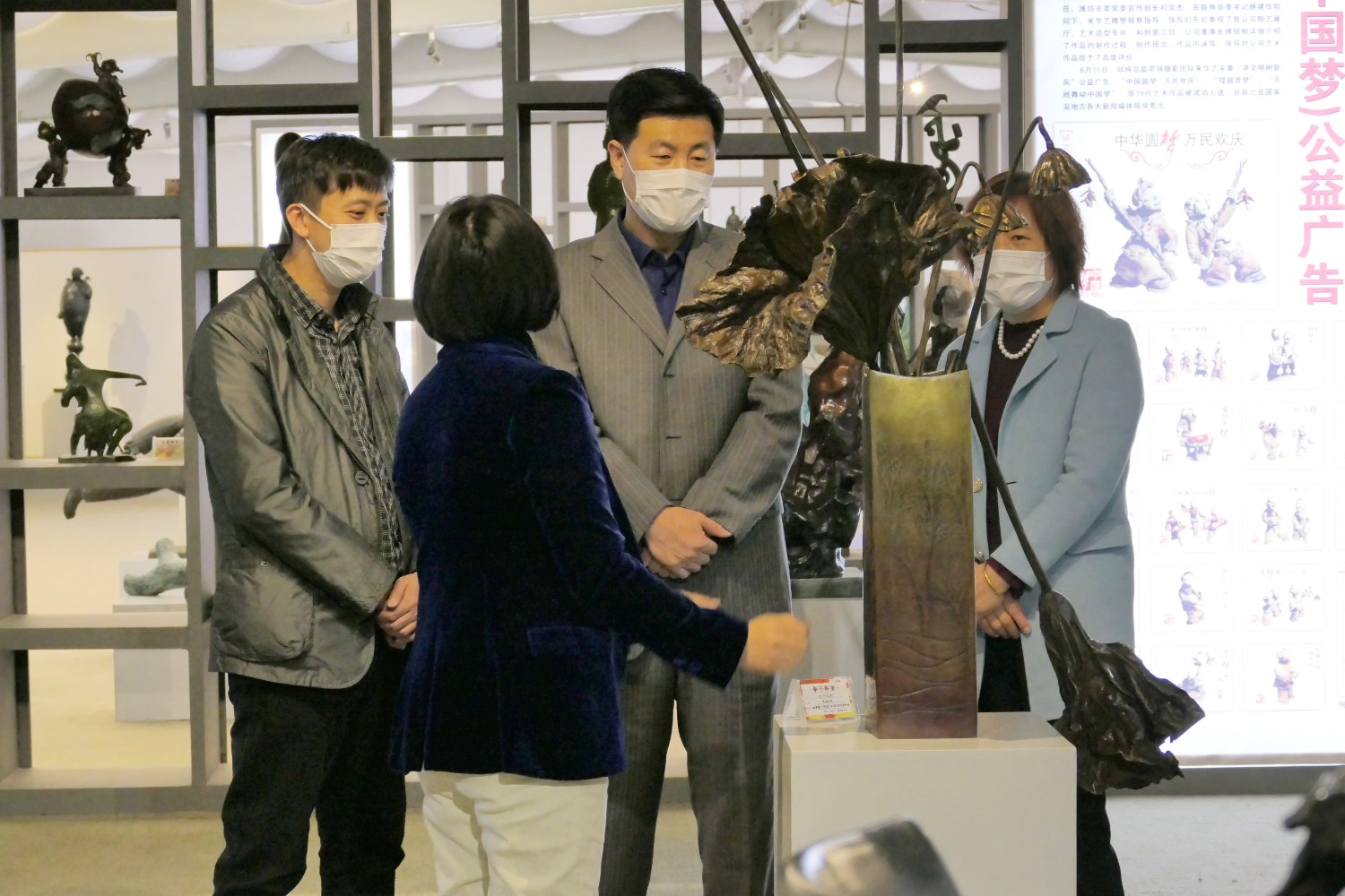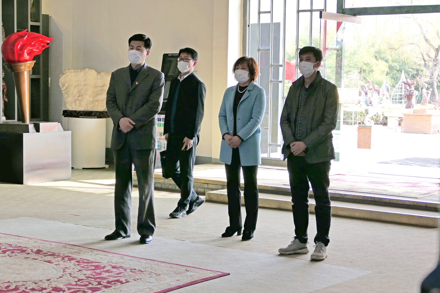 2020年3月17日,潍坊市国资委领导来华艺雕塑参观指导,城关街办郭建玲副主任及华艺雕塑总经理傅东陪同。
