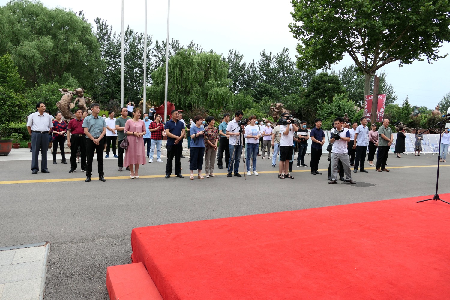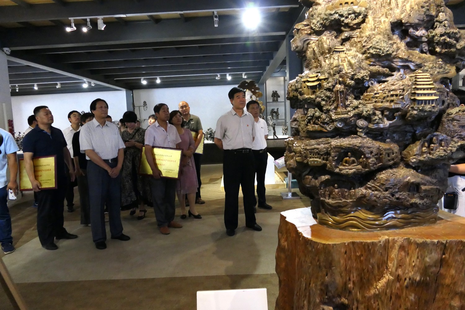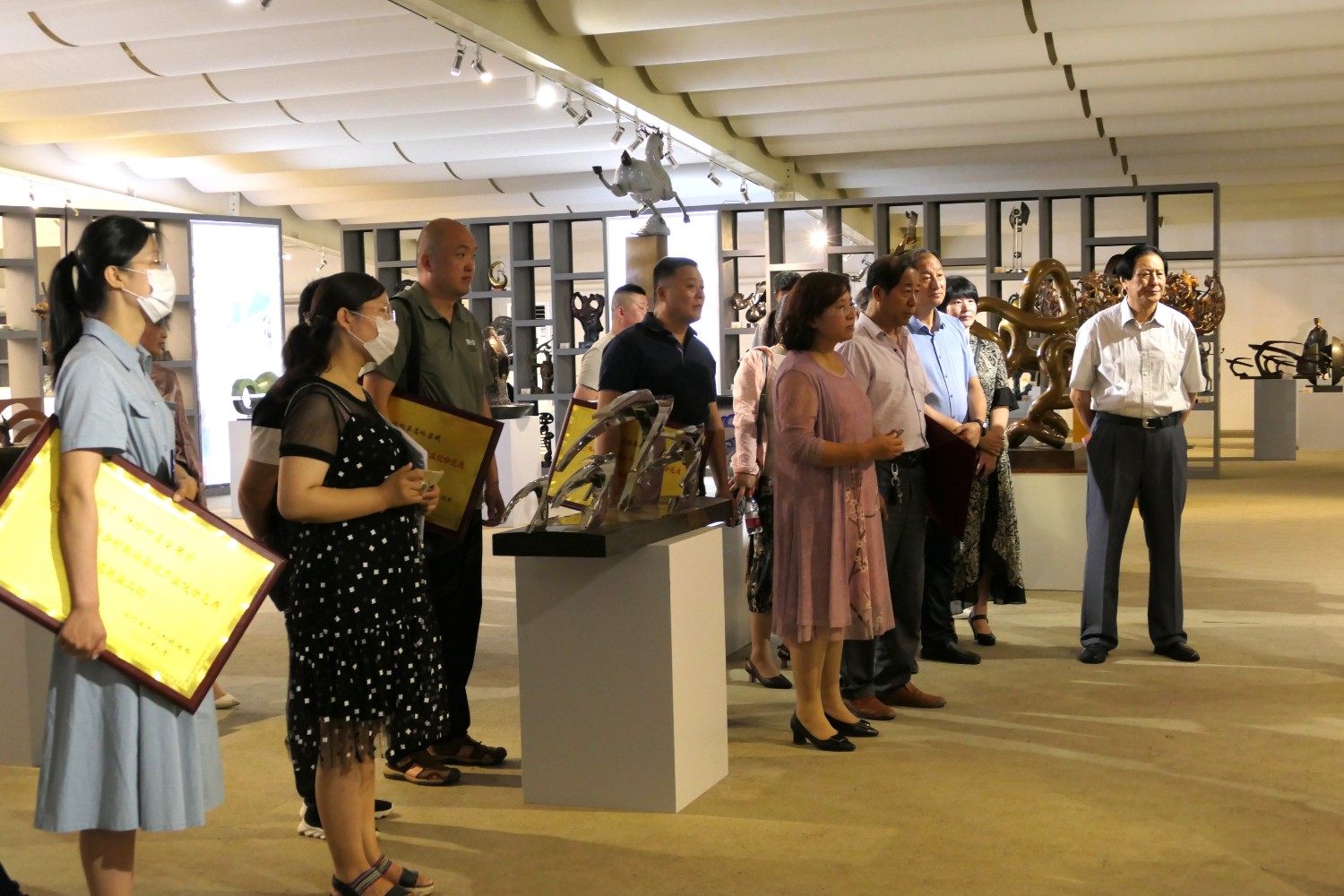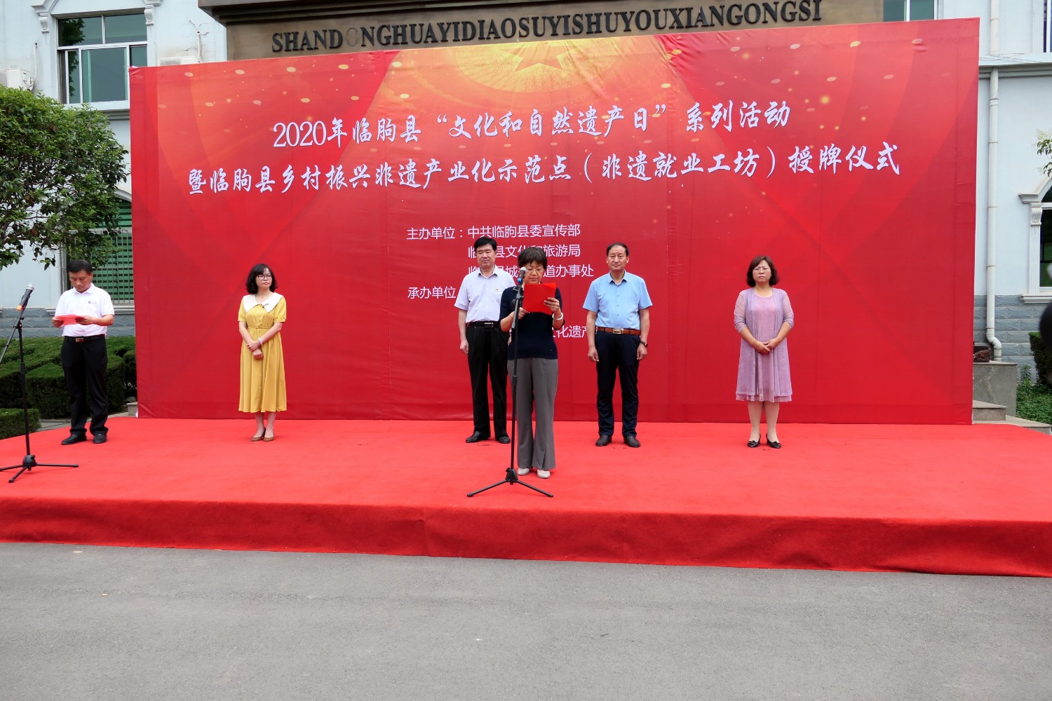 2021-2-22020年6月12日,2020年临朐县“文化和自然遗产日”系列活动暨临朐县乡村振兴非遗产业化示范点(非遗就业工坊)授牌仪式,在华艺雕塑办公楼前隆重举行。临朐县文化和旅游局杨维政局长主持,临朐县政府党组成员分管文化和旅游的副县长沈明新、城关街办尹德忠副主任等领导出席活动仪式,华艺雕塑傅绍相致辞,主席台领导分别向华艺雕塑及其他单位和个人非遗示范点授牌。尔后,与会人员参观华艺雕塑馆及3D体验中心等。华艺雕塑的精湛技艺、精美的雕塑作品,赢得了各位嘉宾的高度赞誉。